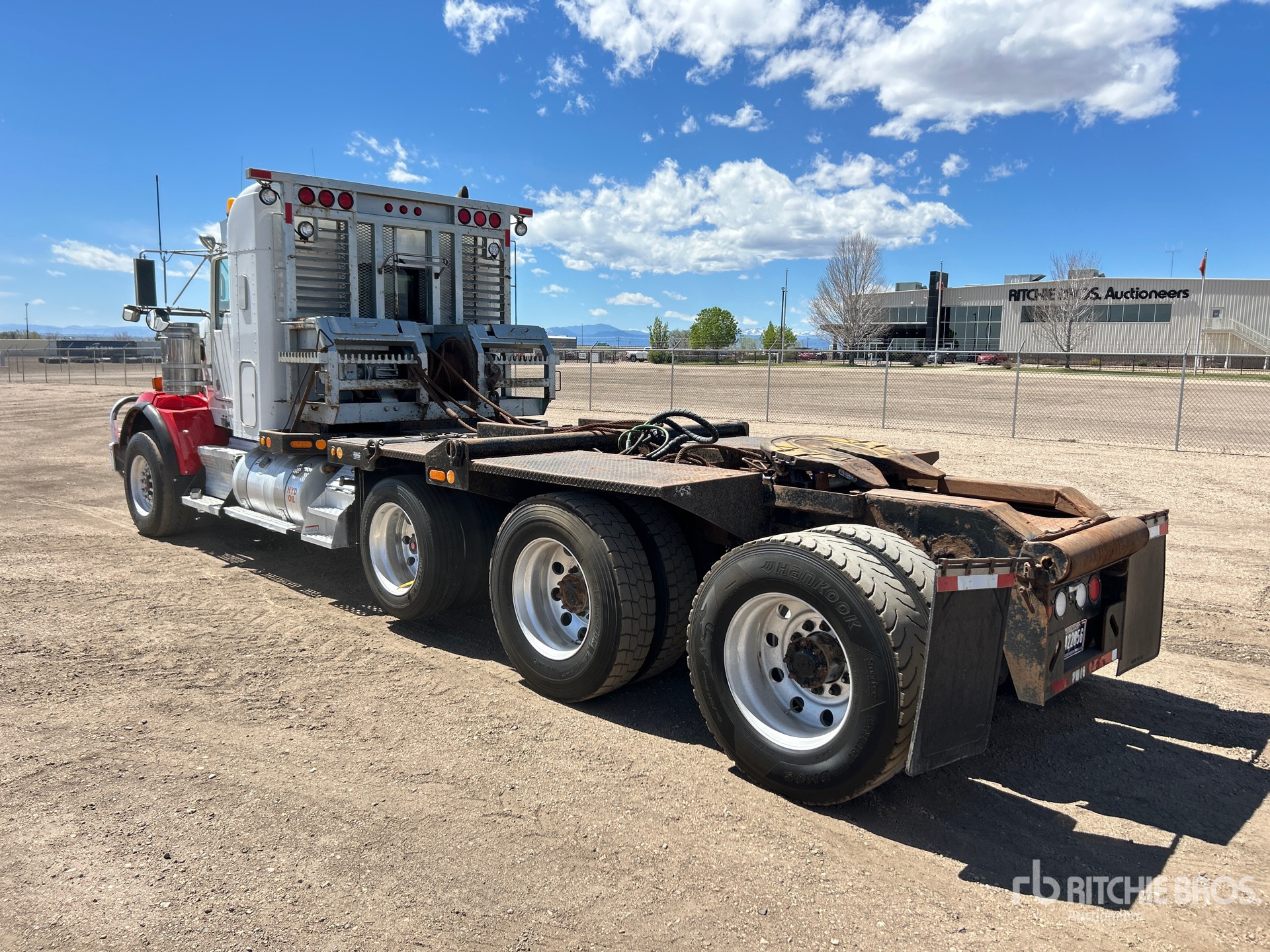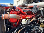 Moteur diesel Cummins ISX15 6 cylindres 15 L 550 ch, homologué EPA 2013, nécessite un additif pour réservoirs de diesel, 17 740 heures de fonctionnement, frein moteur, boîte de vitesses manuelle Eaton Fuller RTLO-18918B à 18 rapports, différentiel autobloquant, essieu avant de 7 257 kg, essieux arrière de 20 867 kg, essieux moteurs Meritor RT-46-164PEH, rapport de pont de 3,91:1, PTAC de 37 280 kg, cabine couchette à toit plat de 96,5 cm, jantes en aluminium, pneus avant 385/65R22.5, pneus arrière 11R24.5, suspension pneumatique, empattement de 693 cm, prise de force, plateau de 3,66 m x 2,49 m, essieu central, essieu arrière mobile, treuil Tulsa de 36 287 kg