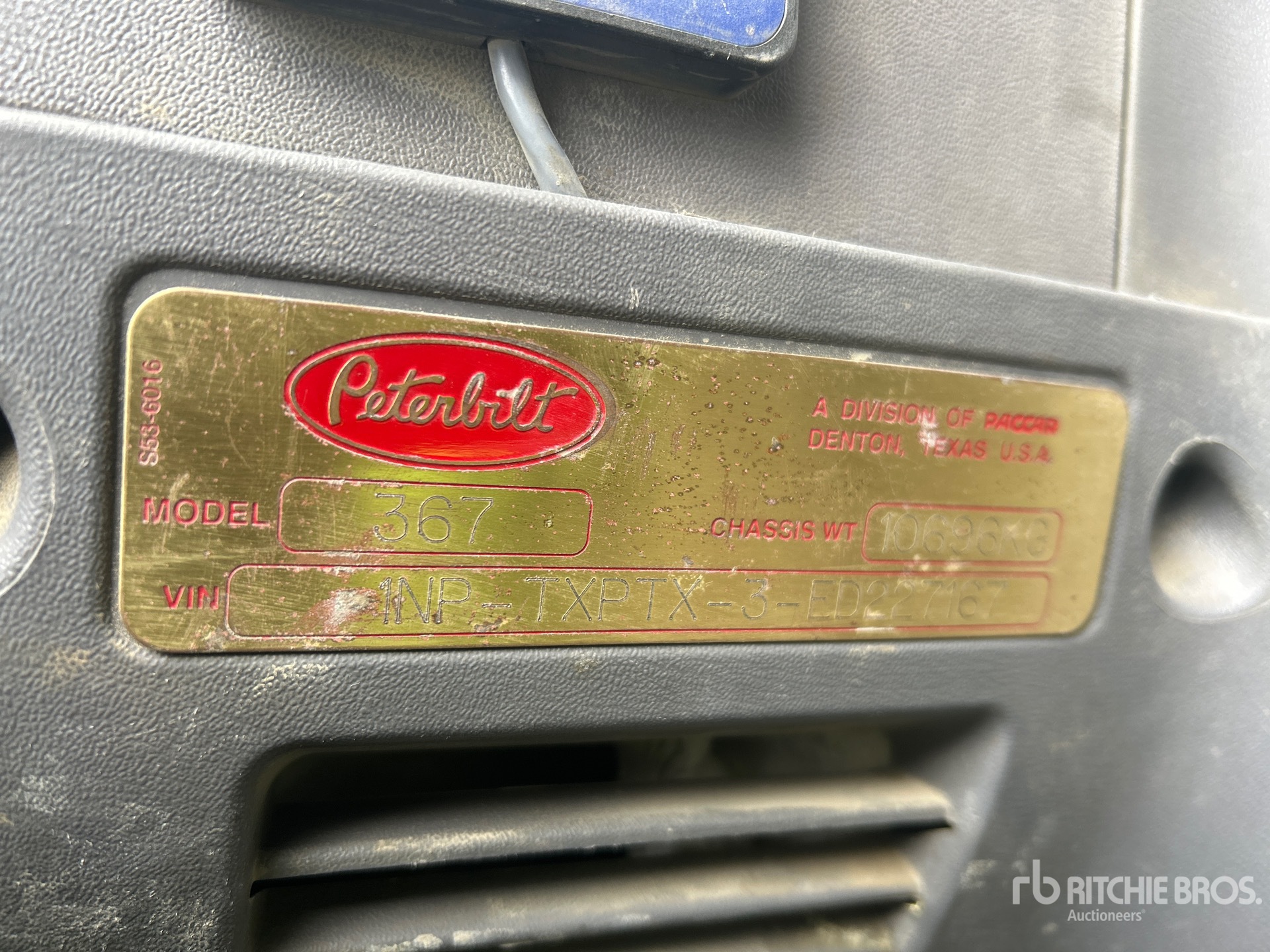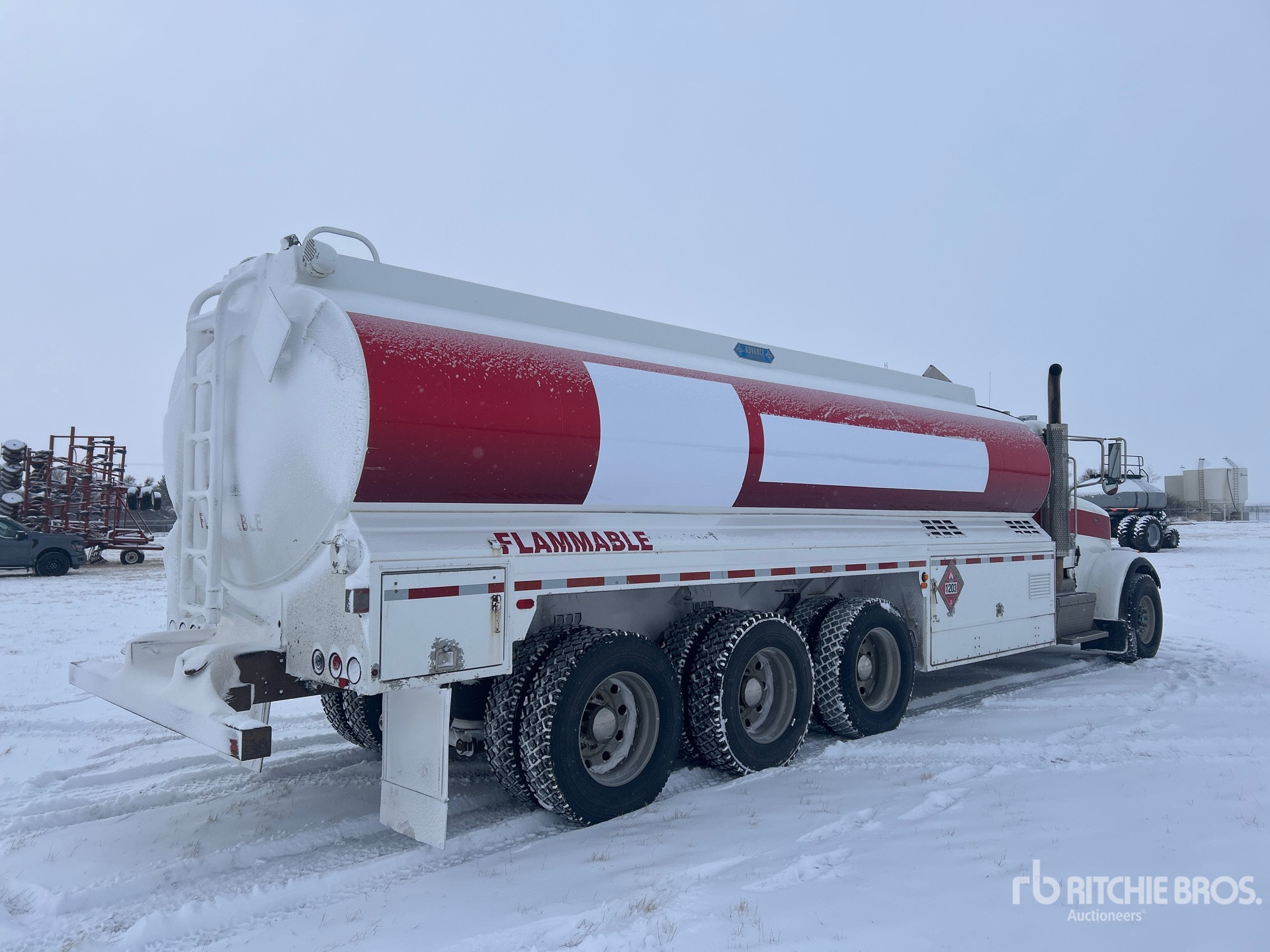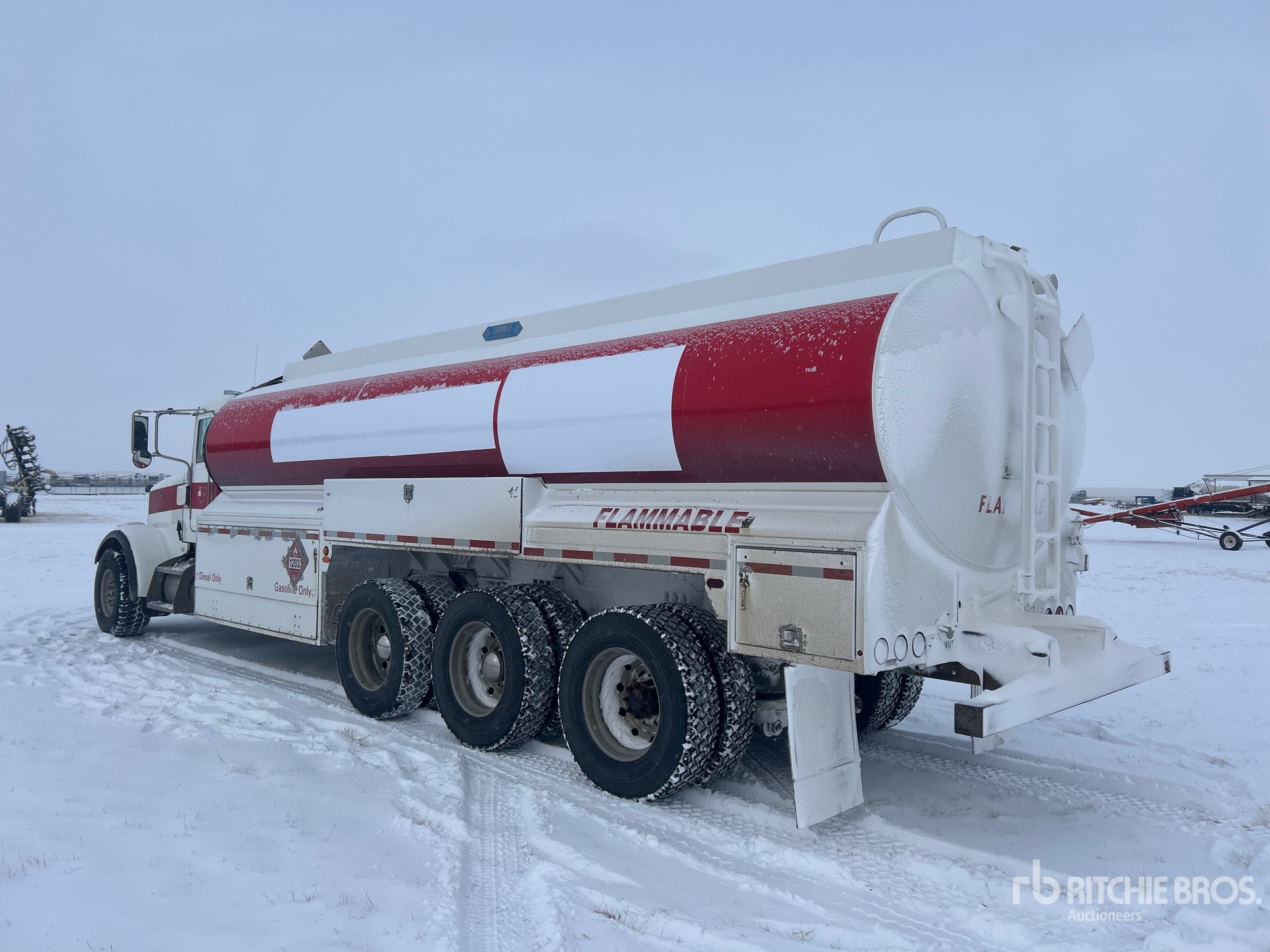 Moteur Paccar, 15 195 heures de fonctionnement, frein moteur, transmission automatique Allison, double blocage de différentiel, essieu avant de 9 072 kg (20 000 lb), essieux arrière de 30 874 kg (68 000 lb), jantes en aluminium, pneus avant 425/65R22.5, pneus arrière 11R24.5, double direction, suspension pneumatique, empattement de 765 mm (301 po), réservoir Advance, 5 compartiments, 2 bobines avec registre électronique