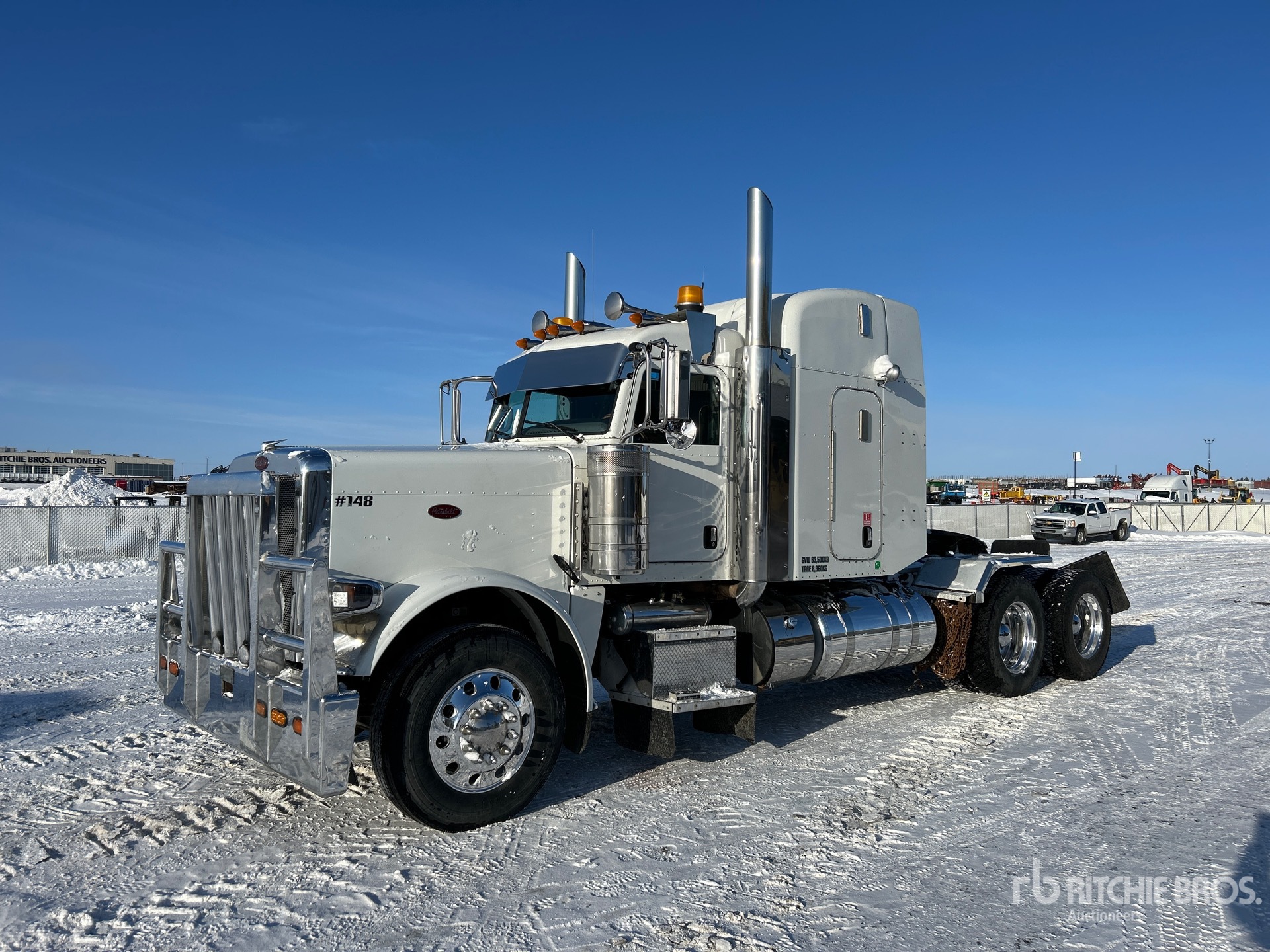 Situé sur la voie 2, emplacement 24, ce camion est équipé d'un moteur Cummins ISX15 de 550 ch, d'un réchauffeur de liquide de refroidissement, d'un système d'arrêt d'air positif, de 28 259 heures de fonctionnement, d'une transmission manuelle Eaton Fuller à 18 vitesses, d'un essieu avant de 13 200 lb, d'essieux arrière de 44 000 lb, d'un PTAC de 57 200 lb, d'un frein moteur, de doubles différentiels autobloquants, d'une cabine couchette à toit surélevé de 48 pouces, d'un empattement de 244 pouces, d'une suspension pneumatique, de jantes en aluminium, de pneus avant et arrière 11R24.5, d'un système hydraulique, d'une sellette d'attelage coulissante pneumatique et de deux réservoirs de carburant.