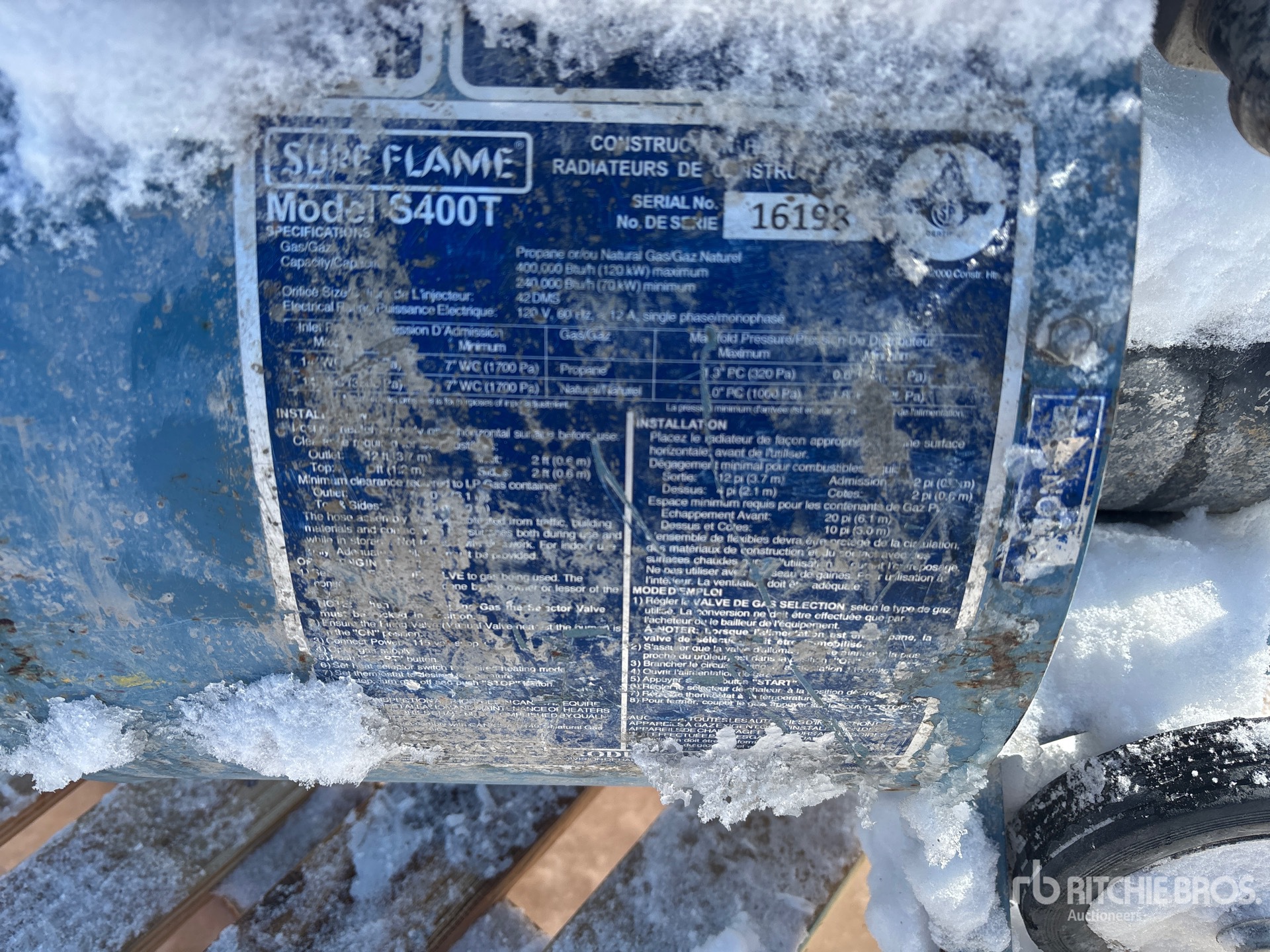 Les Informations détaillées de l’équipement sont d’une portée limitée, et les Encans Ritchie Bros. n’ont inspecté aucun autre aspect ou composant de l’équipement que ceux présentés expressément. Sauf indication précise, nous n’offrons aucune représentation ou garantie, officielle ou implicite, sur l’équipement ou ses composants, sans aucune limite de représentation ou de garantie en ce qui concerne la fonctionnalité, la conformité à toute norme de sécurité ou l’exigence de toute autorité ou agence de régulation en vigueur, l’adaptation à un quelconque usage, ou la valeur commerciale. Il vous est fortement conseillé d’effectuer votre propre inspection détaillée de l’équipement avant d’enchérir.