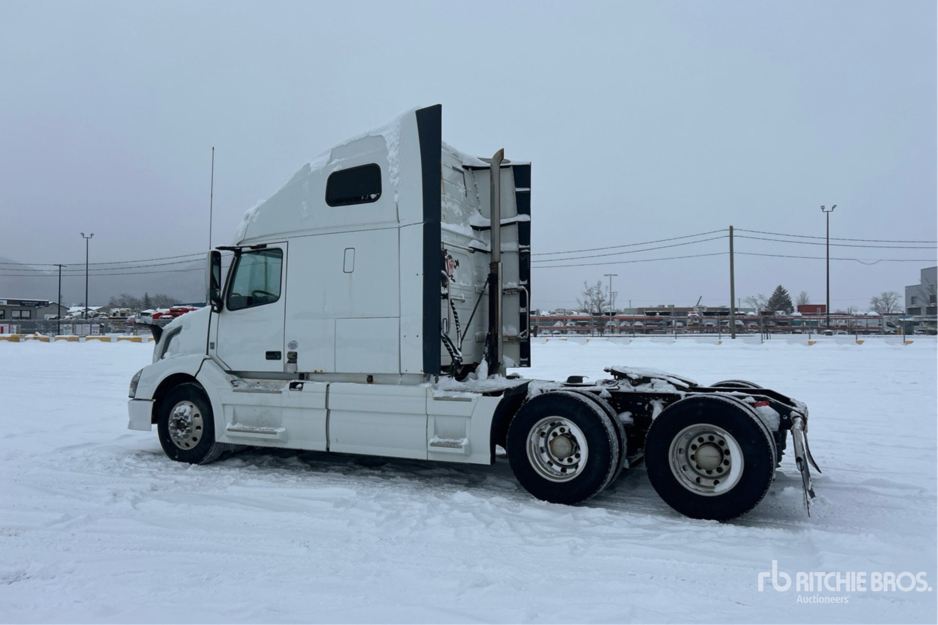 Moteur Volvo D13J 500 ch, homologué EPA US 2014, moteur de 22 706 heures, transmission automatisée Volvo ATO2612D à 12 rapports, essieu avant de 5 987 kg, essieu arrière de 18 144 kg, PTAC de 24 131 kg, frein moteur, blocage de différentiel, cabine couchette surélevée de 155 cm, lits superposés, empattement de 549 cm, suspension pneumatique, jantes en aluminium, pneus 11R22.5, sellette d'attelage coulissante pneumatique, double réservoir de carburant
