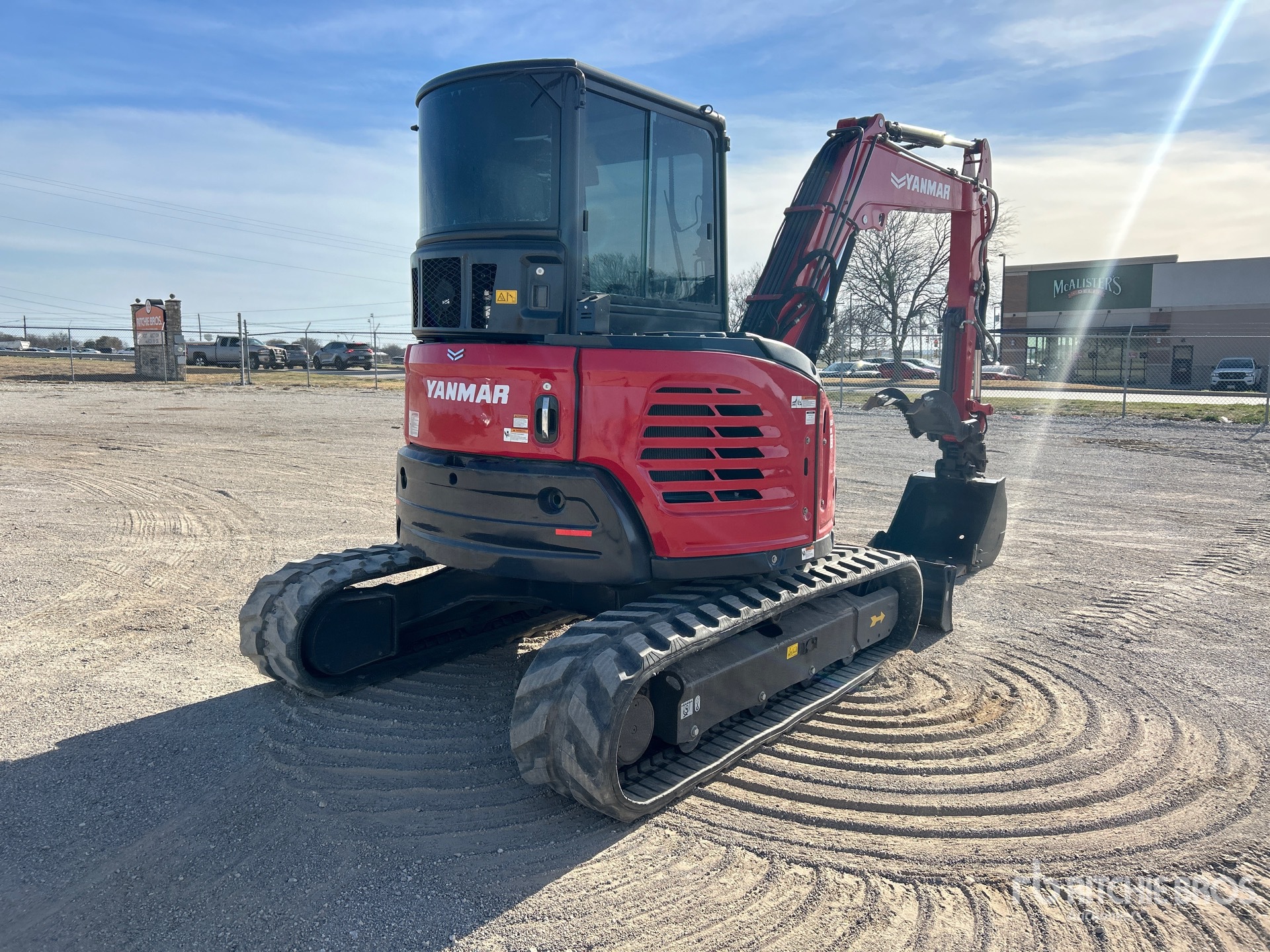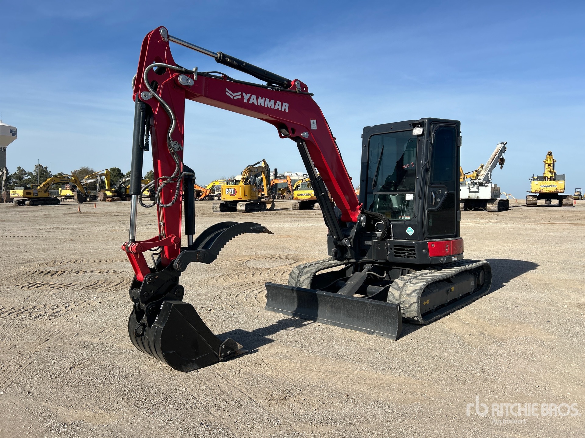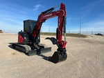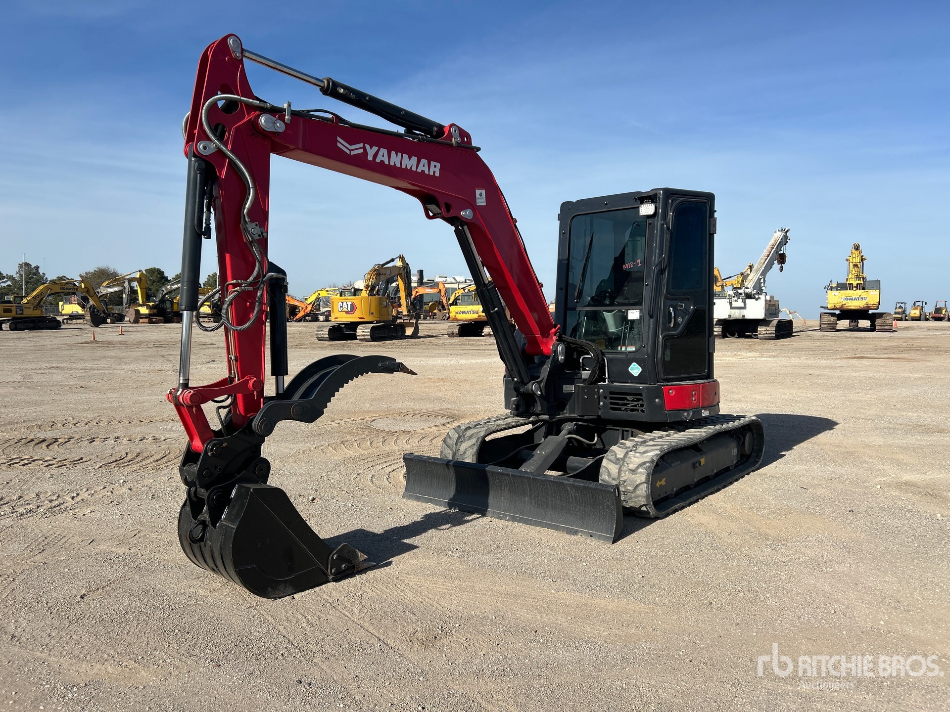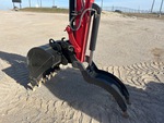 Cabine fermée, climatisation, homologation EPA américaine 2021, flèche pivotante, bras de 1,65 m, circuit hydraulique auxiliaire, clapet antiretour sur le bras, lame de remblayage, chenilles en caoutchouc de 38 cm, attache rapide hydraulique, godet de terrassement de 79 cm, pince hydraulique