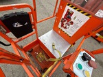 Hauteur maximale de la plateforme : 12 pi 2 po, capacité de charge maximale : 650 lb, pneus pleins non marquants, boîtier de commande supérieur