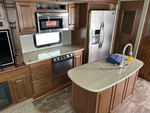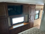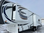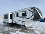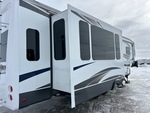 4 couchages, PTAC de 7 032 kg, 3 rallonges, système de divertissement extérieur, vérins de nivellement électriques, auvent électrique, sellette d'attelage, suspension à ressorts, freins électriques, pneus 235/85R16