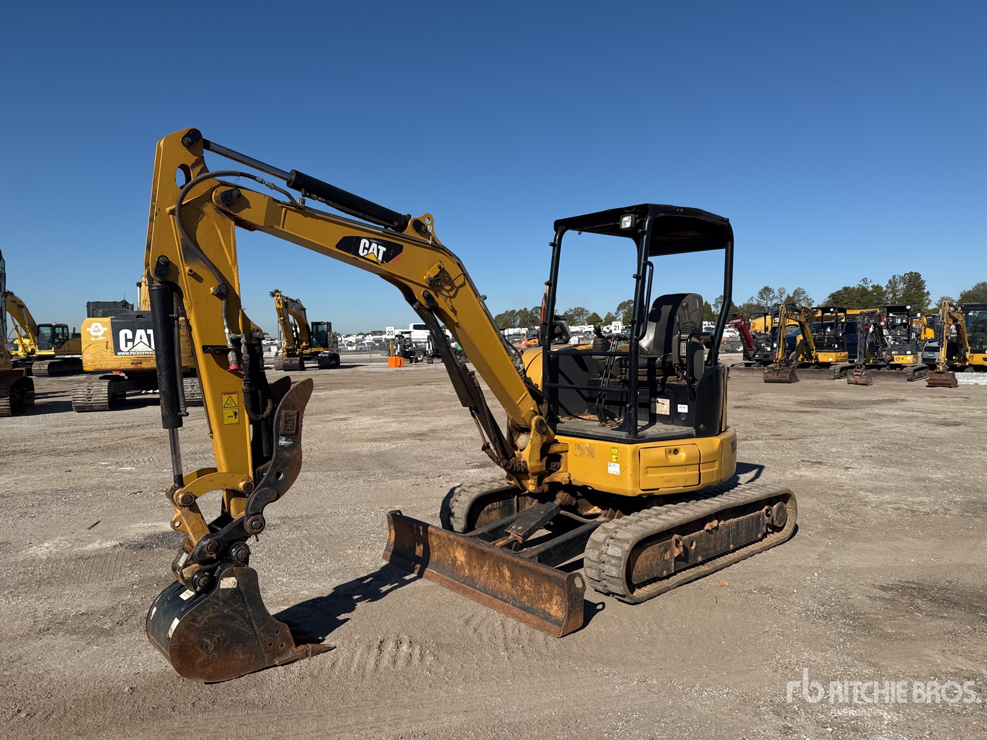 Conforme à la norme Tier 4, étiquette EPA américaine 2014, flèche pivotante, bras de 1,83 m, circuit hydraulique auxiliaire, lame de remblayage, chenilles en caoutchouc de 29,8 cm, attache rapide manuelle, godet de terrassement de 40,6 cm, pince hydraulique