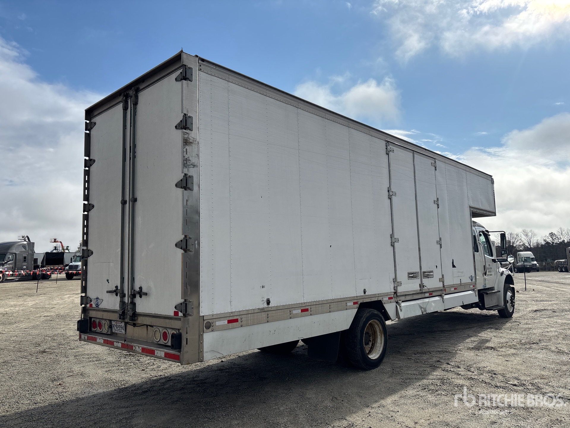 Moteur diesel Cummins ISB6.7 240, 6 cylindres, 6,7 L, 240 ch, homologué EPA (États-Unis) 2014, nécessite un additif pour réservoirs de diesel (DES), 9 452 heures de fonctionnement, transmission automatique Allison 2500, essieu avant de 4 536 kg (10 000 lb), essieux arrière de 8 618 kg (19 000 lb), essieux moteurs Meritor MS-19-14X, rapport de pont de 5,29:1, PTAC de 11 793 kg (26 000 lb), pneus 255/70R22.5, suspension à ressorts, empattement de 7 112 mm (280 po), dimensions de la carrosserie : 7,92 m (26 pi) x 2,44 m (96 po) de large x 2,77 m (109 po) de hauteur, porte latérale