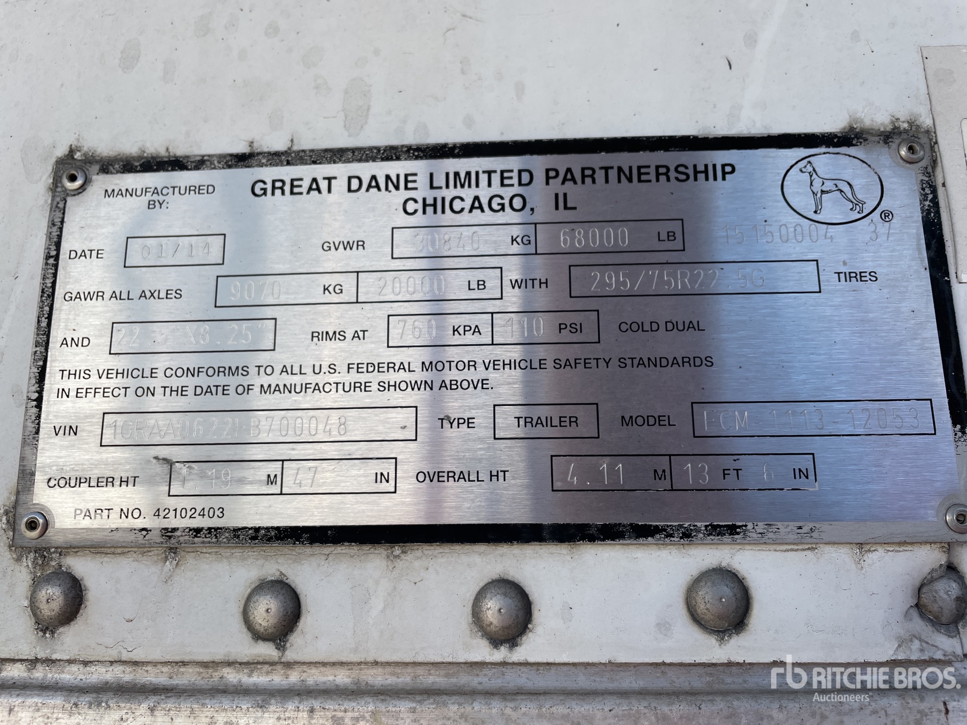 Les Informations détaillées de l’équipement sont d’une portée limitée, et les Encans Ritchie Bros. n’ont inspecté aucun autre aspect ou composant de l’équipement que ceux présentés expressément. Sauf indication précise, nous n’offrons aucune représentation ou garantie, officielle ou implicite, sur l’équipement ou ses composants, sans aucune limite de représentation ou de garantie en ce qui concerne la fonctionnalité, la conformité à toute norme de sécurité ou l’exigence de toute autorité ou agence de régulation en vigueur, l’adaptation à un quelconque usage, ou la valeur commerciale. Il vous est fortement conseillé d’effectuer votre propre inspection détaillée de l’équipement avant d’enchérir.