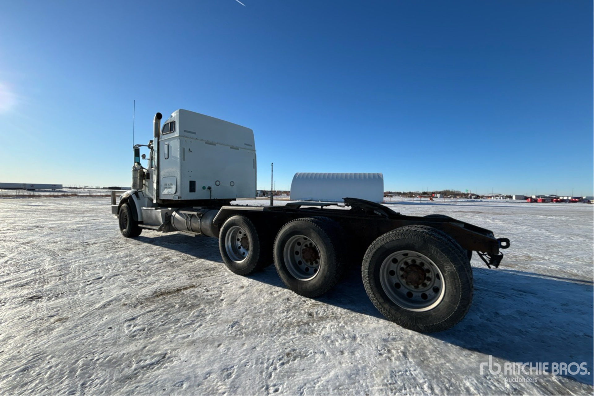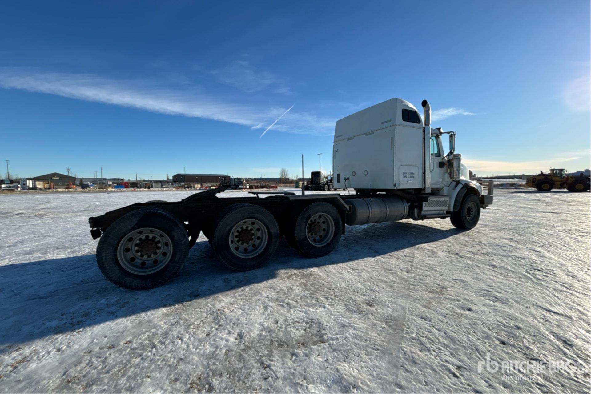 Moteur Cummins ISX15 de 550 ch, réchauffeur de liquide de refroidissement, vanne d'arrêt d'air positive, homologation EPA américaine 2014, transmission manuelle Eaton Fuller à 18 vitesses, essieu avant de 7 257 kg, essieu arrière de 24 000 kg, PTAC de 31 300 kg, frein moteur, cabine couchette à toit surélevé de 130 cm, empattement de 660 cm, suspension pneumatique, jantes en aluminium, pneus avant 385/65R22.5, pneus arrière 11R24.5, double direction, sellette d'attelage coulissante pneumatique, double réservoir de carburant