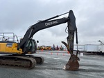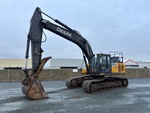 Écrans de cabine, bras de 3,81 m, chenilles à triple crampon de 80 cm, attache rapide manuelle, godet de nettoyage de 156 cm, pince hydraulique