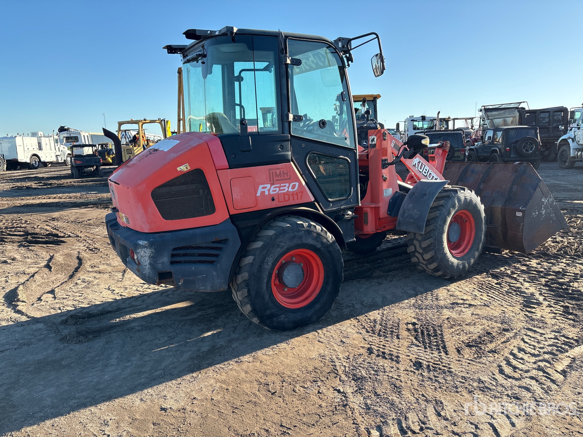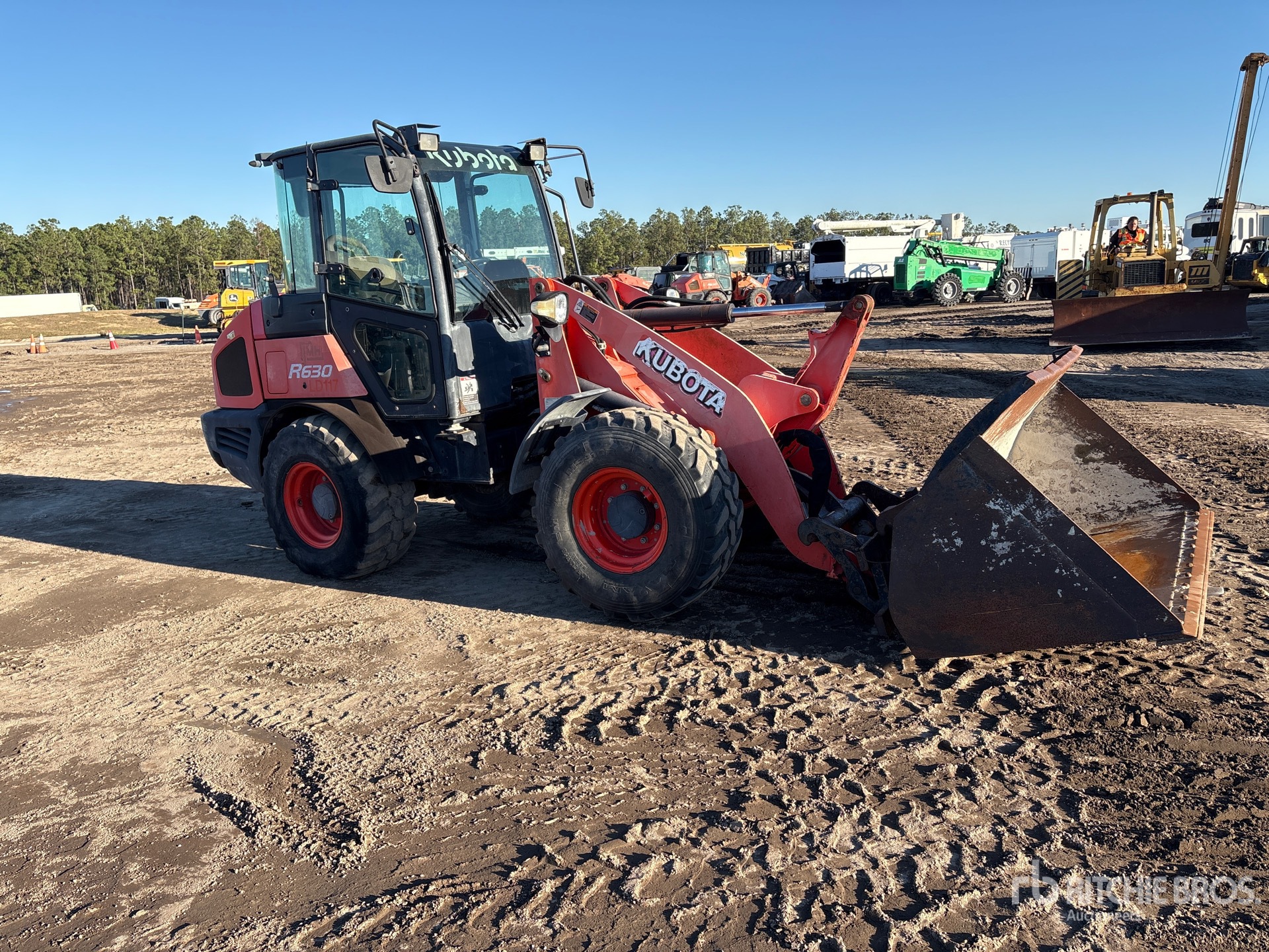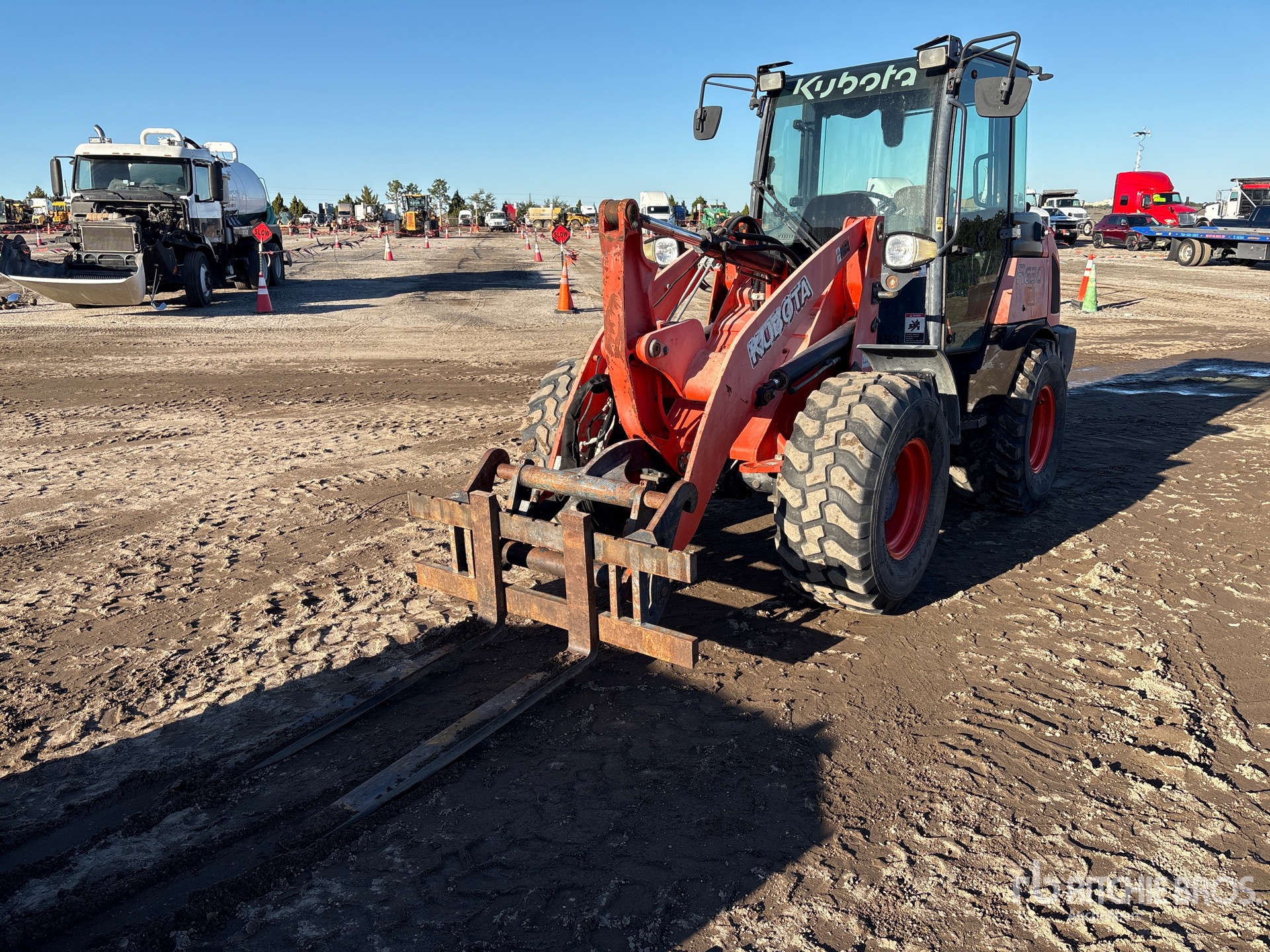 Cabine fermée, climatisation, norme Tier 4, étiquette EPA américaine 2014, godet de 74 pouces, fourches, pneus 405/70R18