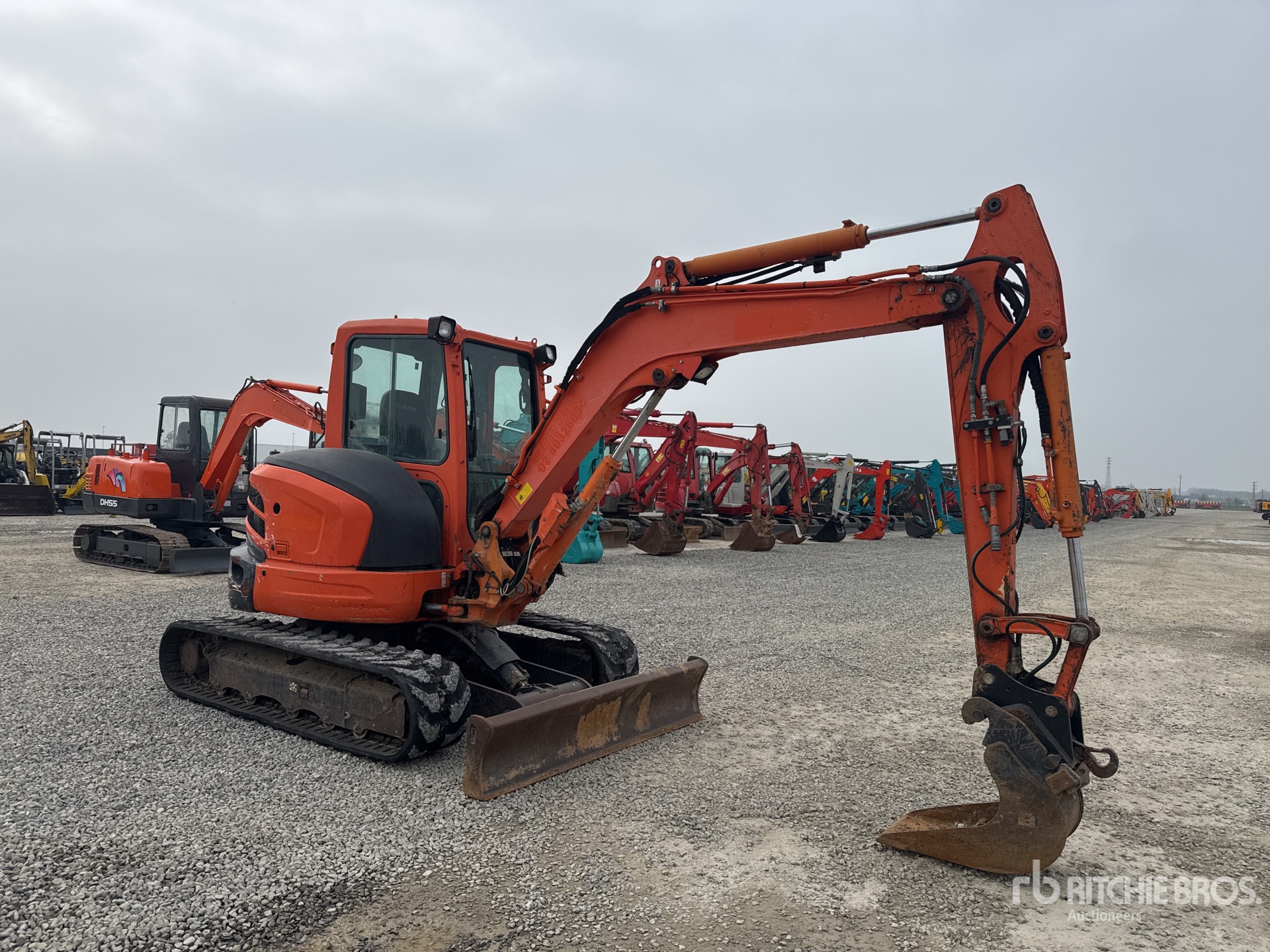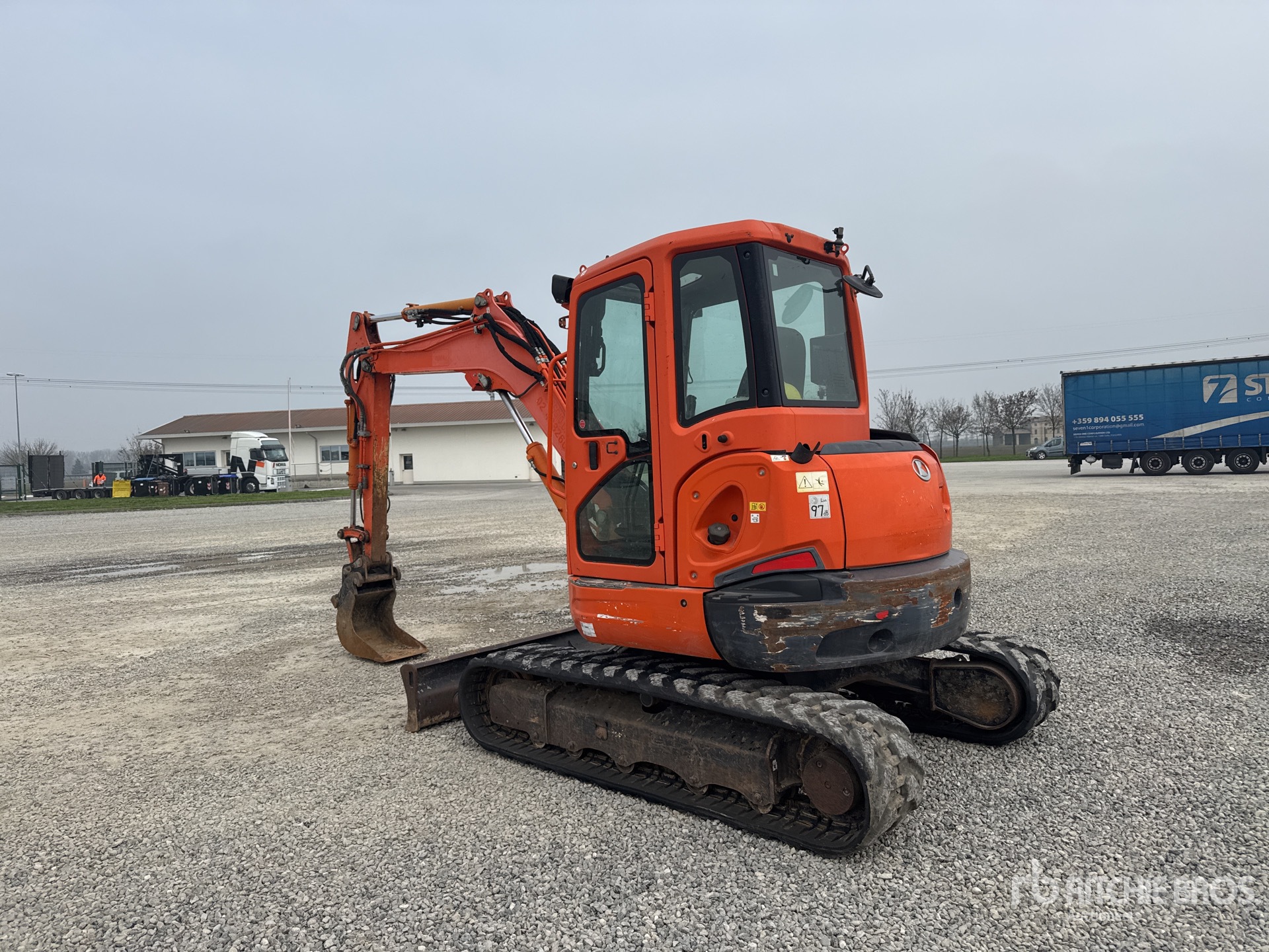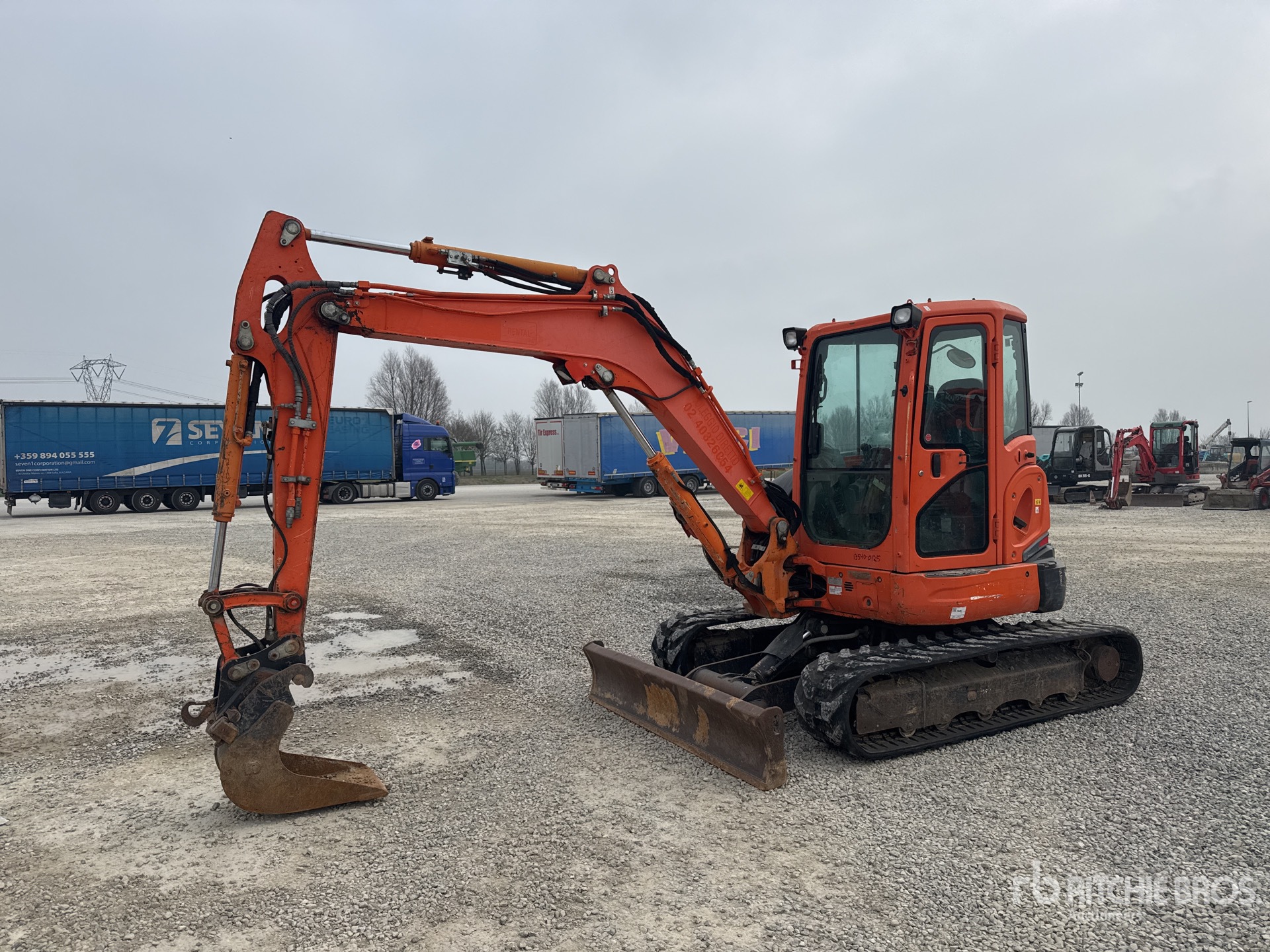 Flèche pivotante, tuyauterie hydraulique auxiliaire, clapet anti-retour de balancier, clapets anti-retour de flèche, lame de remblayage, chenilles en caoutchouc, attache rapide hydraulique, godet d'excavation
