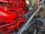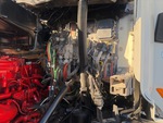 Moteur diesel Cummins 6 cylindres, 20 379 heures moteur, transmission automatique Allison, double blocage de différentiel, essieu avant de 22 000 lb, essieux arrière de 46 000 lb, PTAC de 68 000 lb, cabine à suspension pneumatique, roues avant en aluminium, pneus avant 425/65R22.5, pneus arrière 11R22.5, double direction, suspension à balancier sur silentblocs en caoutchouc, empattement de 231 pouces, prise de force, 1 goulotte amovible, télécommande filaire