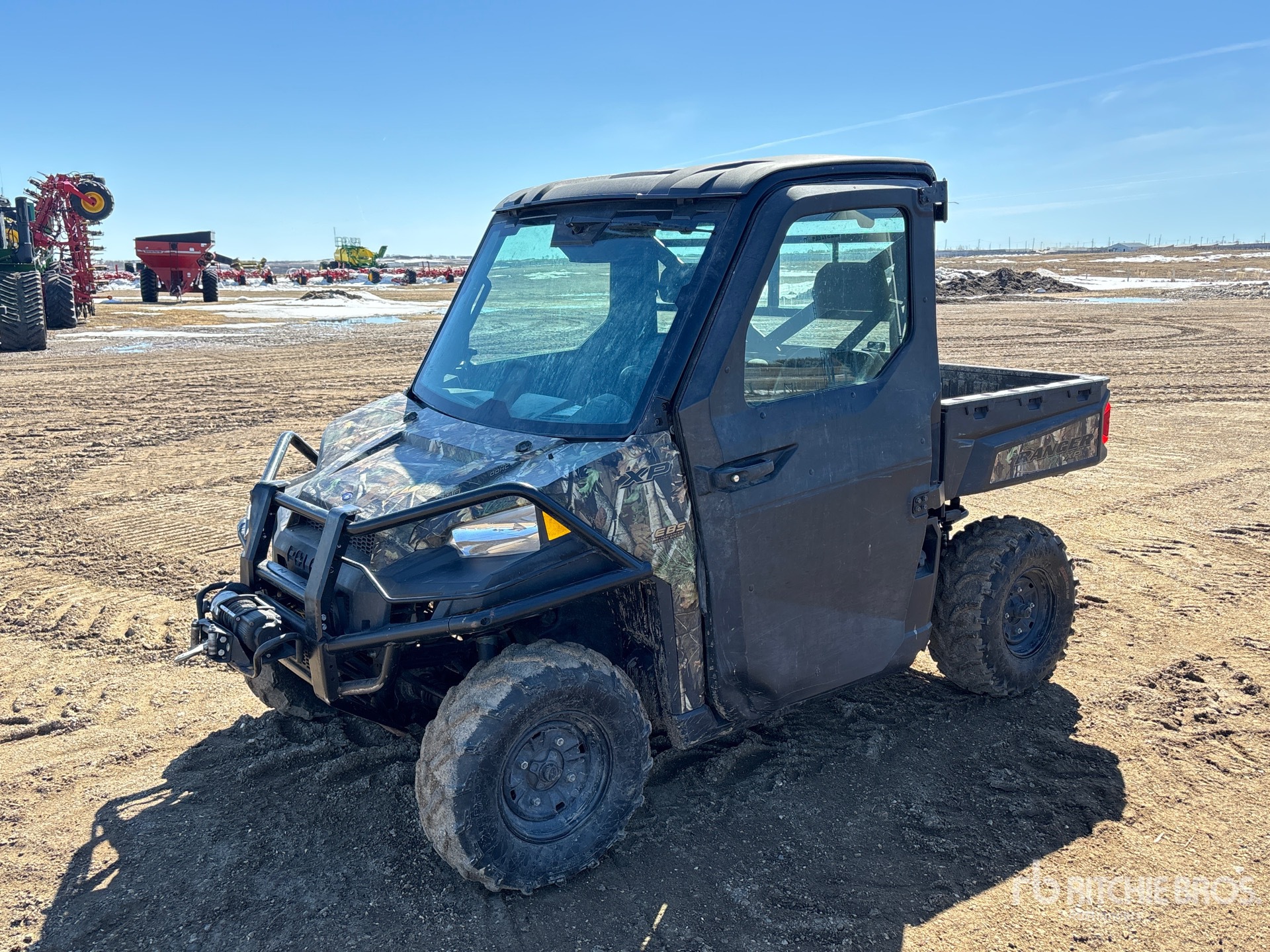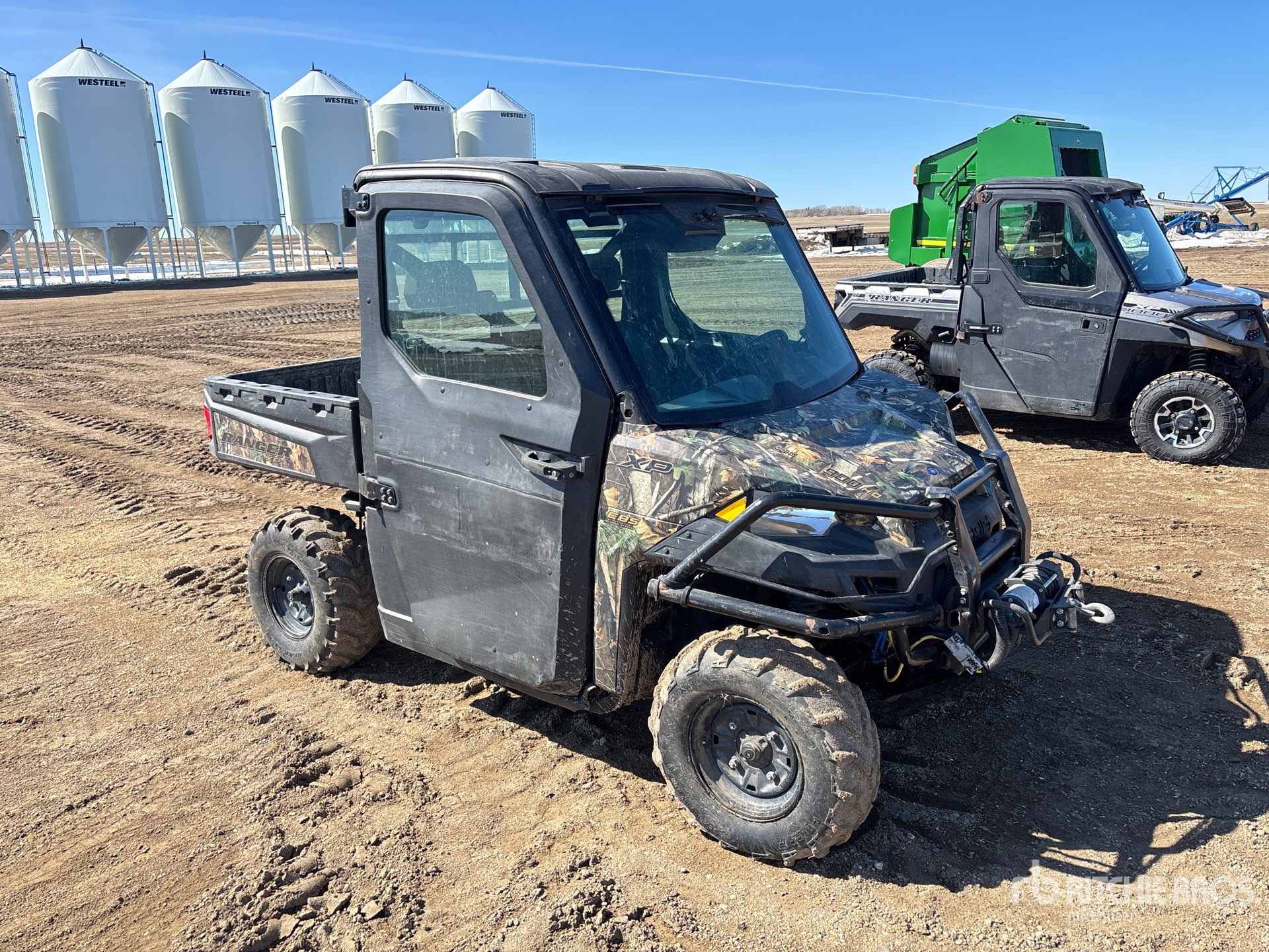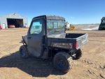 Cabine fermée, 2 places, pare-brise, treuil, benne basculante manuelle, moteur à essence Polaris 2 cylindres