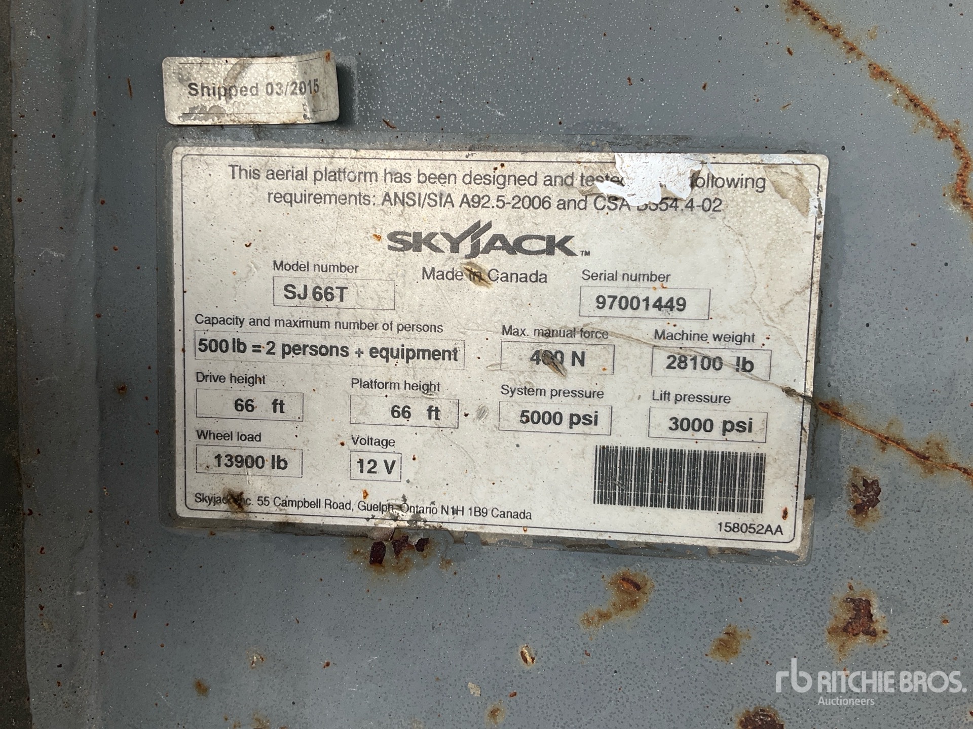 Hauteur de plateforme maximale de 20 m (66 pi), capacité de charge maximale de 227 kg (500 lb), flèche, alimentation électrique de la plateforme, homologation EPA américaine 2014, conforme aux normes CARB, moteur diesel Deutz 4 cylindres 64 ch 2,925 L, pneus IN385/65D19.5