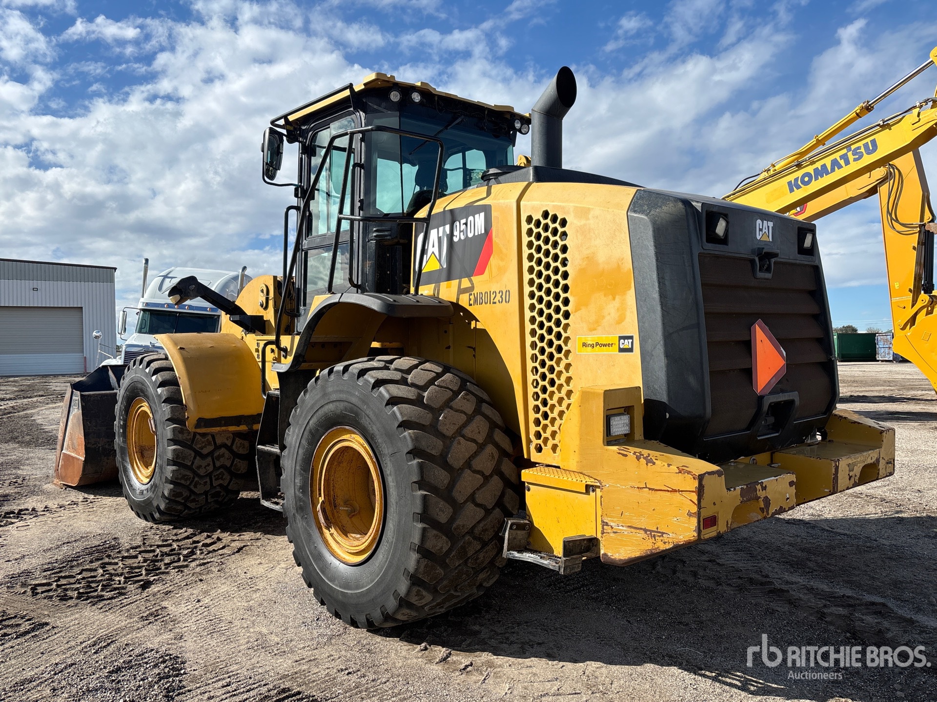 Cabine fermée, climatisation, caméra de recul, siège à suspension pneumatique, contrôle de la suspension, boîte de vitesses automatique, conforme à la norme Tier 4, étiquette EPA américaine 2015, conforme aux normes CARB, nécessite un fluide d'échappement diesel, circuit hydraulique auxiliaire, coupleur Fusion, godet de 115 pouces, pneus 750/65R25
