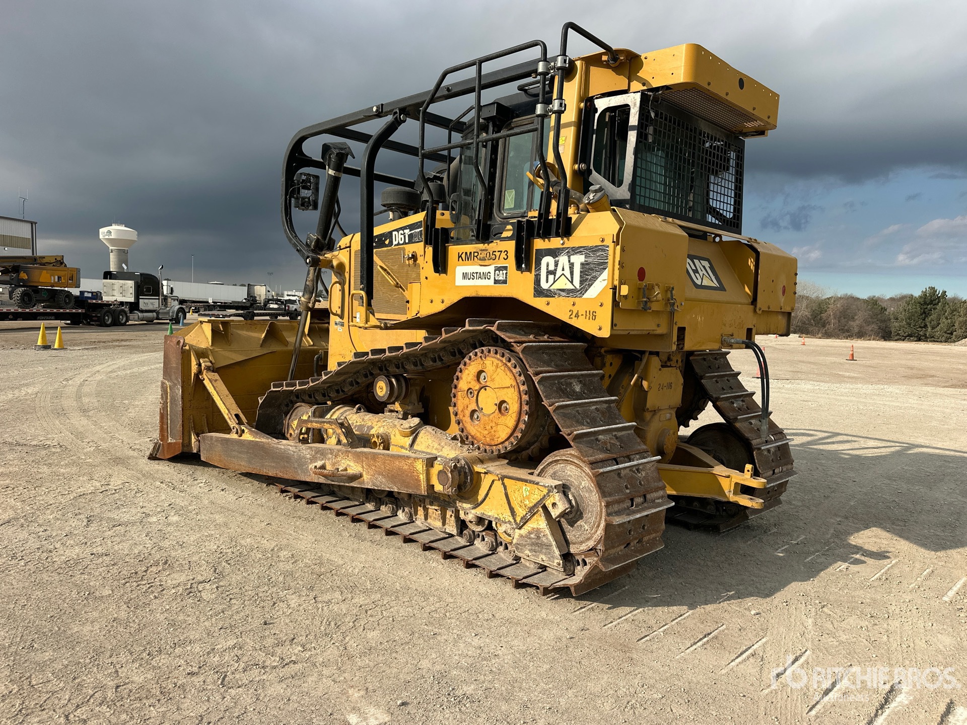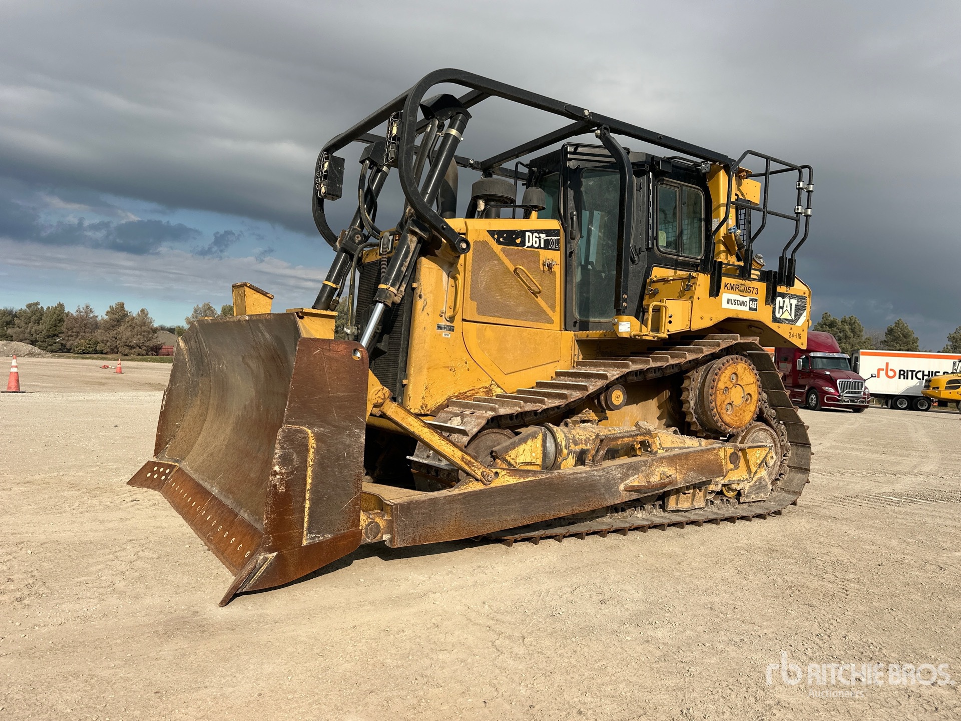 Cabine fermée, climatisation, homologation EPA américaine 2016, nécessite un fluide d'échappement diesel, balais, lame semi-U de 128 pouces de large avec inclinaison simple, chenilles à crampons simples de 24 pouces, barre d'attelage, circuit hydraulique auxiliaire arrière
