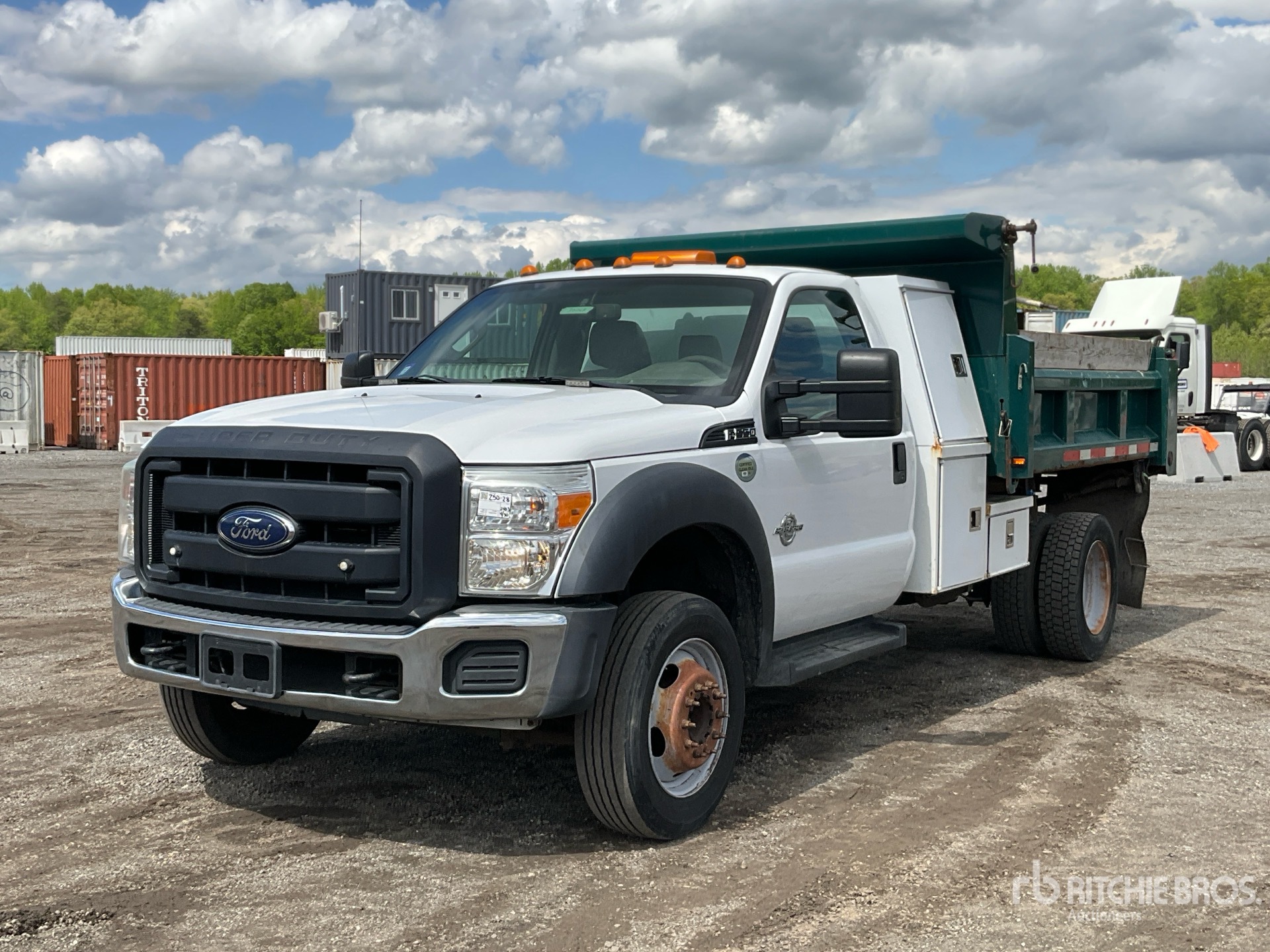 Situé sur la voie 44, emplacement 41, moteur diesel Ford V8 6,7 L, homologué EPA 2016, nécessite un additif pour réservoirs de diesel, 5 340 heures moteur, transmission automatique, essieu avant de 2 948 kg, essieux arrière de 6 670 kg, PTAC de 8 845 kg, pneus 225/70R19.5, suspension à ressorts, empattement de 4 199 cm, prise de force, carrosserie en acier de 2,90 m de long x 0,69 m de hauteur, triples goulottes de hayon