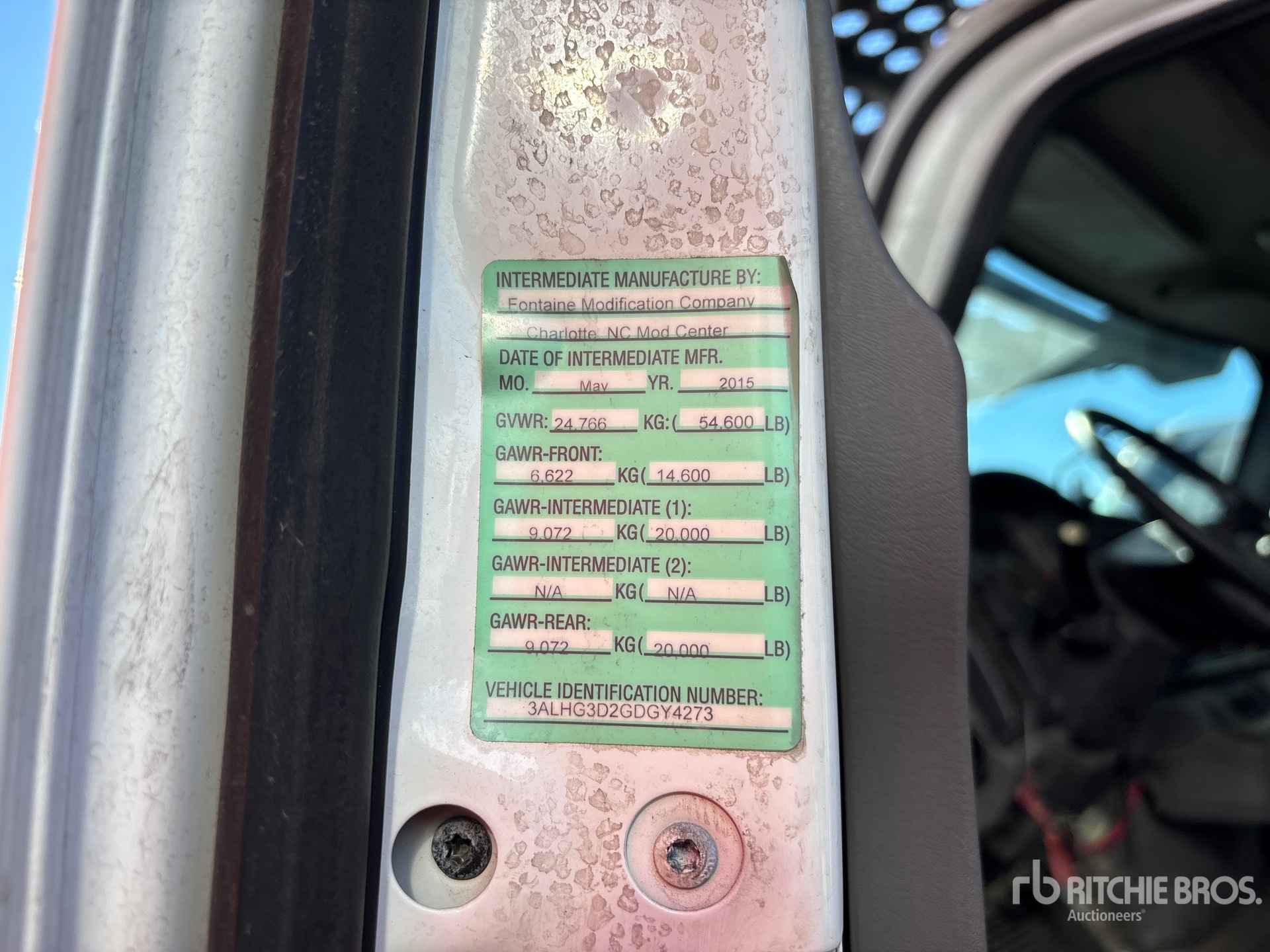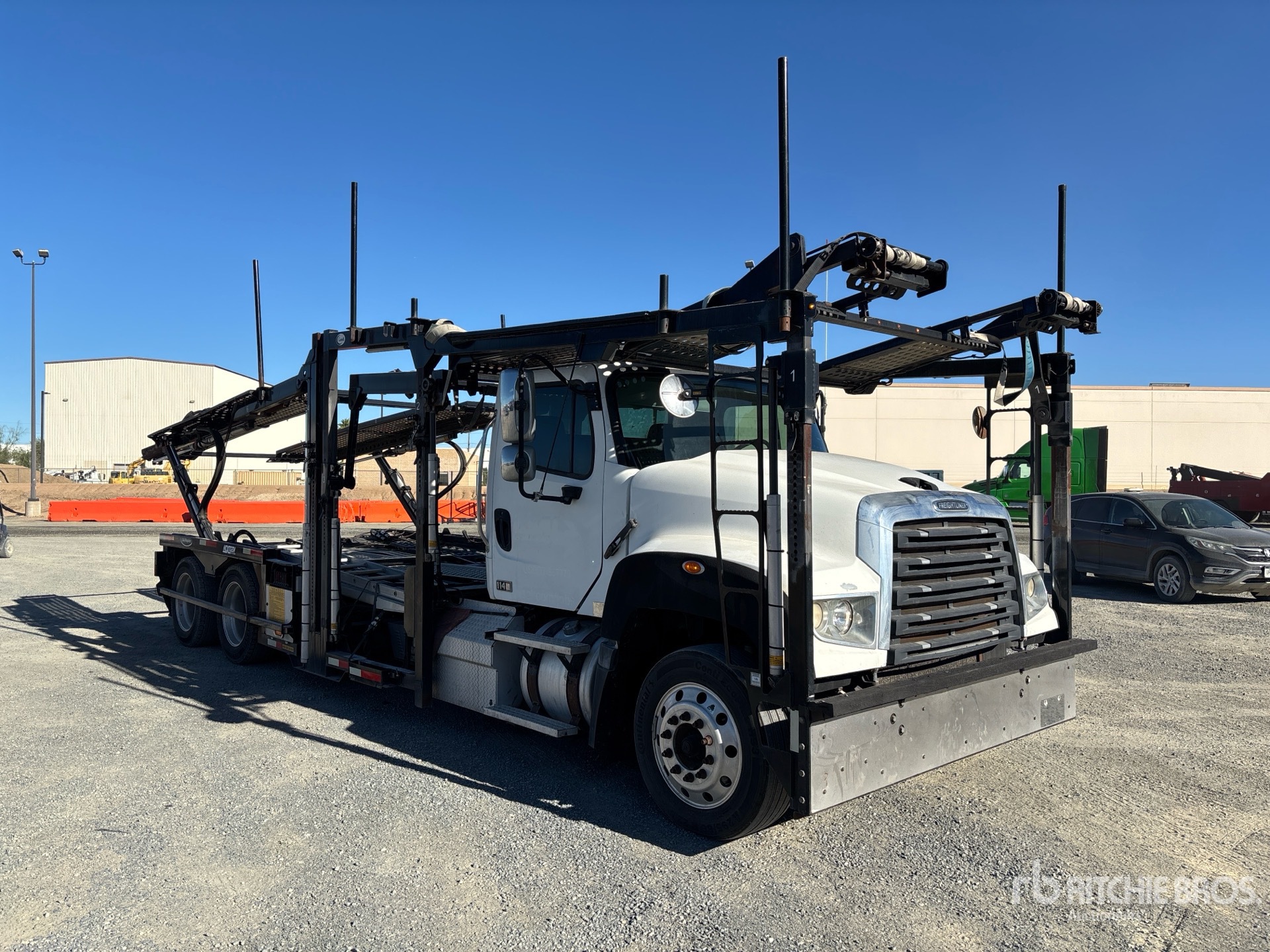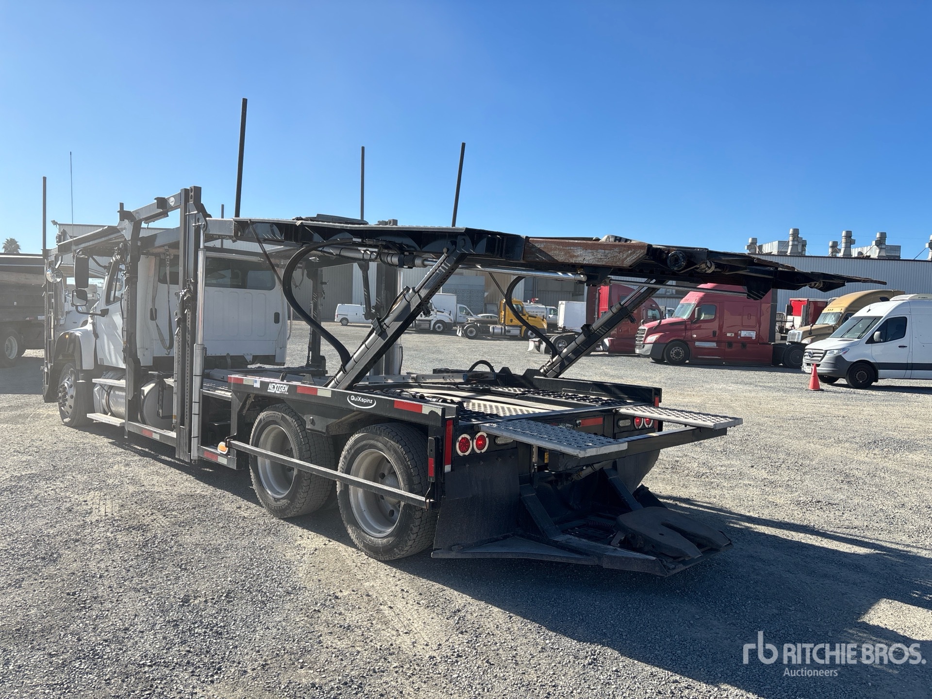 Moteur diesel Detroit DD13 6 cylindres 12,8 L 470 ch, homologué EPA 2016, nécessite un additif pour réservoirs de diesel, 15 042 heures de fonctionnement, frein moteur, boîte de vitesses manuelle Eaton Fuller à 10 rapports, essieu avant de 6 624 kg, essieux arrière de 18 144 kg, essieux moteurs Meritor RT-40-145A, rapport de pont de 2,93:1, jantes en aluminium, pneus 295/60R22.5, suspension pneumatique Airliner, empattement de 643 cm, prise de force, capacité de 3 véhicules, hayon élévateur hydraulique, sangles d'arrimage souples.