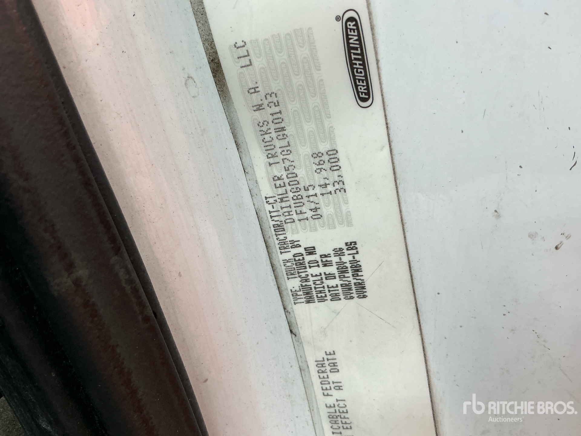 Moteur Detroit DD15 de 455 ch, homologué EPA (États-Unis) 2015, boîte de vitesses manuelle Eaton Fuller FRO-15210C à 10 rapports, essieu avant de 5 443 kg (12 000 lb), essieu arrière de 9 525 kg (21 000 lb), PTAC de 14 997 kg (33 000 lb), empattement de 4 011 mm (158 po), suspension pneumatique, pneus avant 11R22.5, pneus arrière 11R22.5