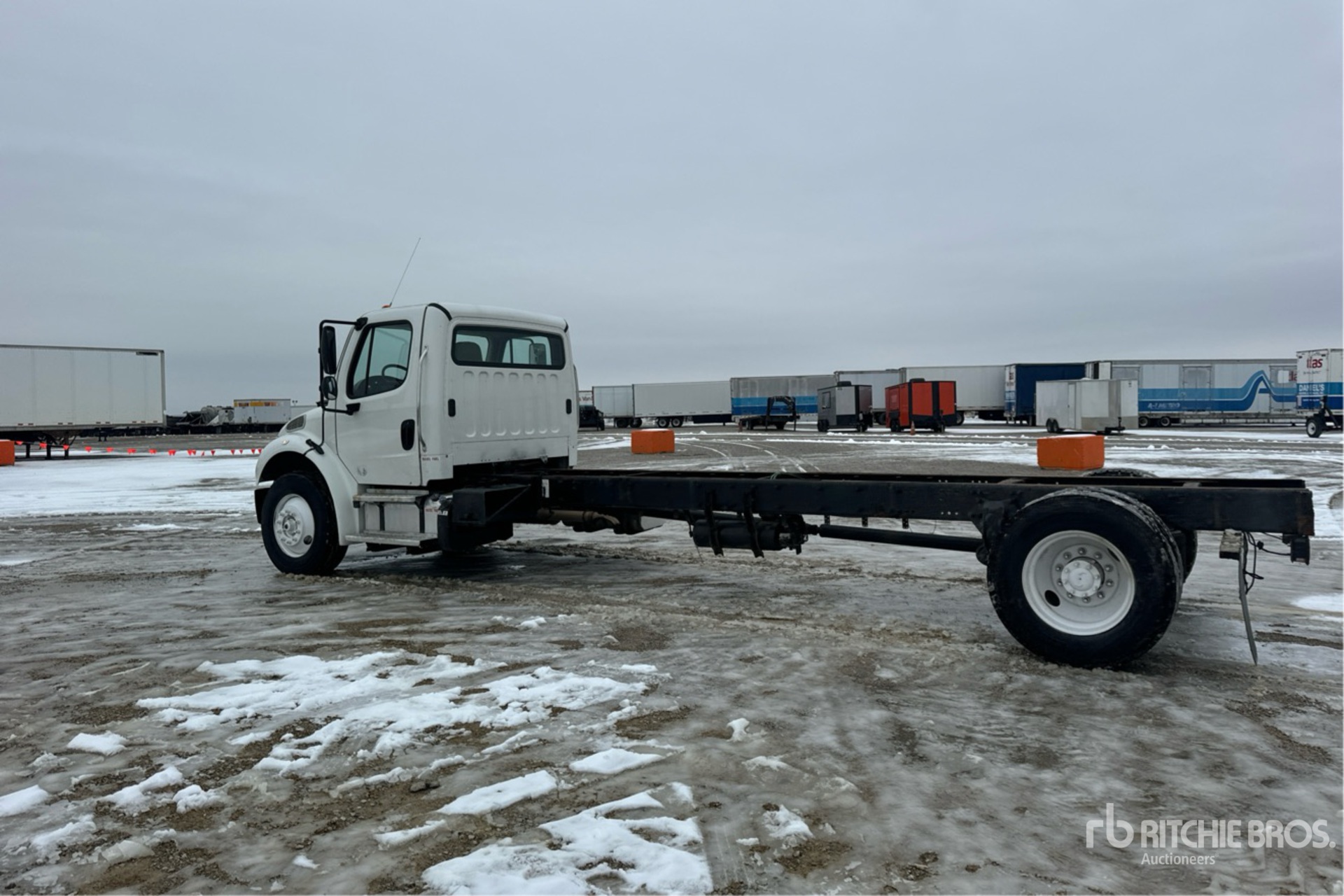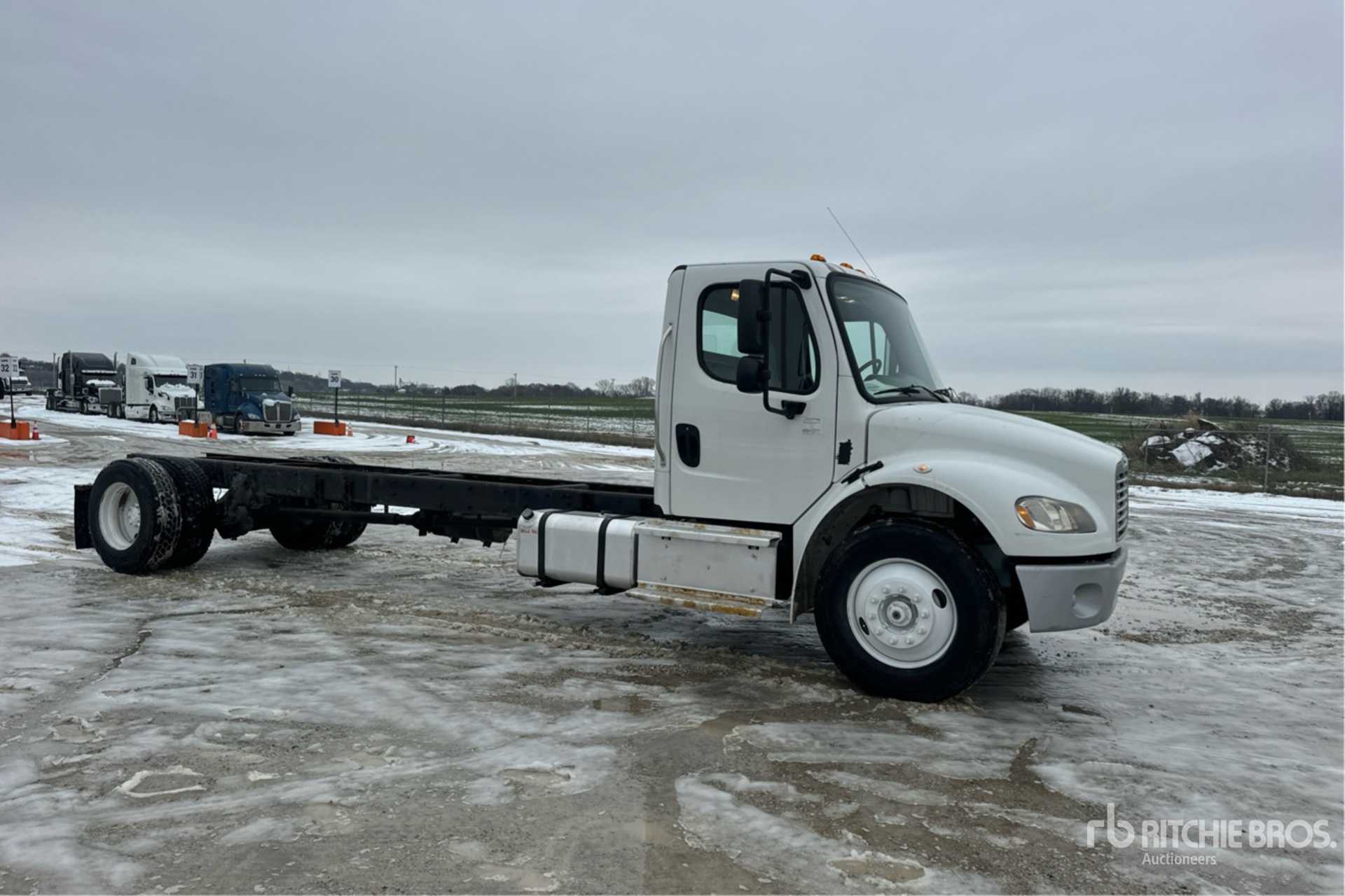 Situé dans la voie 8, moteur diesel Cummins ISB 6 cylindres 6,7 L, homologué EPA 2015, nécessite un additif pour réservoirs diesel, transmission automatique Allison, essieu avant de 5 443 kg (12 000 lb), essieux arrière de 9 525 kg (21 000 lb), PTAC de 14 997 kg (33 000 lb), pneus 295/75R22.5, suspension pneumatique, empattement de 640 mm (252 po), distance cabine-essieu de 523 mm (206 po), distance cabine-extrémité du châssis de 635 mm (250 po).