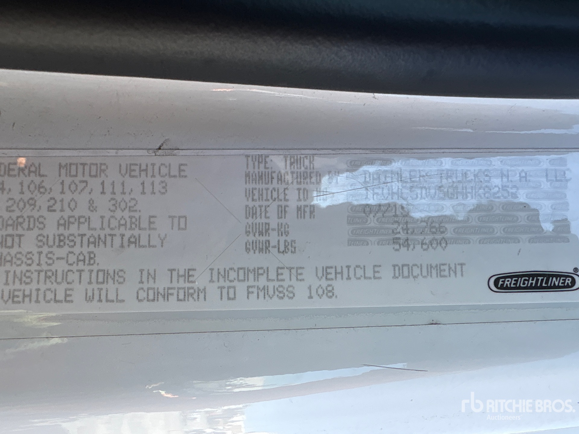 Moteur diesel Detroit à 6 cylindres, homologué EPA 2015, transmission manuelle Eaton Fuller à 10 vitesses, essieu avant de 6 624 kg, essieux arrière de 18 144 kg, PTAC de 24 730 kg, pneus avant 12R22.5, pneus arrière 11R22.5, suspension pneumatique, empattement de 645 cm, benne de 8,53 m x 2,59 m