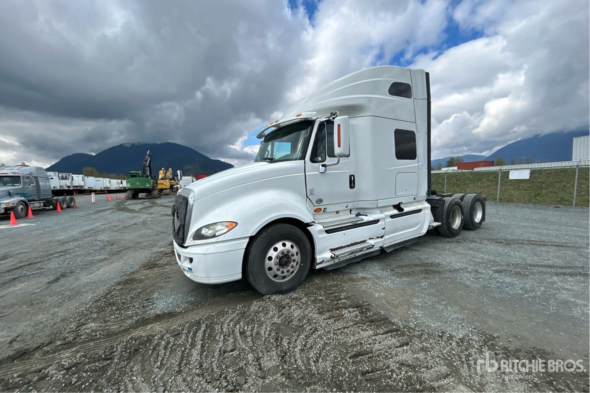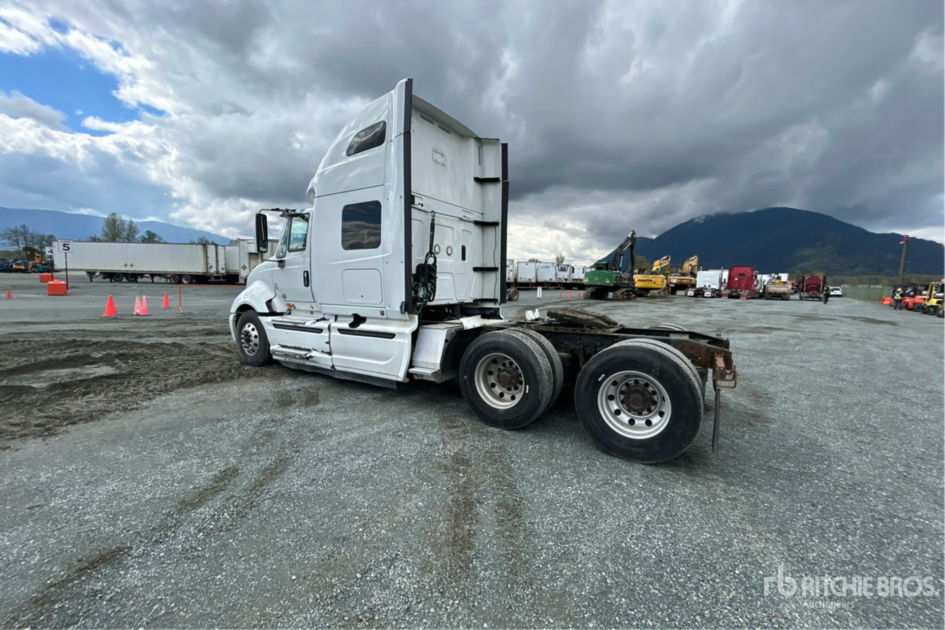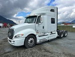 Moteur Navistar A475 de 475 ch, homologué EPA 2015, 21 611 heures de fonctionnement, transmission automatique, essieu avant de 5 600 kg, essieux arrière de 18 144 kg, PTAC de 23 700 kg, frein moteur, cabine couchette surélevée de 142 cm, lits superposés, empattement de 573 cm, suspension pneumatique, jantes en aluminium, pneus 11R22.5, attelage coulissant pneumatique, double réservoir de carburant