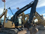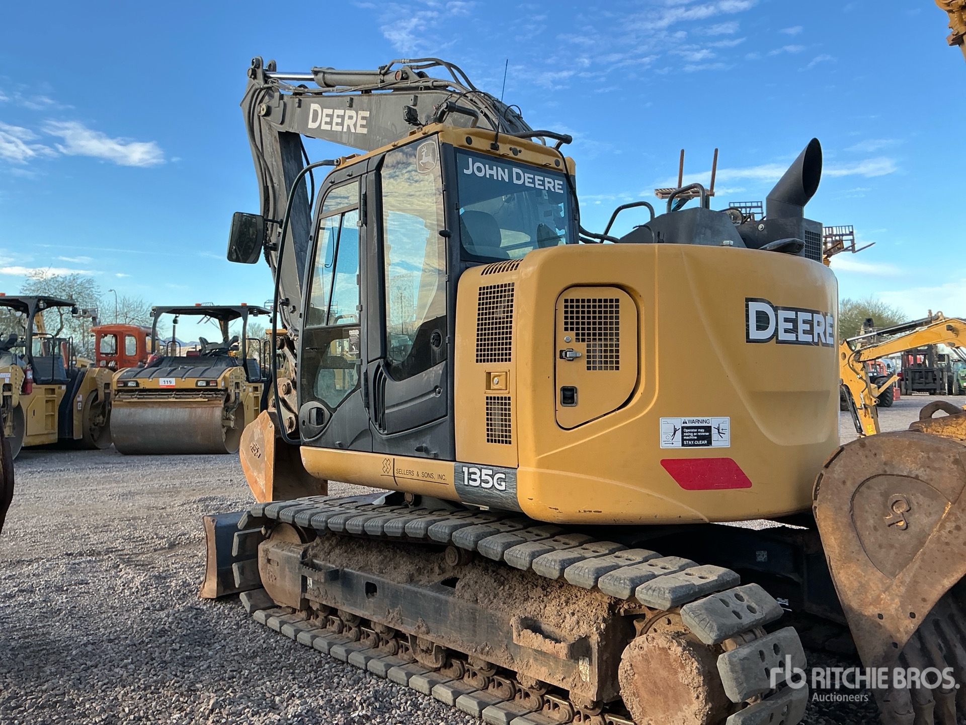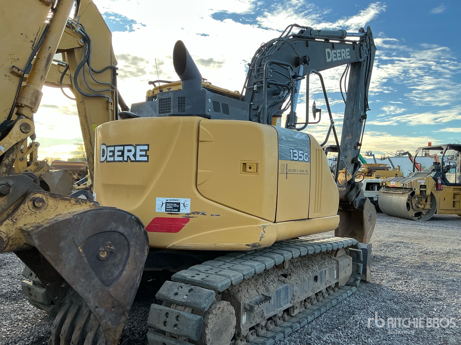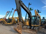 Situé dans la voie 6, climatiseur, bras de 2,92 m, circuit hydraulique auxiliaire, lame de remblayage, chenilles de 51 cm avec patins en caoutchouc, attache rapide hydraulique, godet de terrassement de 66 cm