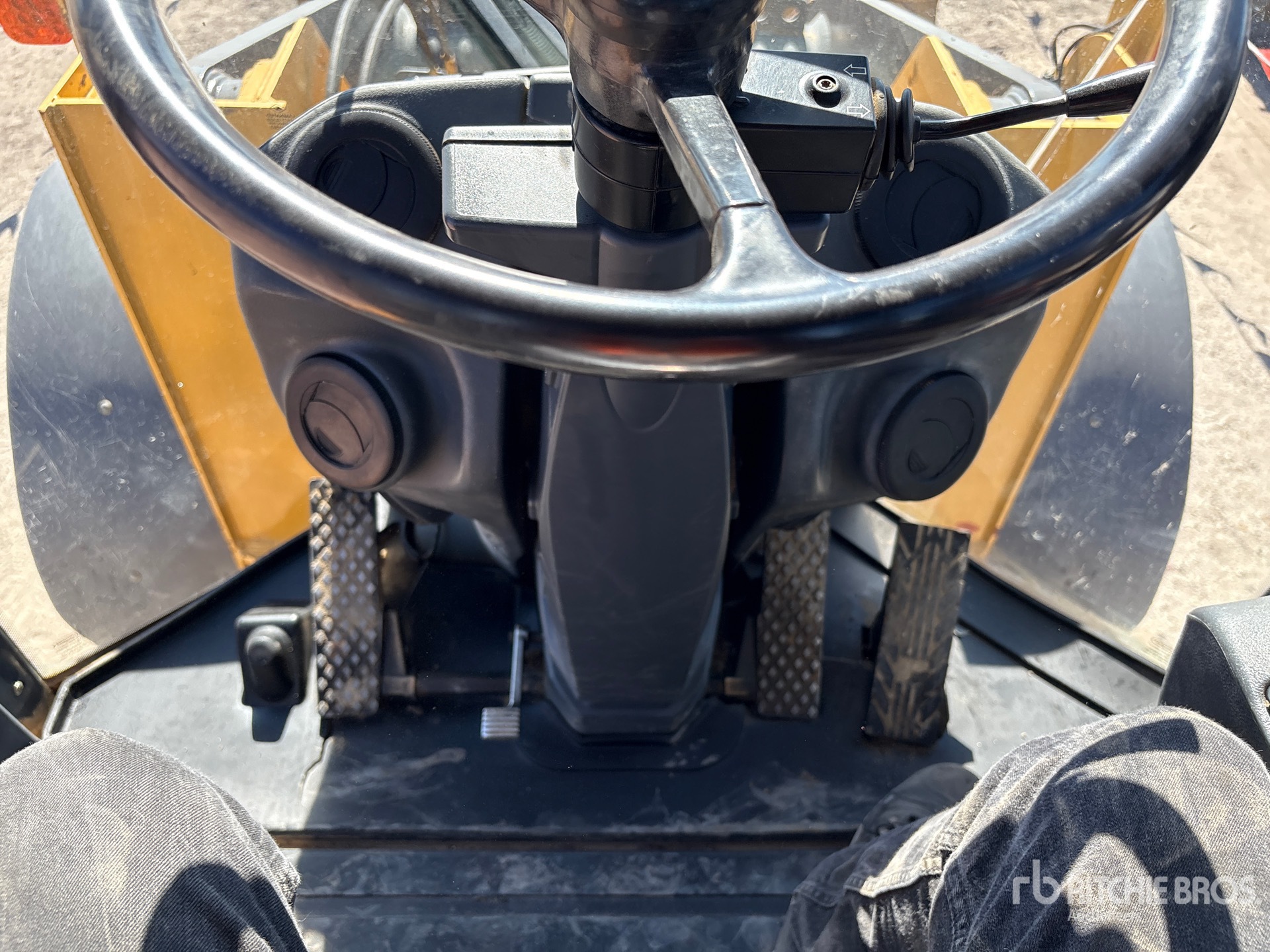 Situé sur la voie 206, emplacement 1, cabine fermée, climatisation, contrôle de la conduite, coupleur hydraulique, godet, fourches, pneus 20.5R25