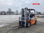 Mât à 3 sections, levage libre total, fourches, moteur à double carburant