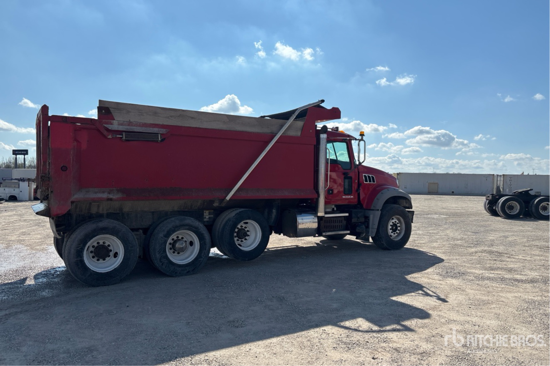 Situé sur la voie 9, emplacement 9, ce camion Mack MP7 est équipé d'un moteur diesel 6 cylindres de 10,8 L développant 395 ch, homologué EPA 2015, affichant 18 257 heures de fonctionnement. Il est doté d'un frein moteur, d'une transmission manuelle Mack MAXITORQUE ES à 8 vitesses, d'un différentiel autobloquant, d'un essieu avant de 9 072 kg (20 000 lb), d'essieux arrière de 20 864 kg (46 000 lb), d'un PTAC de 29 946 kg (66 000 lb), de pneus avant 425/65R22.5, pneus arrière 11R22.5, d'un essieu porteur pneumatique, d'un essieu suiveur pneumatique, de deux boîtiers de direction, d'un châssis double, d'une suspension à ressorts, d'un empattement de 584 cm (230 po), d'une prise de force, d'un système hydraulique, d'une benne American Body en acier de 4,88 m (16 pi) de long x 1,30 m (51 po) de hauteur, d'une capacité de 117 m³ (15 pi³), d'une bâche à enroulement électrique et d'un système hydraulique arrière.