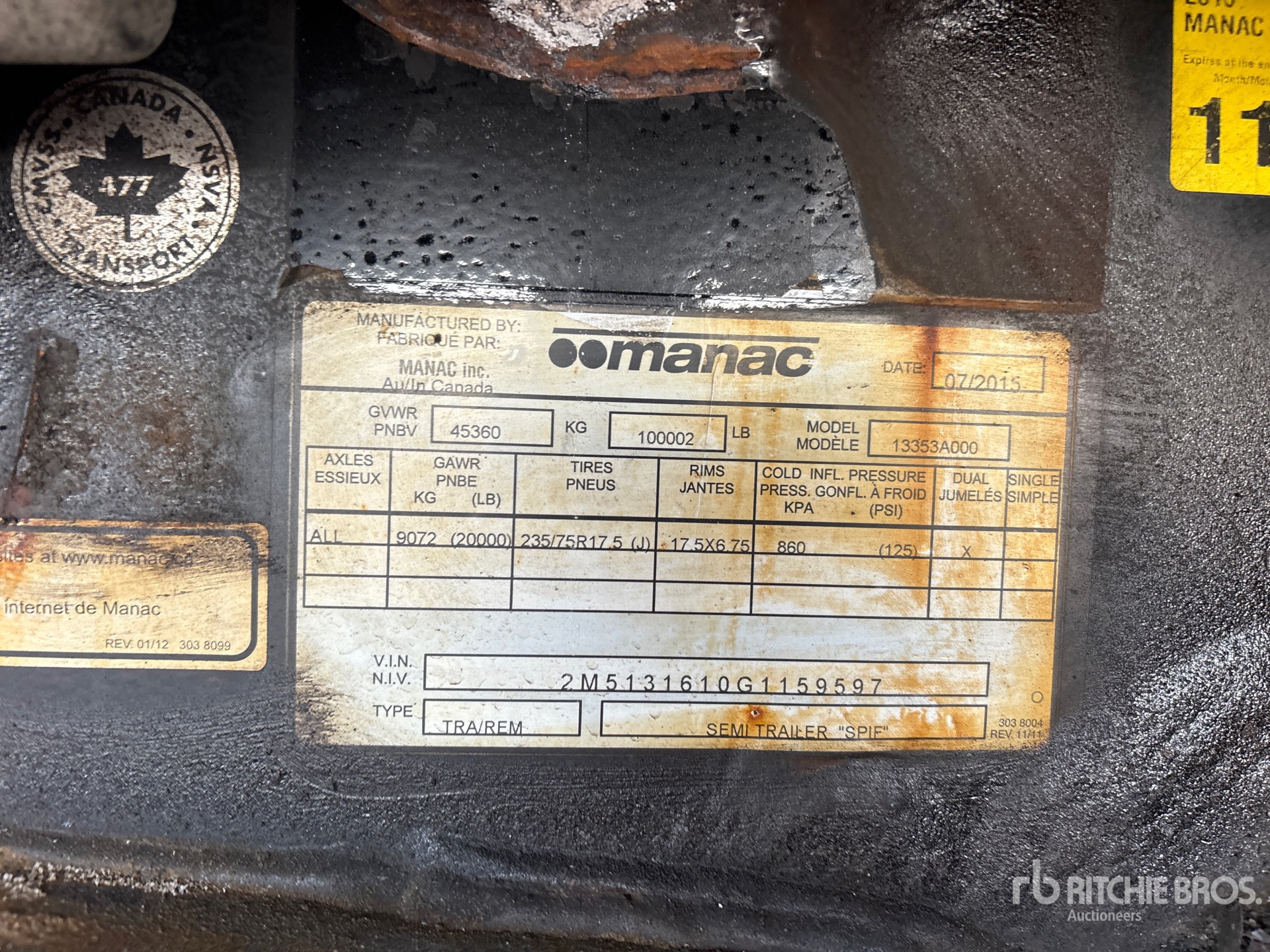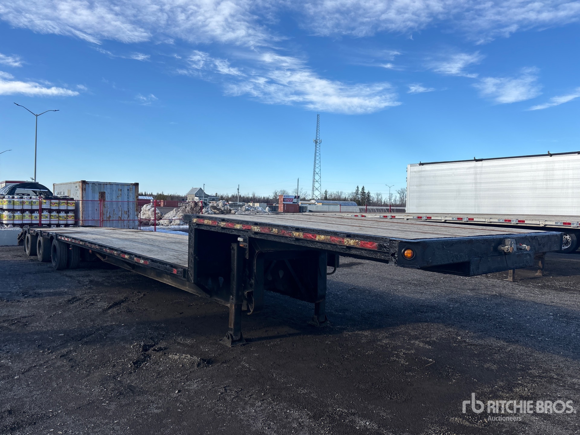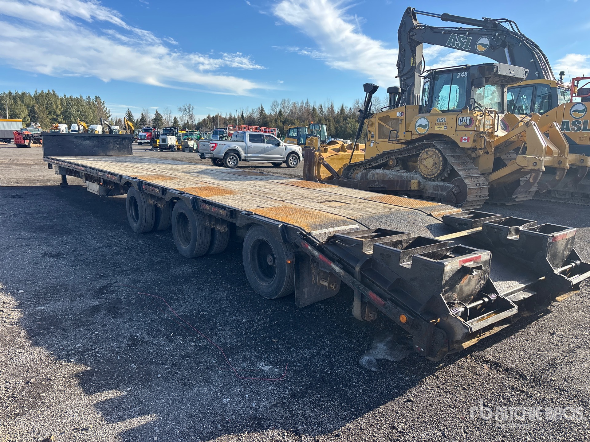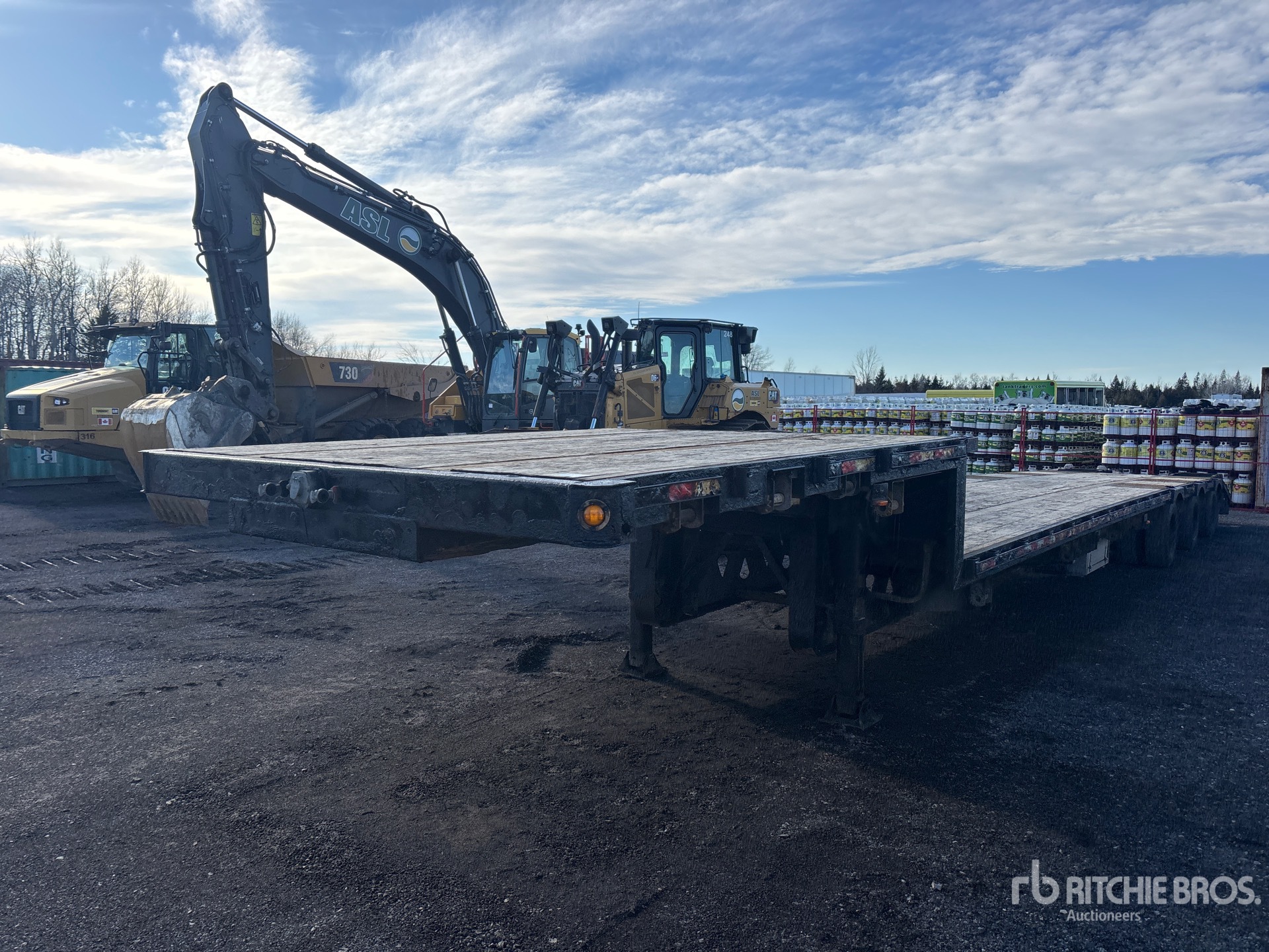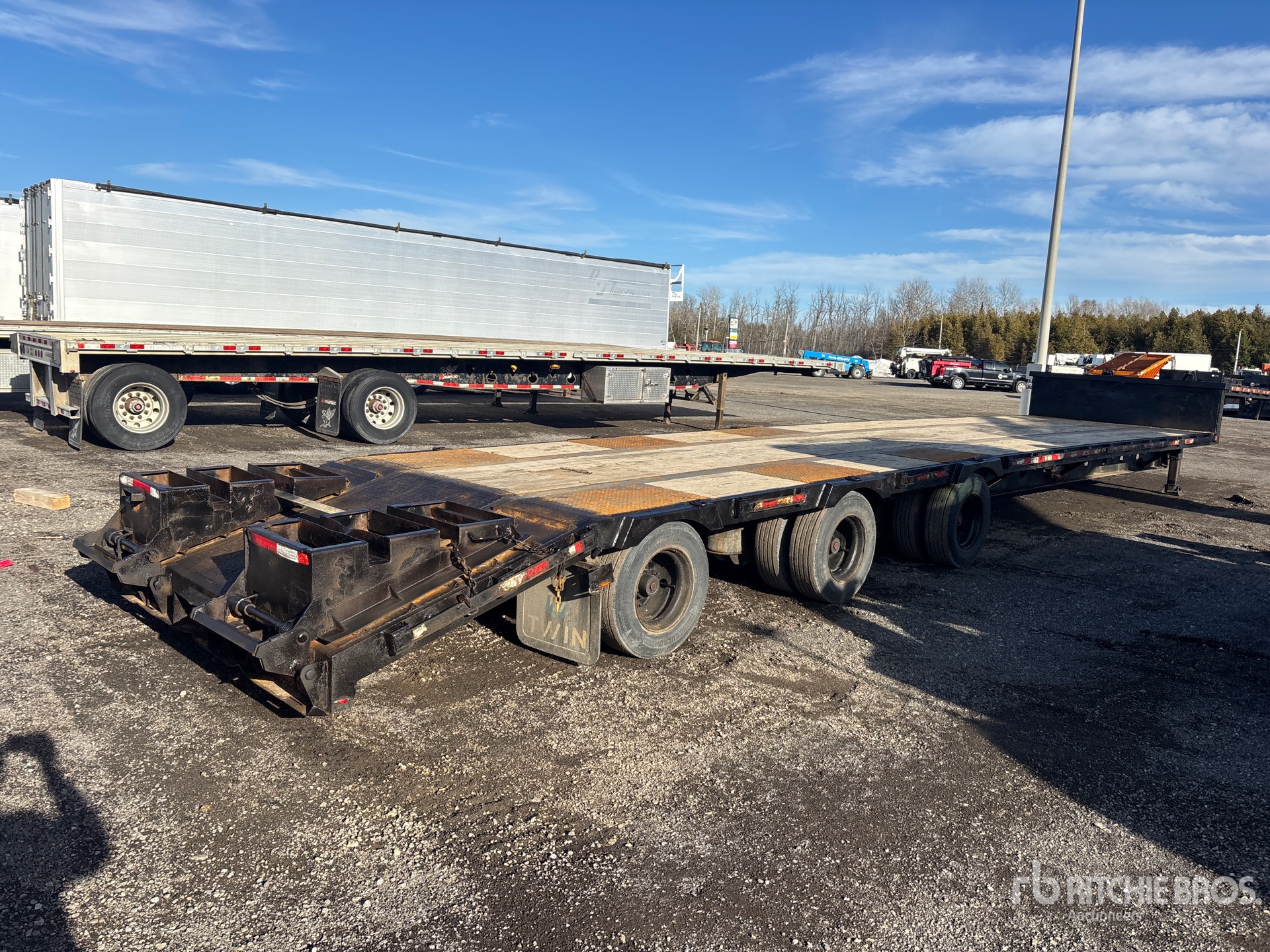 Suspension pneumatique, freins pneumatiques, plateau supérieur de 3,25 m, plateau principal de 11,20 m, queue d'aronde fixe de 1,52 m, largeur totale du plateau de 2,59 m, plateau au-dessus des pneus, rampes manuelles, plancher en bois, pneus 235/75R17.5, PTAC de 454 kg