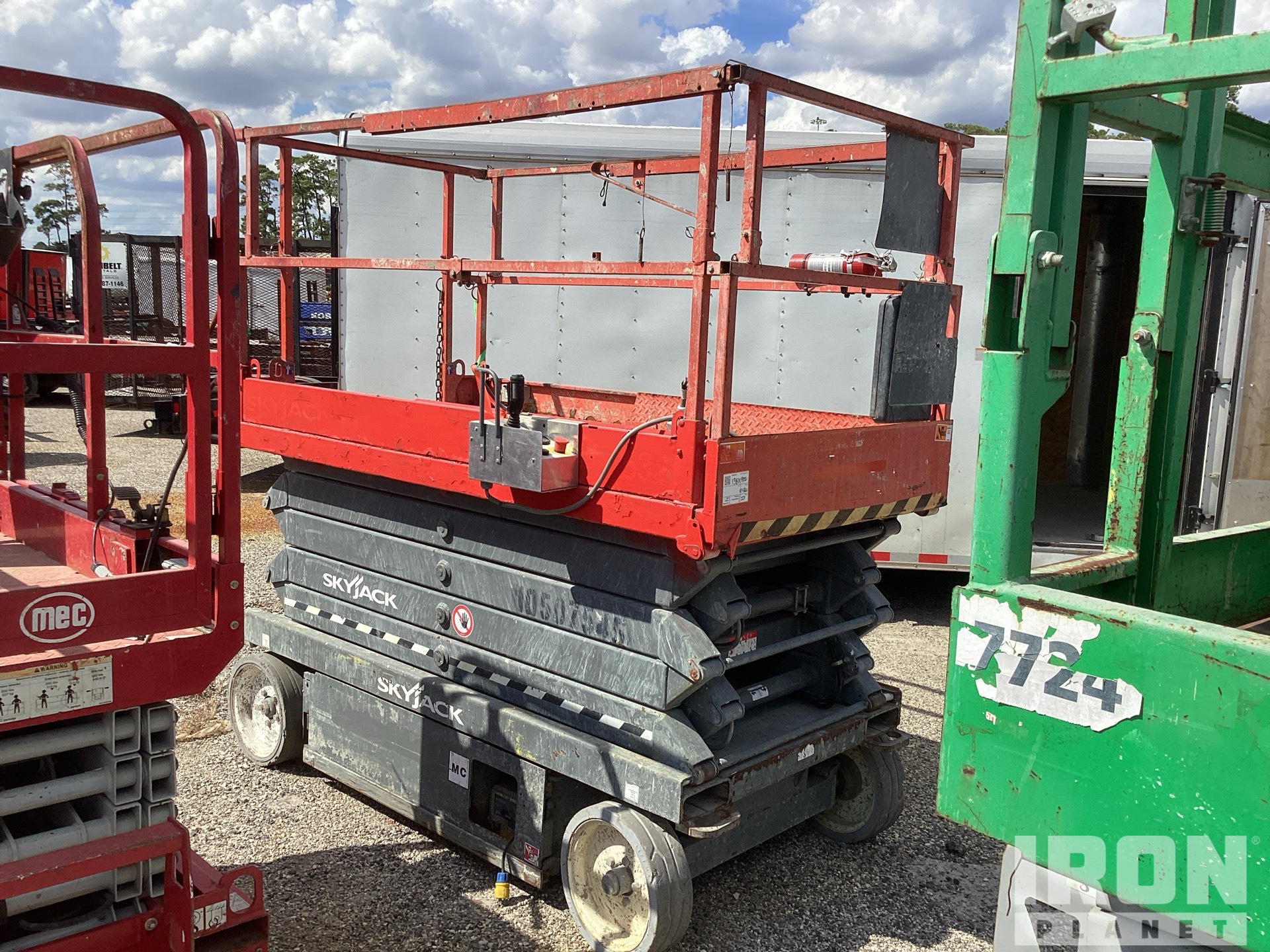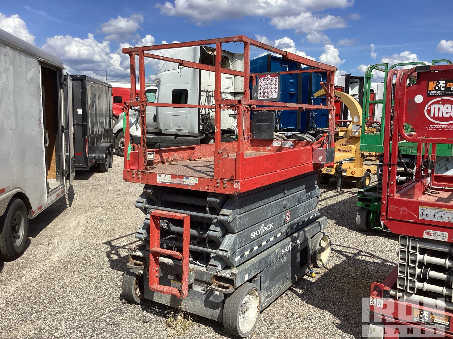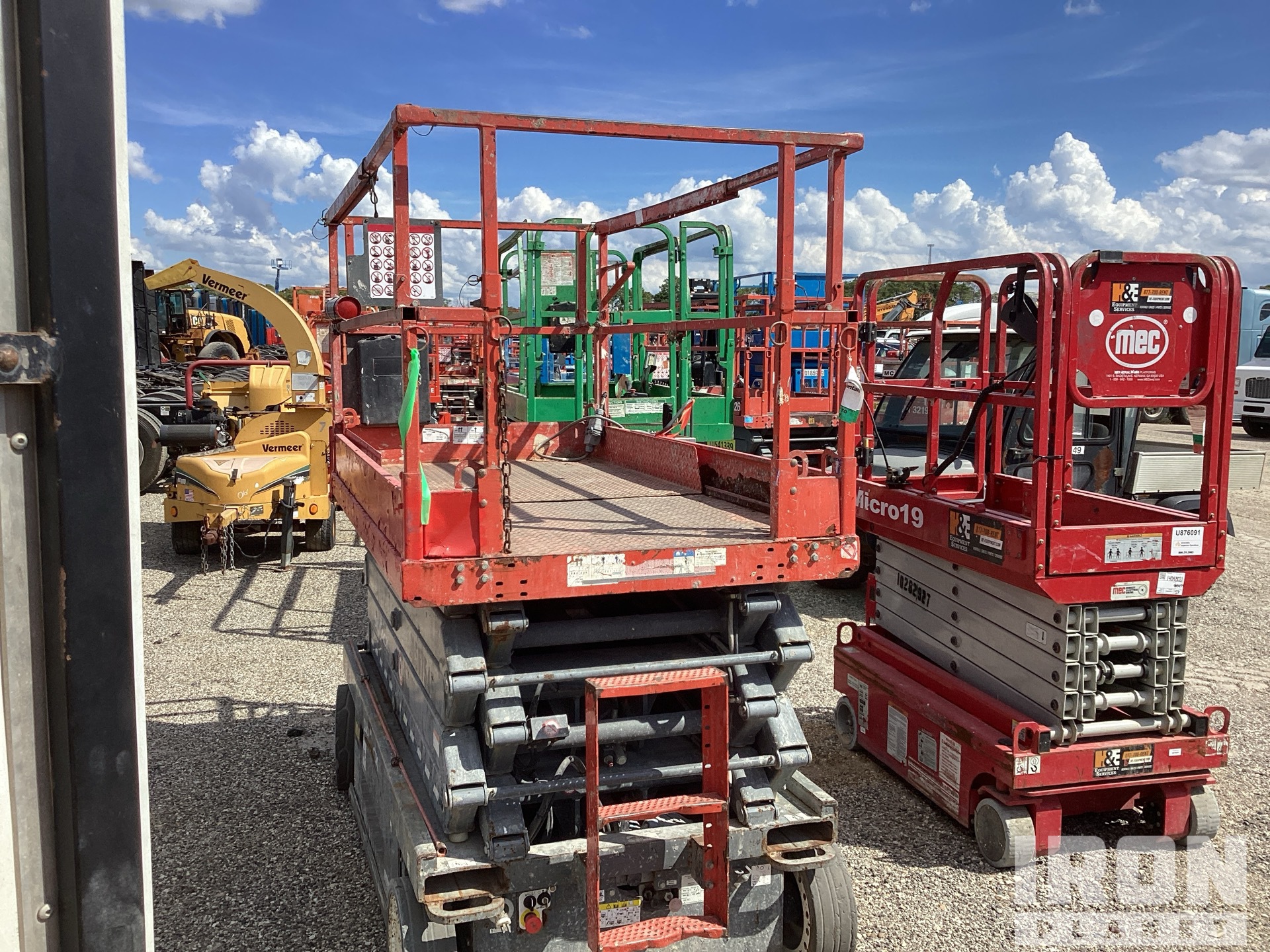 Hauteur maximale de la plateforme : 32 pi, capacité de charge maximale : 700 lb, rallonge de la plateforme, alimentation électrique, pneus pleins non marquants, boîtier de commande supérieur