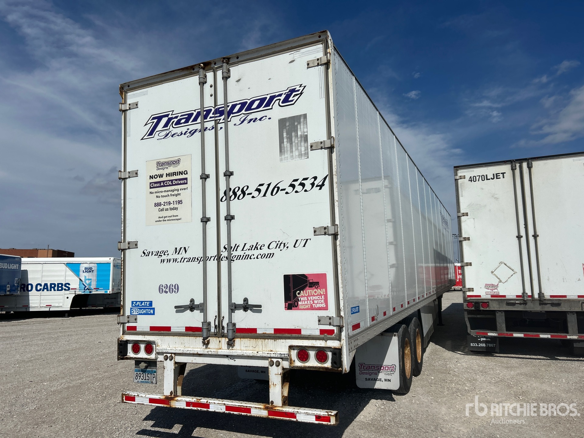 Suspension pneumatique coulissante, jupes latérales, plancher de bois franc, porte battante, pneus 295/75R22.5, PNBV de 70 000 lb