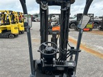 Situé sur la voie 52, mât à 3 étages, hauteur de levage maximale de 189 pouces, hauteur de mât abaissée de 82 pouces, fourches de 47 pouces, circuit hydraulique auxiliaire, déplacement latéral