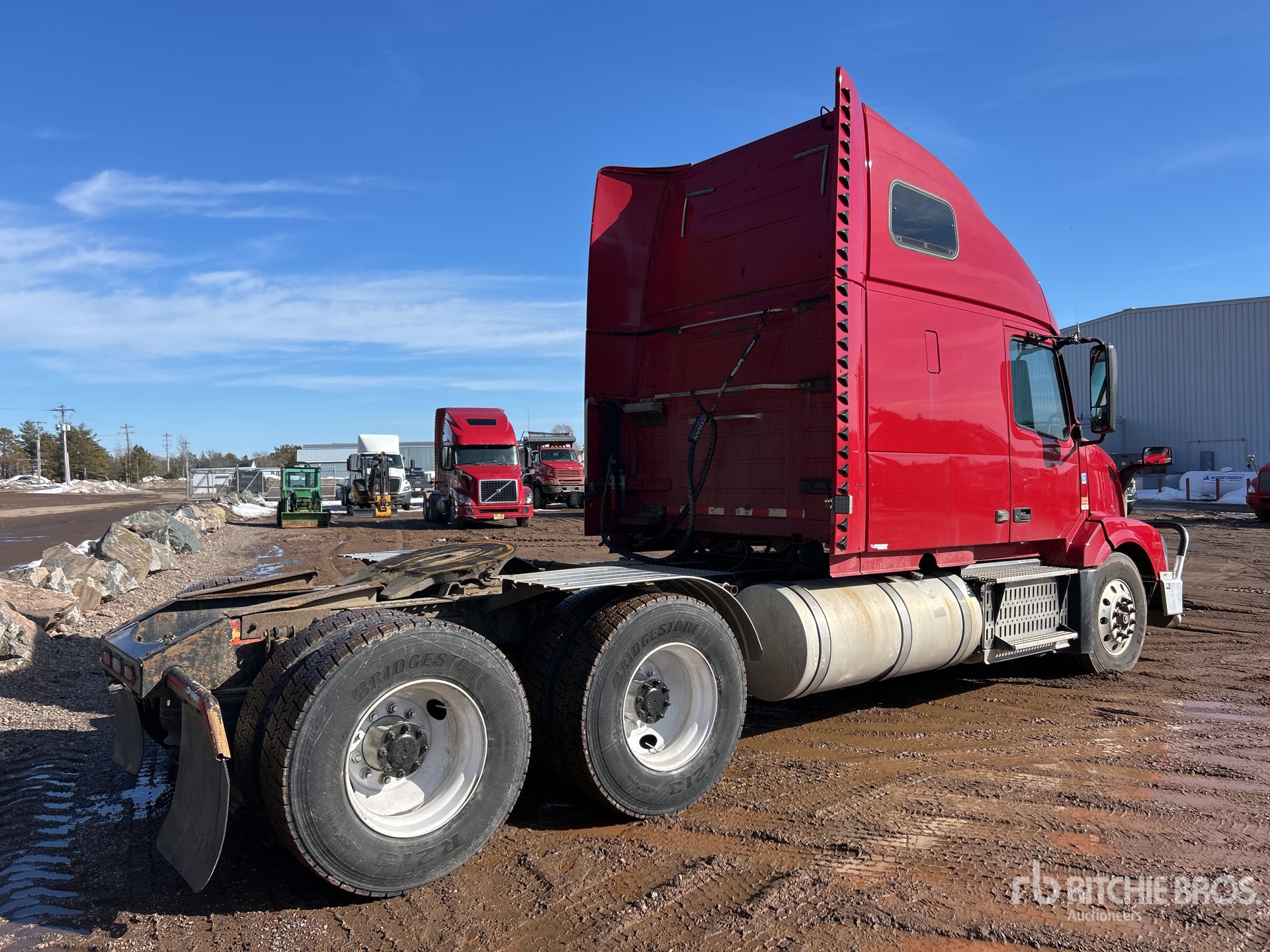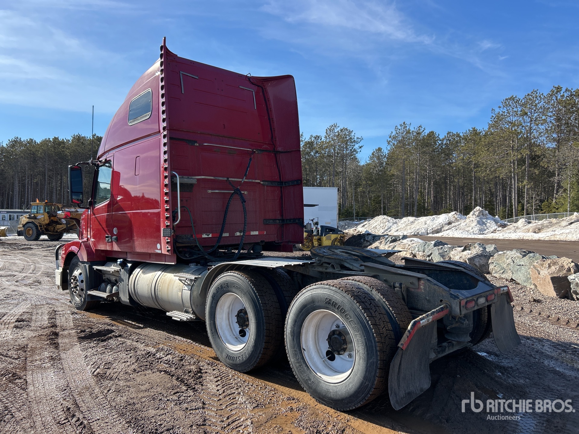 Moteur Cummins ISX400ST de 400 ch, homologué EPA 2015, transmission manuelle Eaton Fuller à 10 vitesses, essieu avant de 5 987 kg, essieu arrière de 18 144 kg, PTAC de 24 114 kg, frein moteur, cabine couchette surélevée de 155 cm, empattement de 549 cm, suspension pneumatique, roues avant en aluminium, pneus 11R22.5, réservoir double de carburant
