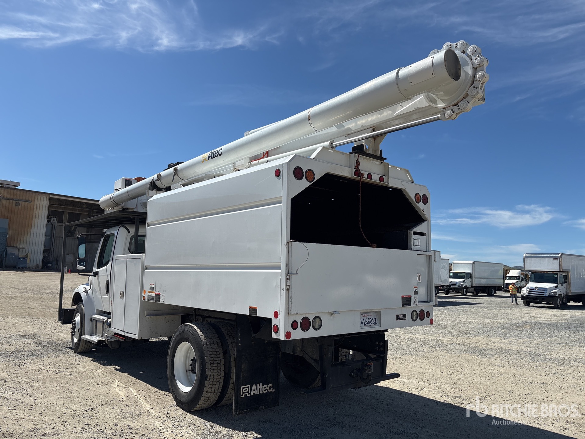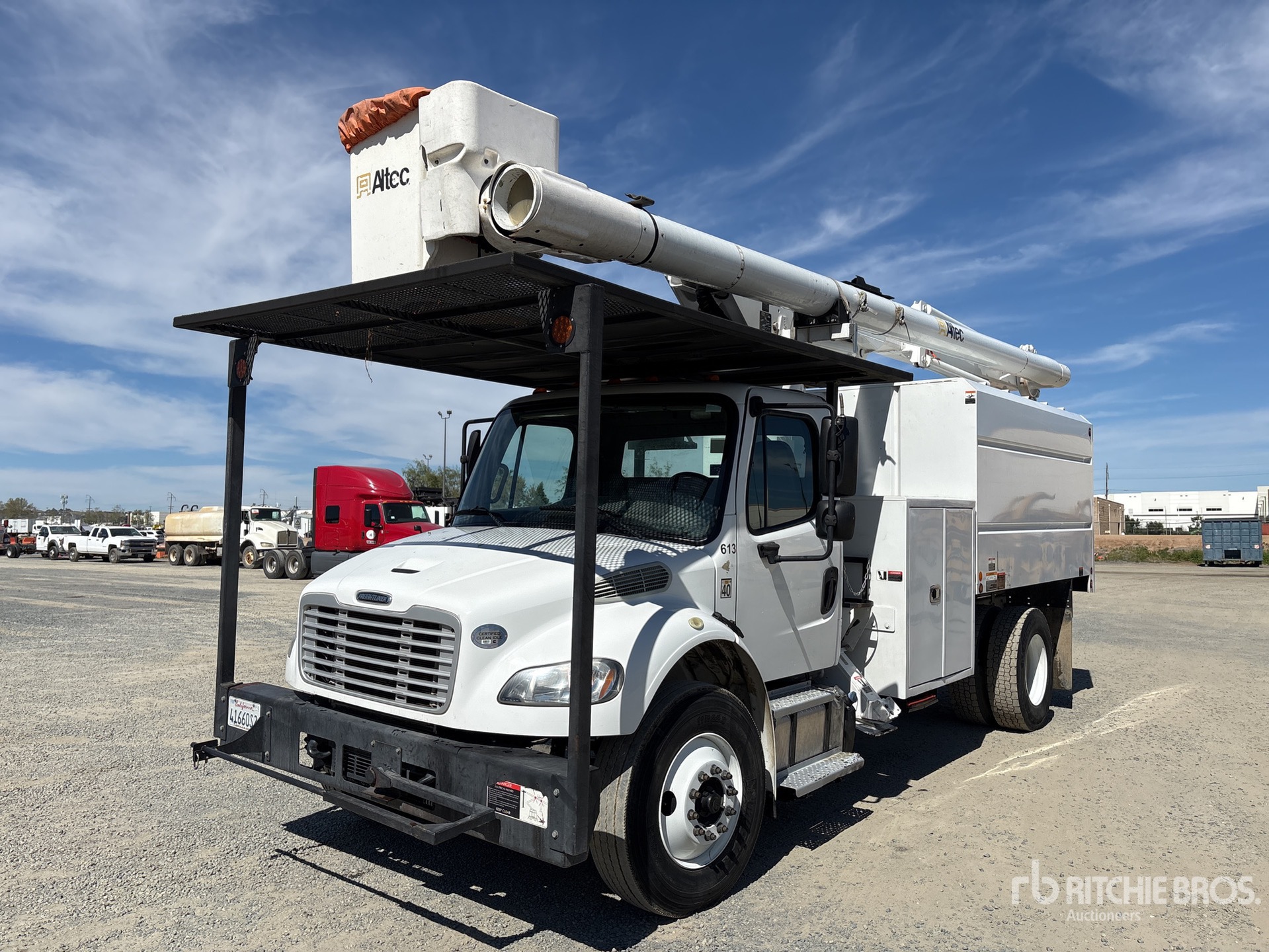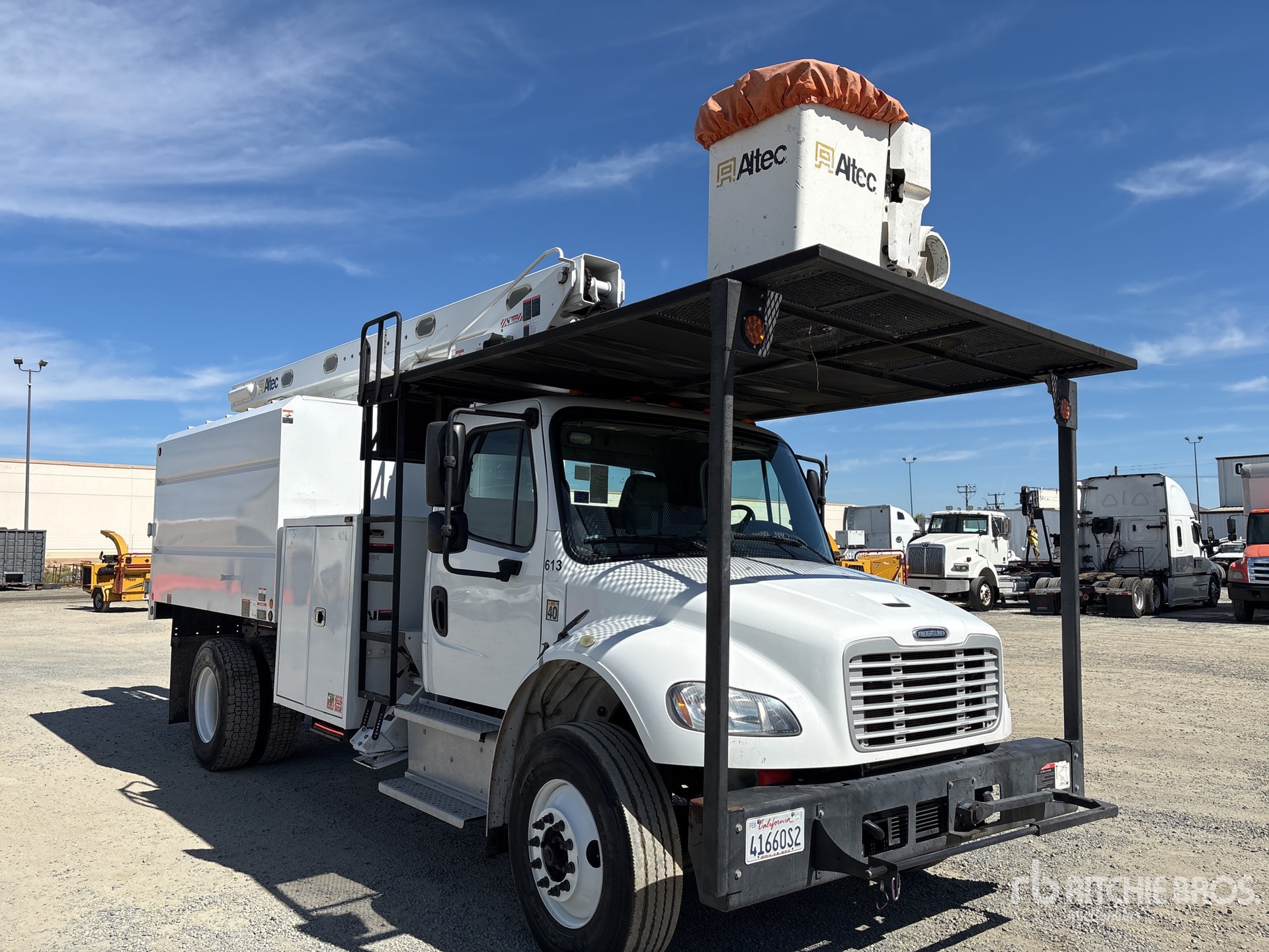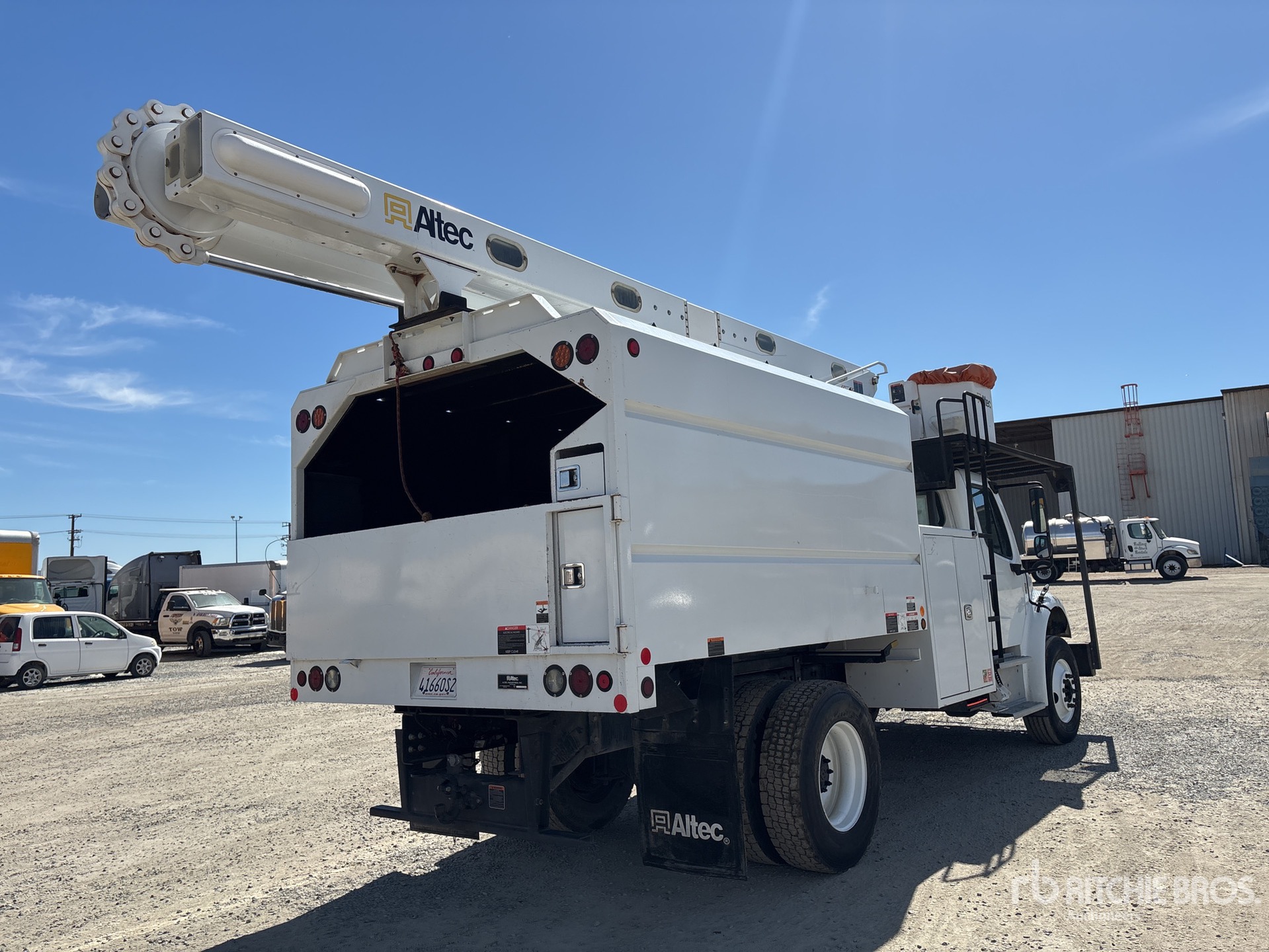 Situé sur la voie 11, emplacement 12, moteur diesel Cummins B6.7 6 cylindres 6,7 L 240 ch, homologué EPA 2017, nécessite un additif pour réservoirs de diesel, 5 066 heures de fonctionnement, transmission manuelle Eaton Fuller FS-5406A à 6 vitesses, différentiel autobloquant, essieu avant de 6 000 kg, essieux arrière de 9 500 kg, essieux moteurs Meritor MS-21-14X, rapport de pont de 4,33:1, PTAC de 15 000 kg, pneus 11R22.5, suspension à ressorts, empattement de 4,83 m, prise de force, capacité de 181 kg, flèche articulée isolée monoplace montée à l'avant, benne à copeaux, stabilisateurs en A, plateau de 3,35 m x 2,44 m