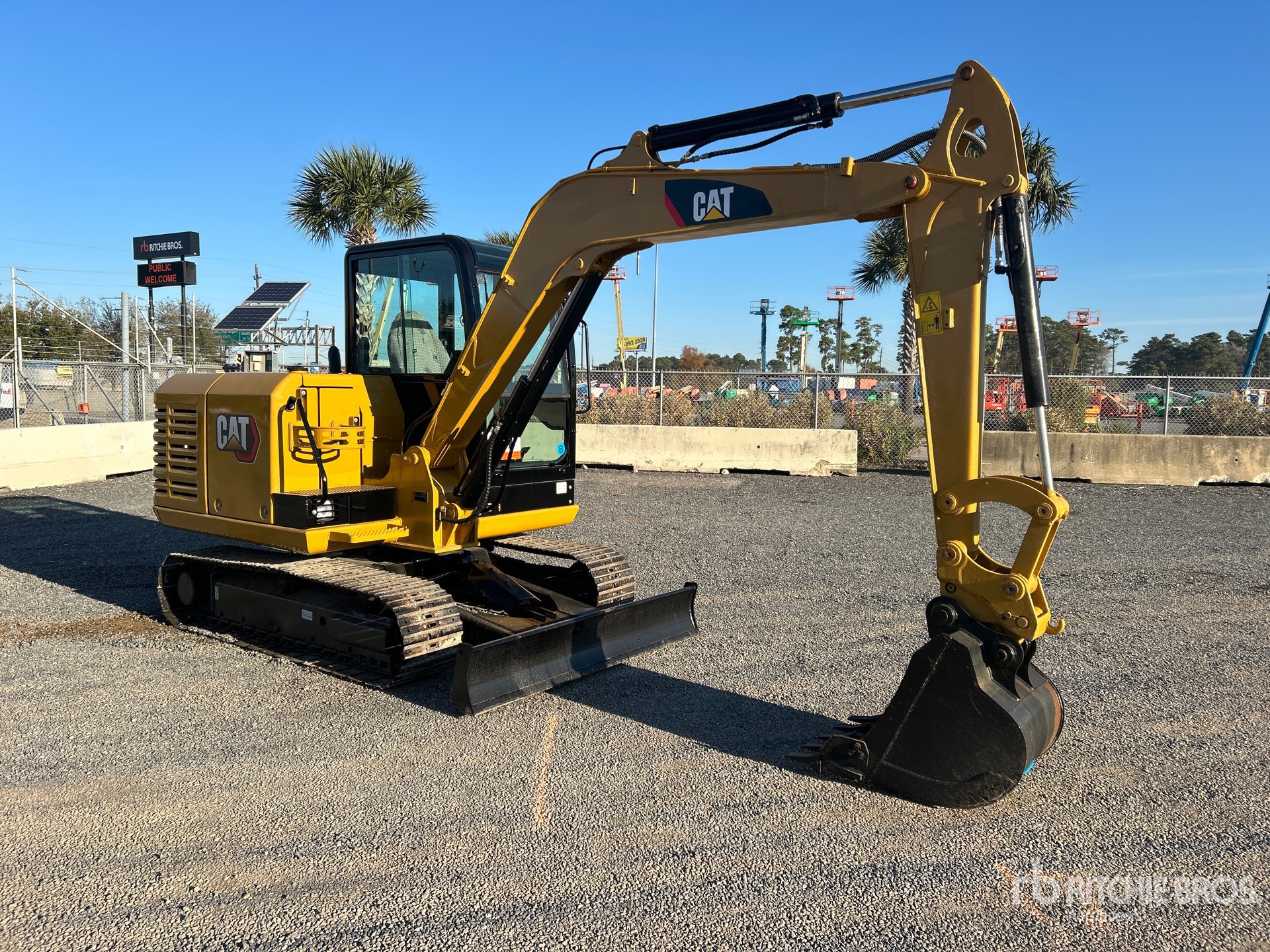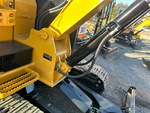 Située sur la voie 2, emplacement 24, cabine fermée, climatisation, bras de 1,5 m, lame de remblayage, chenilles à triple crampons de 40 cm, attache rapide manuelle, godet de terrassement de 71 cm