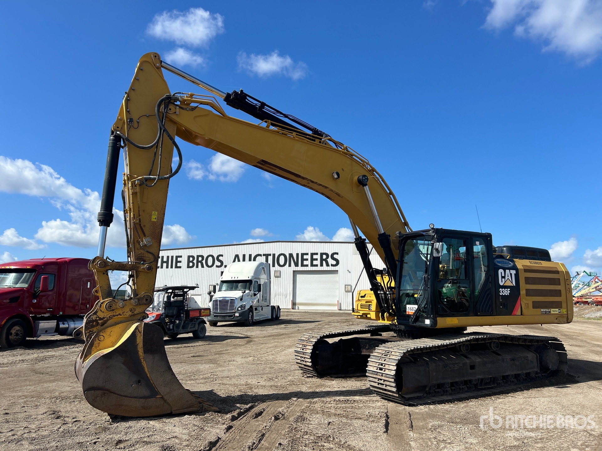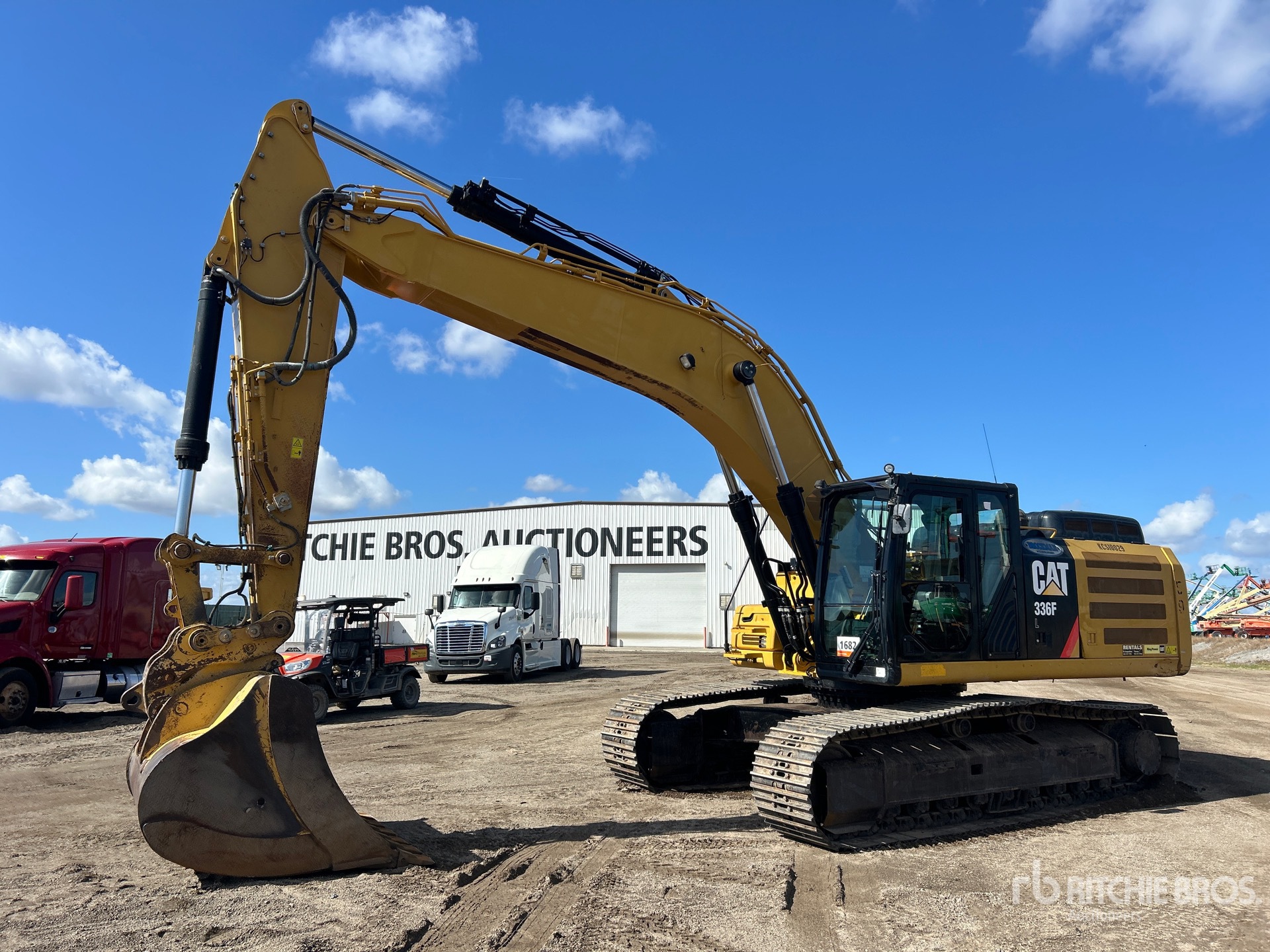 Climatisation, caméras de recul et latérales, conforme à la norme Tier 4, homologation EPA américaine 2016, nécessite un fluide d'échappement diesel, bras de 3,66 m, circuit hydraulique auxiliaire, chenilles à triple crampon de 70 cm, attache rapide hydraulique, godet de creusement de 168 cm, graissage automatique