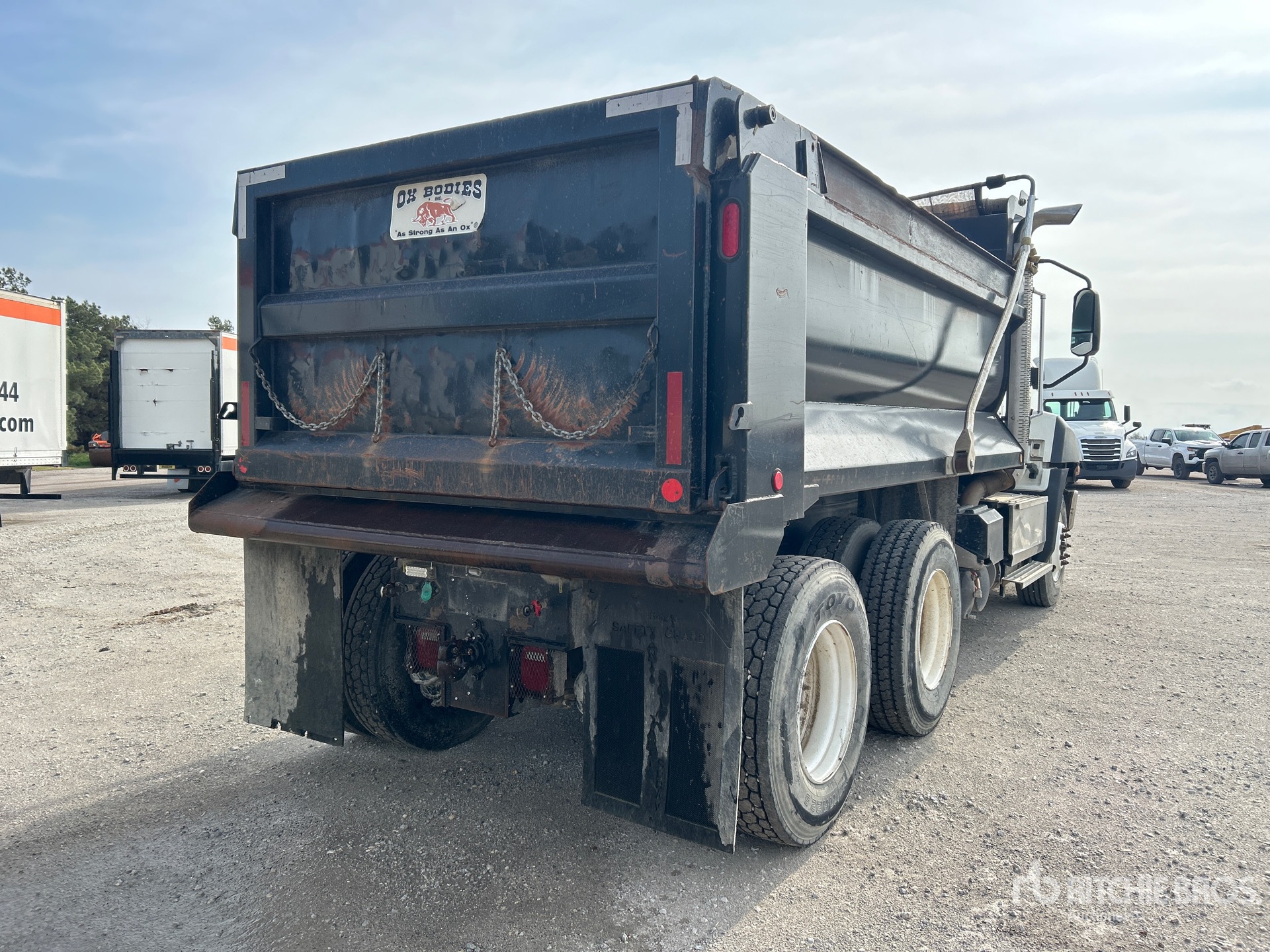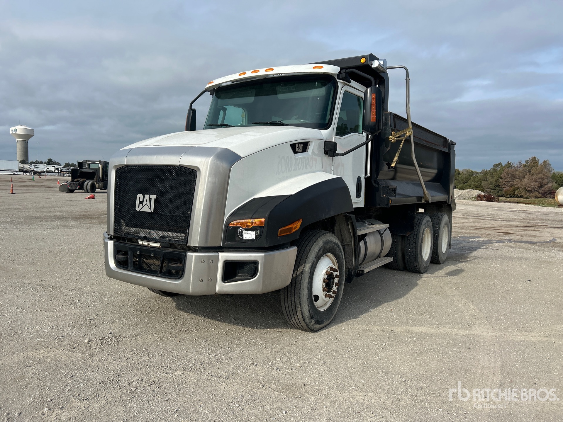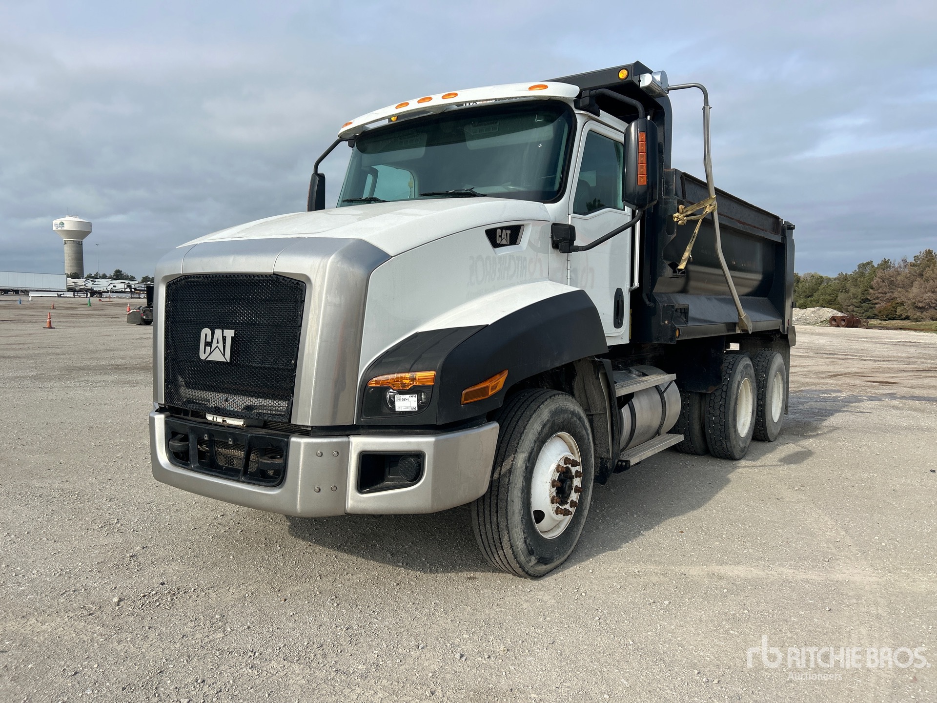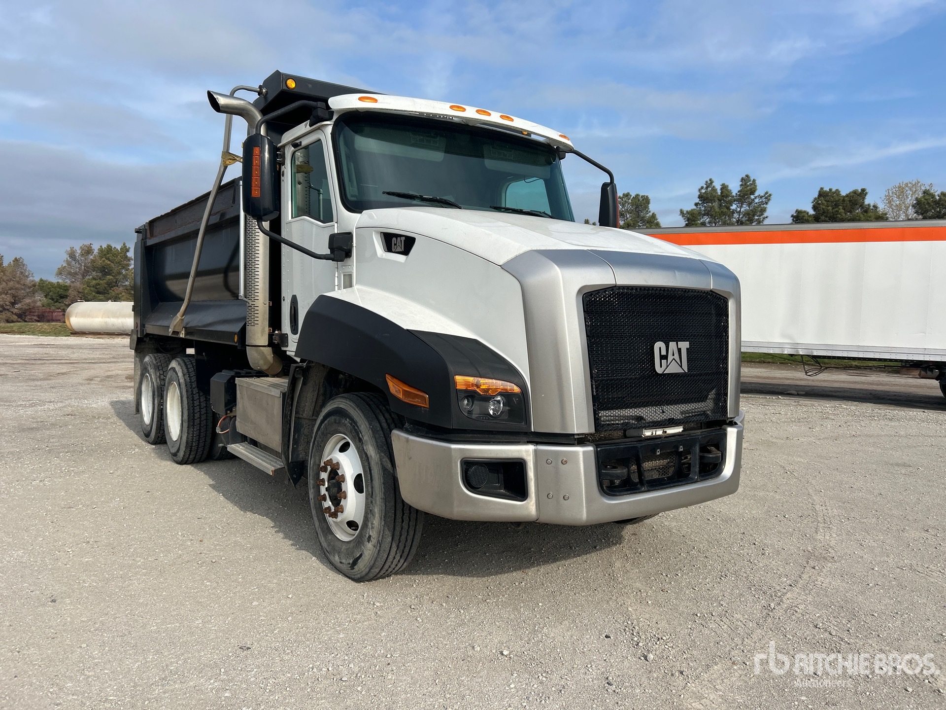 Moteur diesel Cat CT13 6 cylindres 12,4 L 390 ch, homologué EPA 2016, nécessite un additif pour réservoirs de diesel, 3 770 heures de fonctionnement, boîte de vitesses manuelle Eaton Fuller 10 rapports, différentiel autobloquant, essieu avant 5 987 kg, essieu arrière 18 144 kg, PTAC 24 114 kg, pneus 11R22.5, suspension à ressorts Hendrickson sur balancier, empattement de 4,50 m, prise de force, benne OX Bodies 4,27 m de long x 1,30 m de haut en acier, fond arrondi, bâche à enroulement électrique
