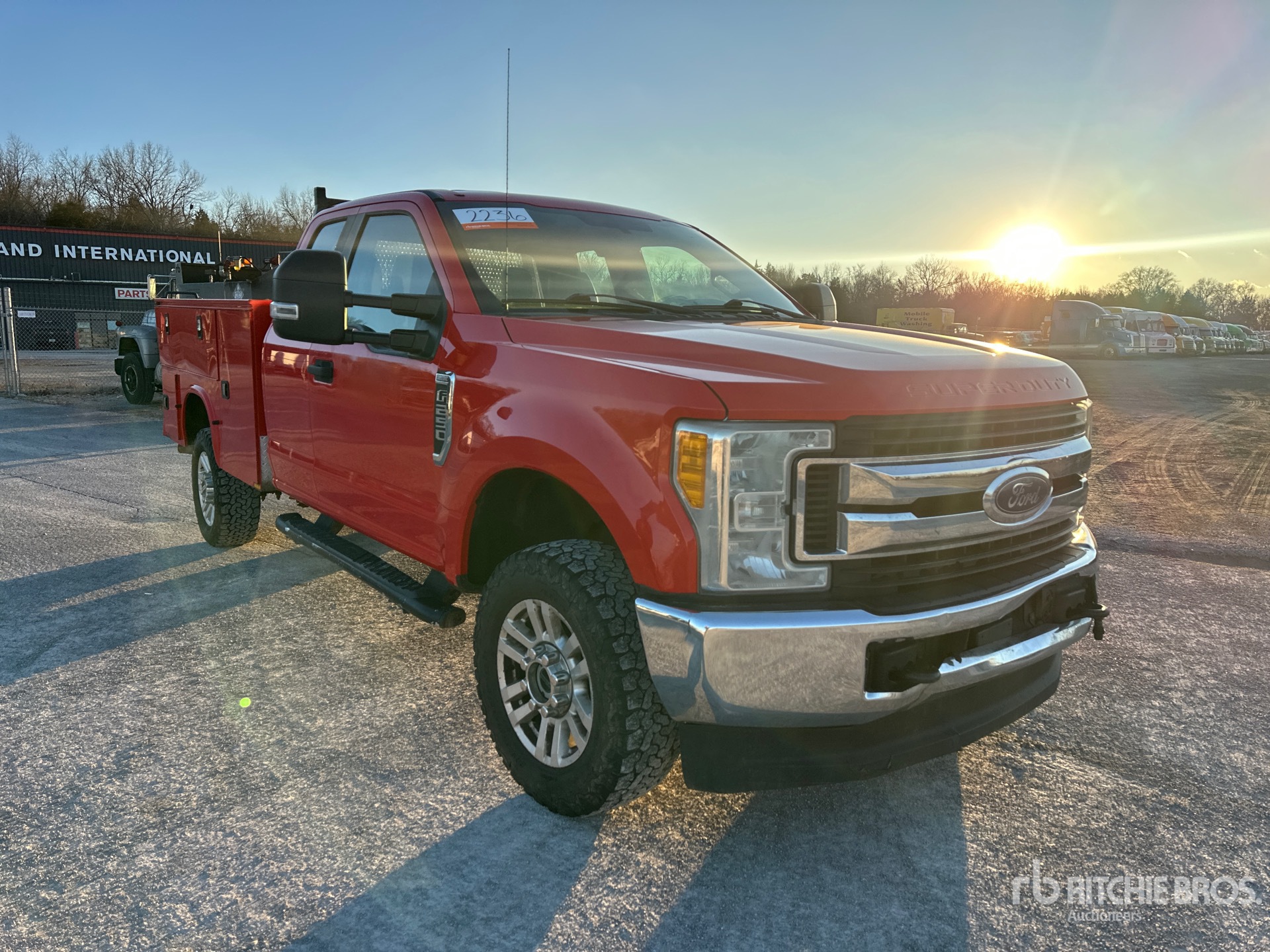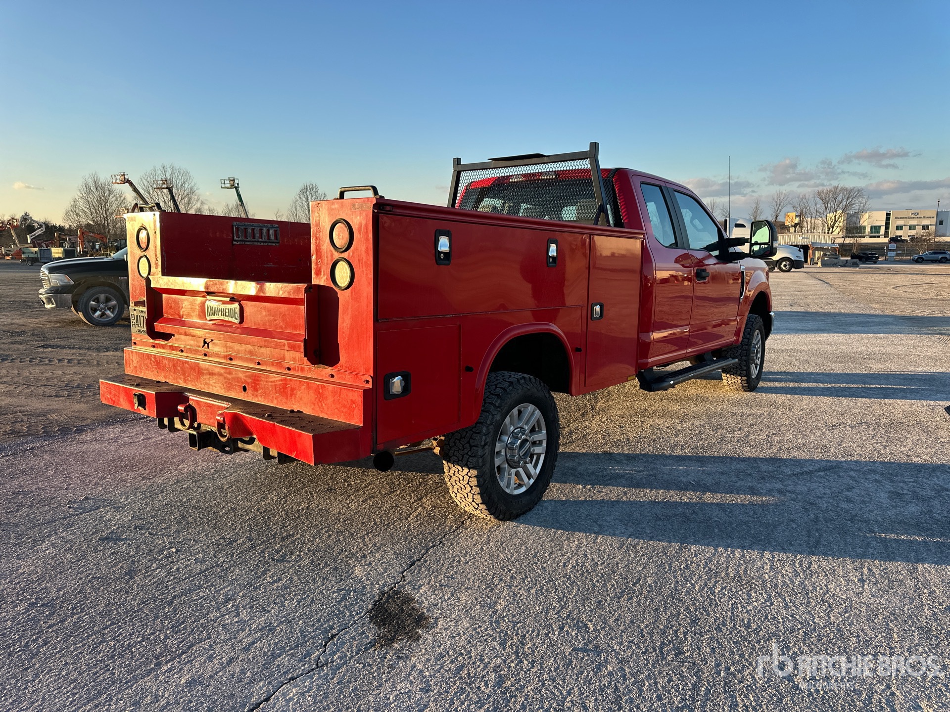 Situé sur la voie 15, emplacement 18, moteur à essence V8 6,2 L, homologation EPA américaine 2017, 11 119 heures moteur, transmission automatique, essieu avant de 2 359 kg, essieux arrière de 2 870 kg, PTAC de 4 536 kg, pneus 275/65R18, suspension à ressorts, empattement de 4,17 m, carrosserie Knapheide 796J 2016 de 2,44 m