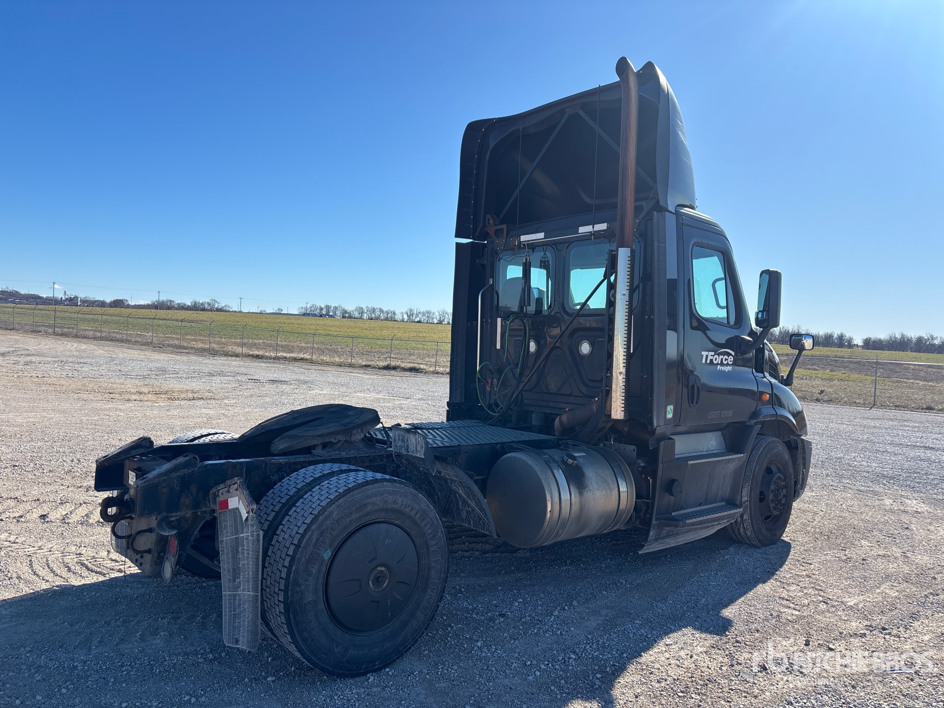 Moteur Detroit DD13 de 410 ch, homologué EPA 2016, 18 347 heures de fonctionnement, transmission automatisée Detroit DT12-DB-1550 à 12 rapports, essieu avant de 5 443 kg, essieu arrière de 10 433 kg, PTAC de 14 997 kg, empattement de 4,29 m, suspension pneumatique, pneus 295/75R22.5, attelage à billes, double réservoir de carburant