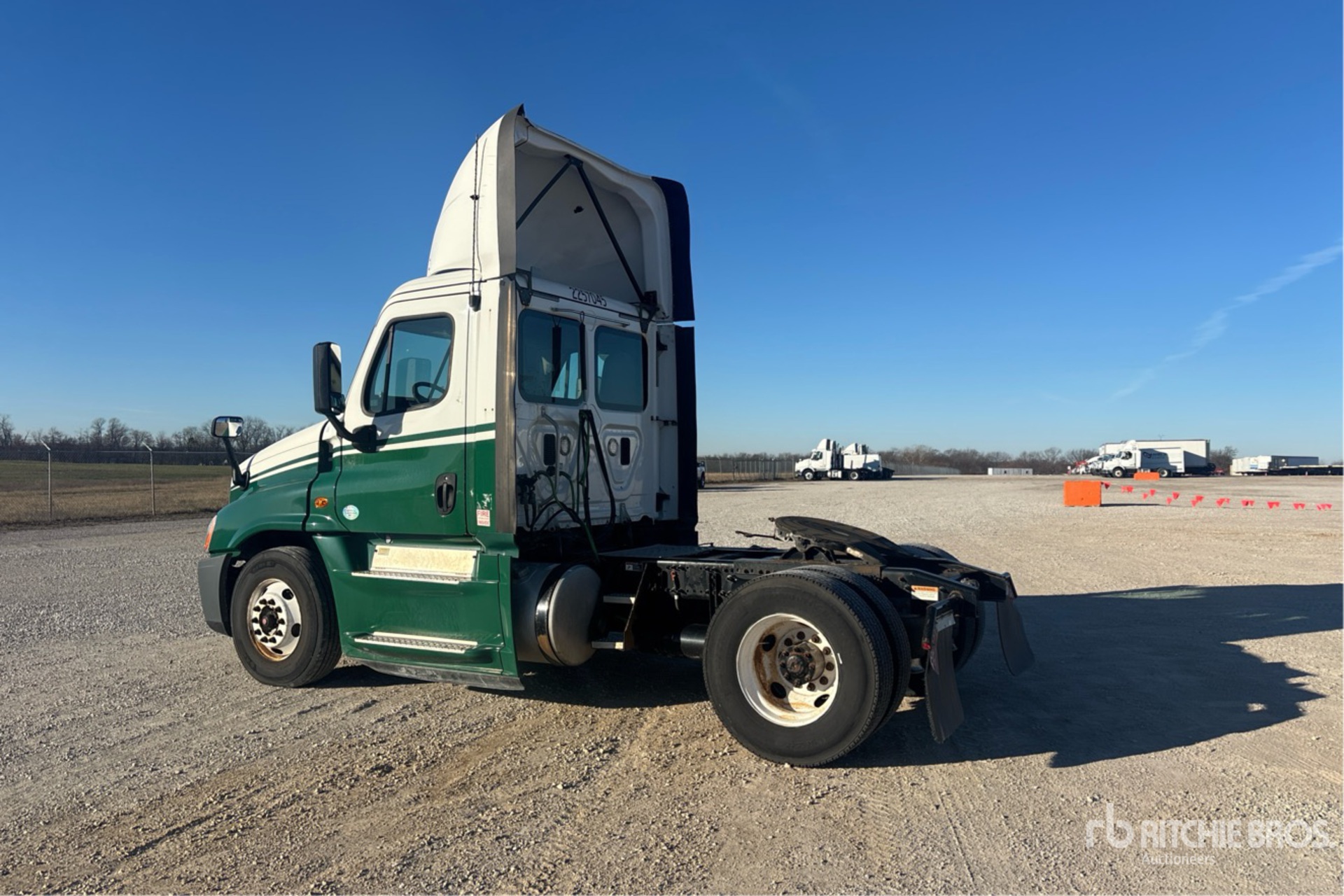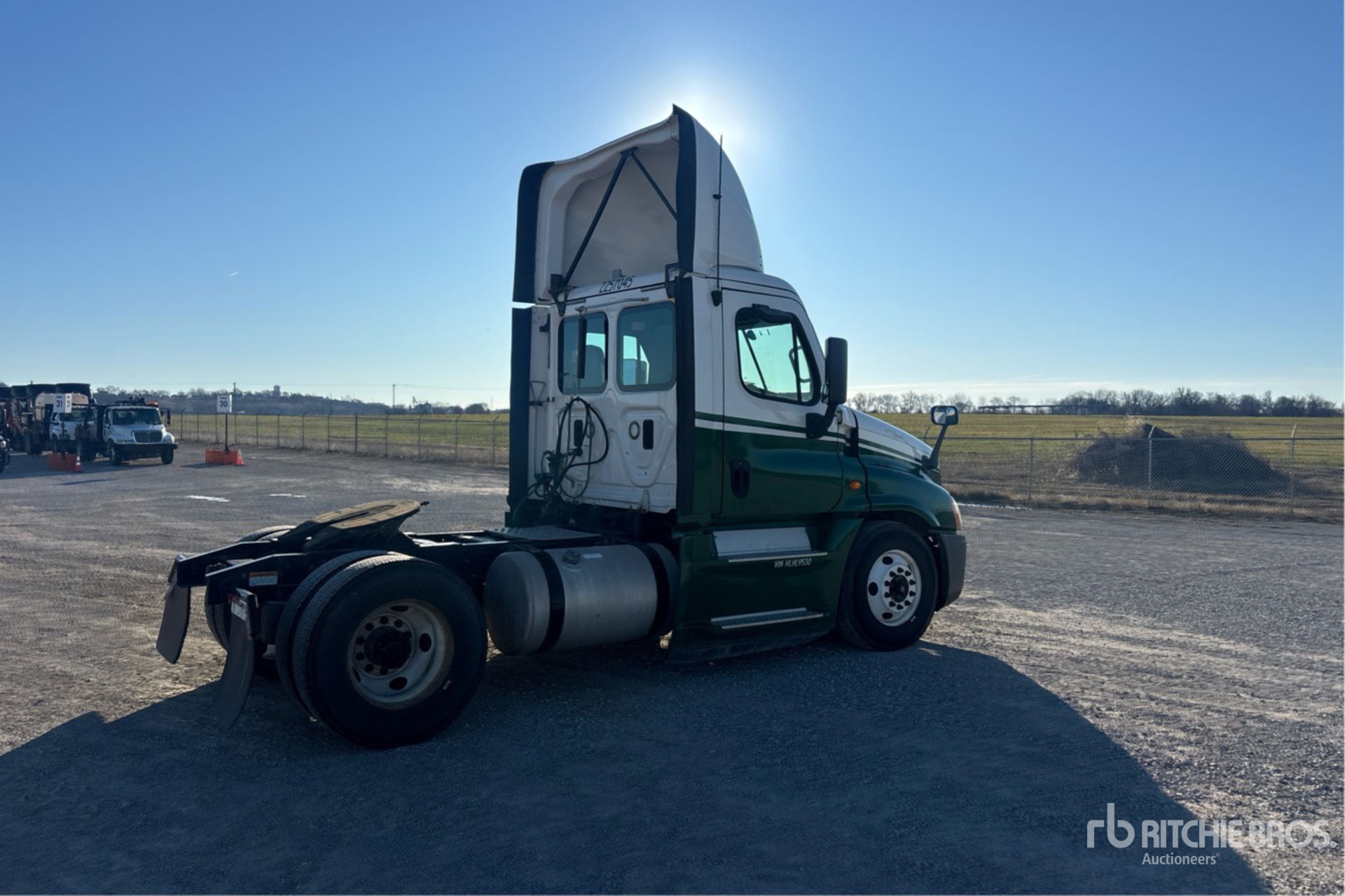 Moteur Detroit DD15 de 455 ch, homologué EPA 2016, 17 312 heures de fonctionnement, transmission manuelle Eaton Fuller FRO-15210C à 10 vitesses, essieu avant de 5 443 kg, essieu arrière de 9 525 kg, PTAC de 14 997 kg, empattement de 4 011 mm, suspension pneumatique, pneus 11R22.5, réservoir de carburant double