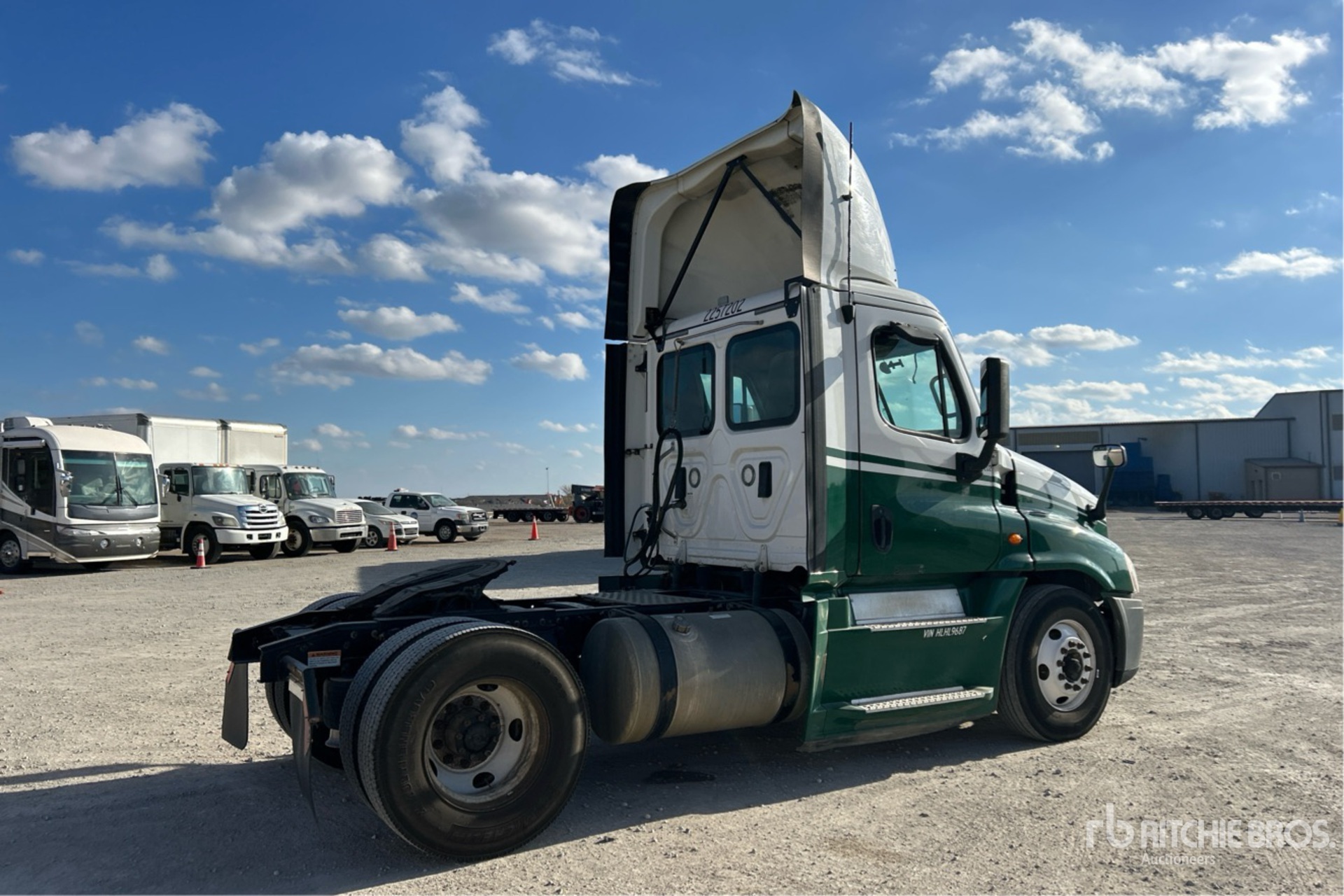 Moteur Detroit DD15 de 455 ch, homologué EPA 2016, 20 566 heures de fonctionnement, boîte de vitesses manuelle Eaton Fuller FRO-15210C à 10 rapports, essieu avant de 5 443 kg, essieu arrière de 9 525 kg, PTAC de 14 997 kg, frein moteur, empattement de 4 011 mm, suspension pneumatique, pneus 11R22.5, réservoir double de carburant