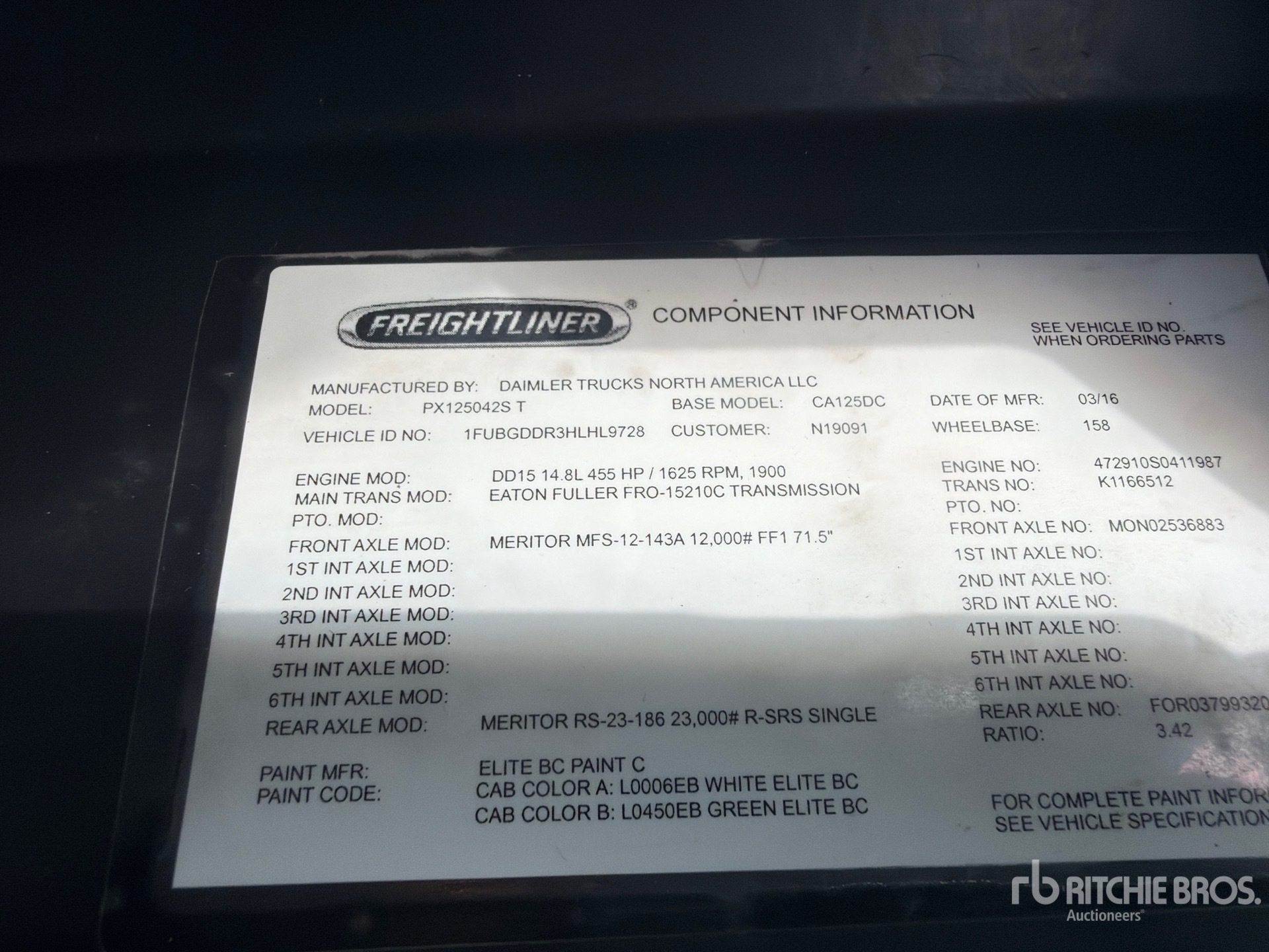 Situé sur la voie 32, emplacement 6, moteur Detroit DD15 505 kW, étiquette EPA américaine 2016, frein moteur, empattement de 158 pouces, suspension pneumatique, 11R22.5, double réservoir de carburant