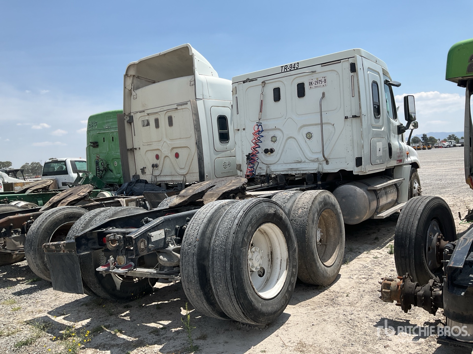 Moteur Detroit, Eaton Fuller RTLO-18918B, transmission manuelle 18 vitesses, essieu avant 13 200 lb, rapport de pont 4,56: 1, arrière 46 000 lb, frein moteur, cabine couchette à toit plat de 48 po, empattement de 204 po, suspension pneumatique, roues avant en aluminium, 11R24.5, réservoirs de carburant doubles, / Moteur Detroit, Horas de Motor, Éje Frontal 13 200 lb, Traseros 46 000 lb, Freno de Motor, Dormitorio Techo Plano 48 in, Distancia entre Ejes 205 po, Suspension de Aire, Rines Frontales de Aluminio, Llantas 11R24.5, Tanques Duales de Combustible