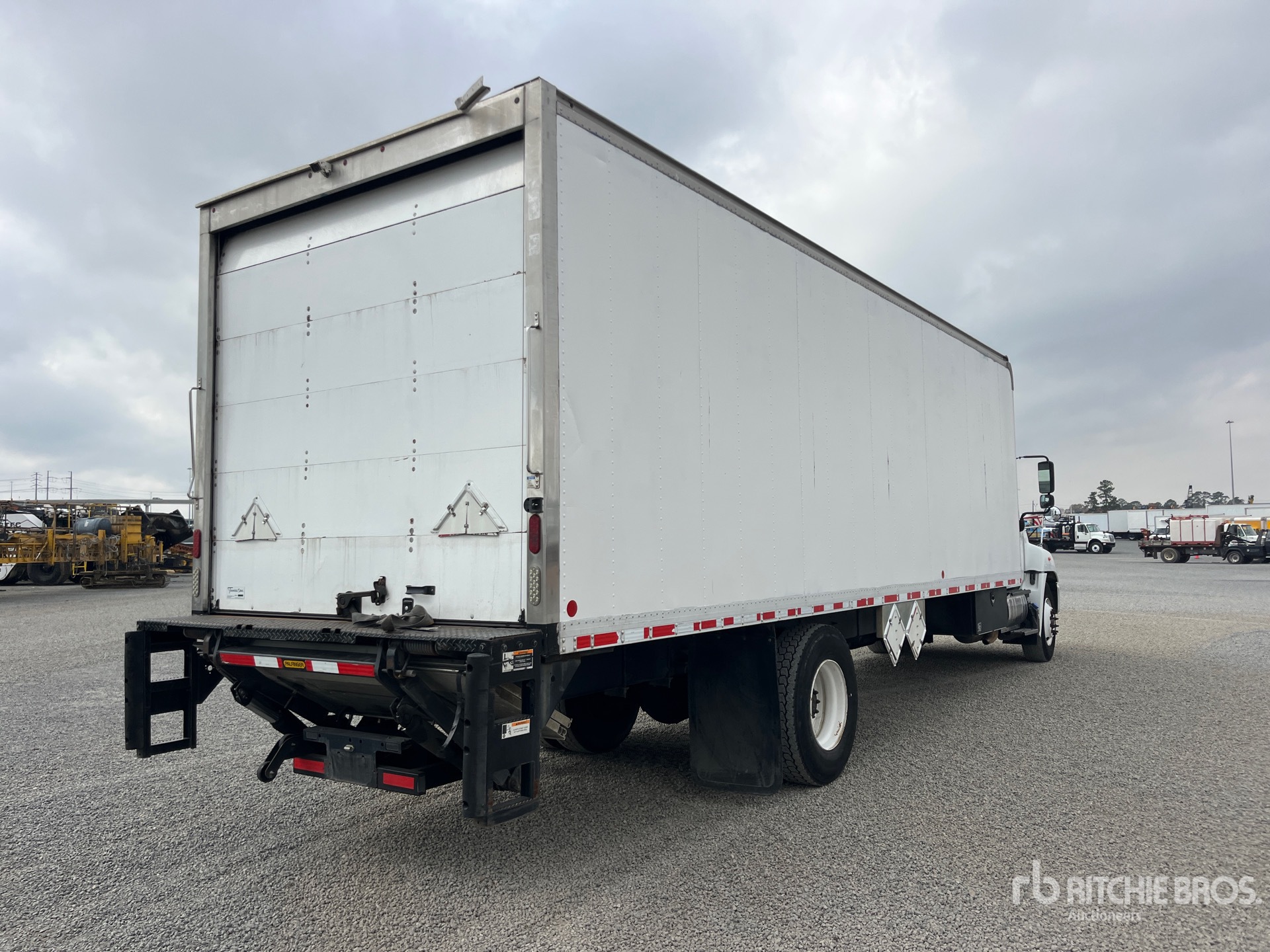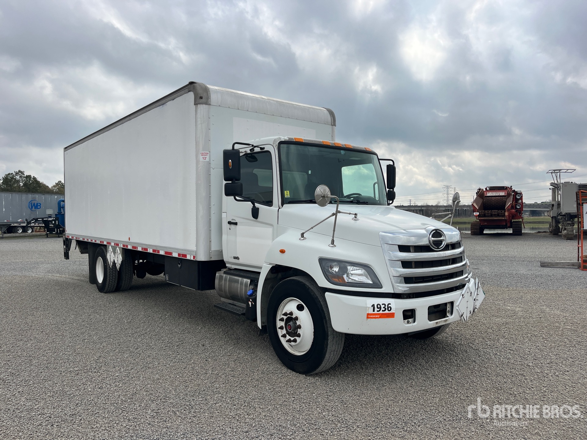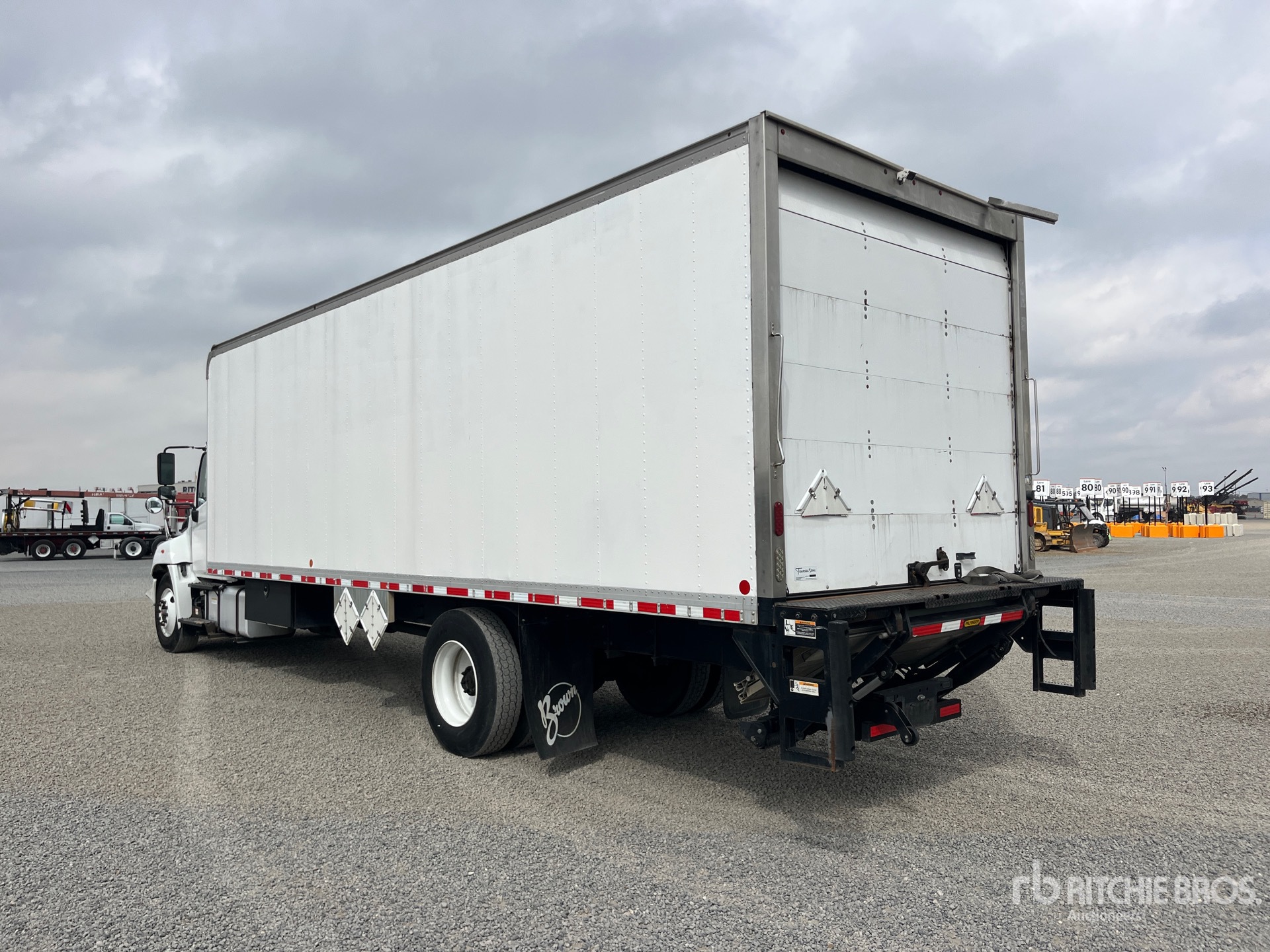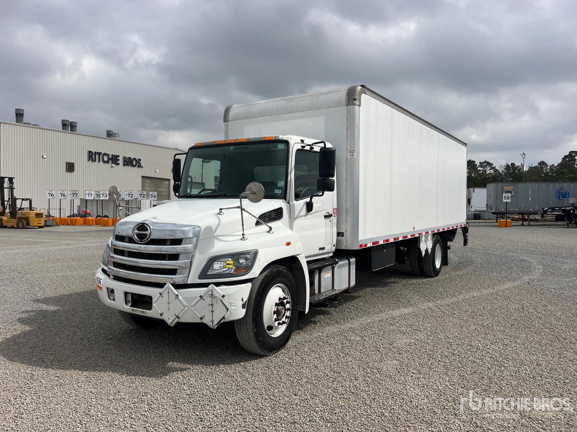 Situé sur la voie 34, emplacement 30, moteur diesel Hino, transmission automatique, essieu avant de 5443 kg, essieux arrière de 9525 kg, PTAC de 1499 kg, pneus 11R22.5, suspension à ressorts, empattement de 5715 mm, carrosserie brune de 5,18 m x 2,59 m x 1,65 m de haut