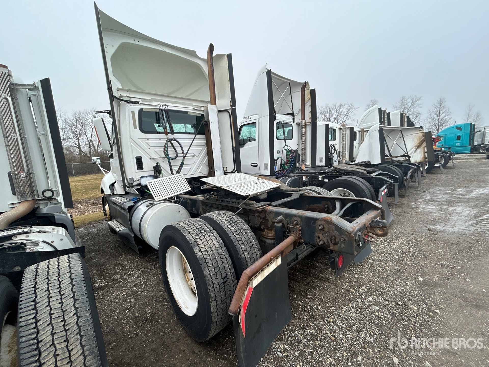 Moteur Cummins ISX15 de 400 ch, homologué EPA 2016, 15 971 heures de fonctionnement, transmission automatisée Eaton Fuller, essieu avant de 5 600 kg, essieu arrière de 10 300 kg, PTAC de 15 900 kg, frein moteur, blocage de différentiel, empattement de 4 064 mm, suspension pneumatique, pneus avant 275/80R22.5, pneus arrière 295/75R22.5, sellette d'attelage coulissante pneumatique, double réservoir de carburant.