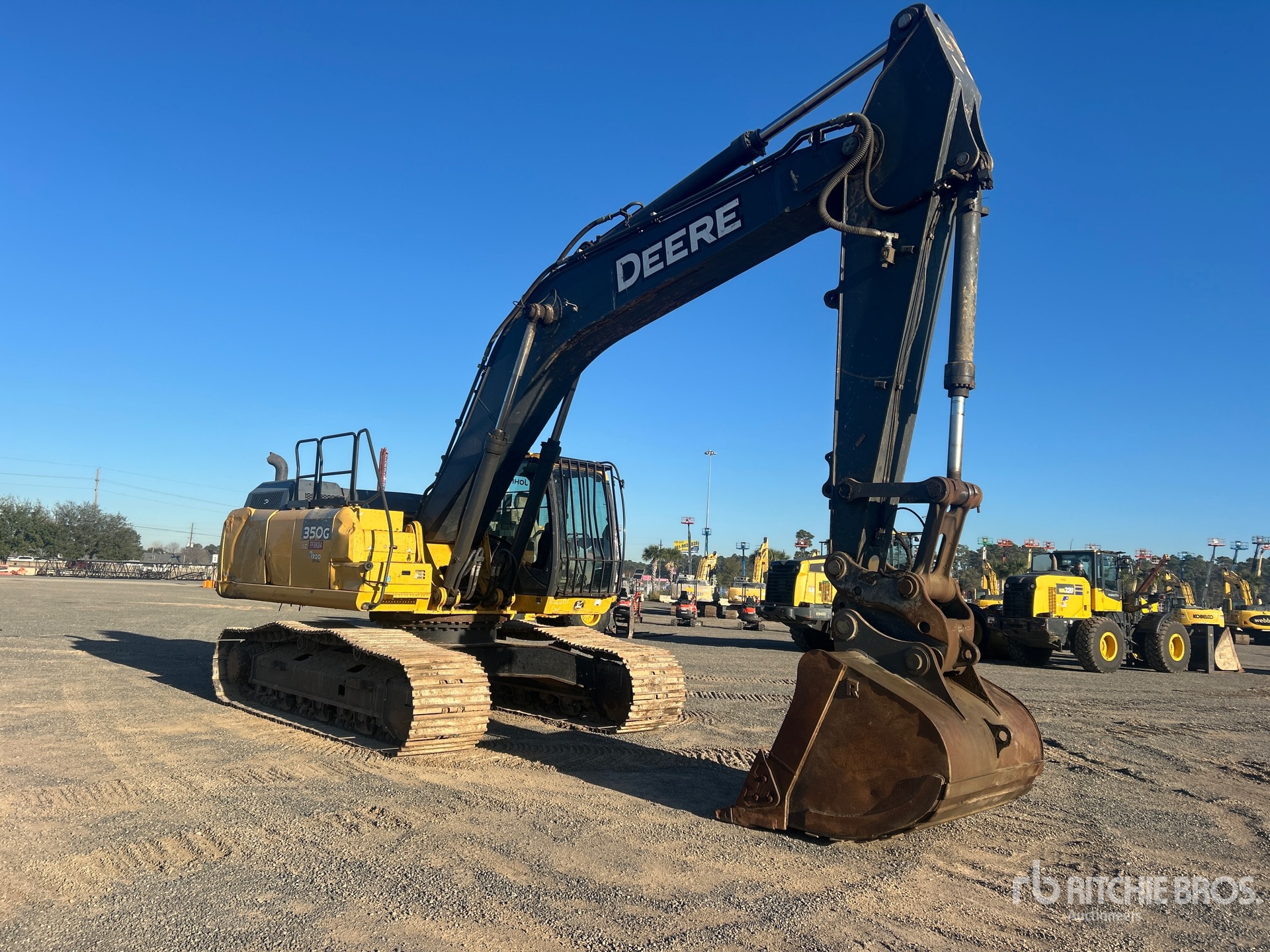 Climatisation, sélecteur de mode de commande, écrans de cabine, caméra de recul, bras de 3 m, circuit hydraulique auxiliaire, chenilles à triple crampon de 81 cm, attache rapide hydraulique, godet de terrassement de 152 cm