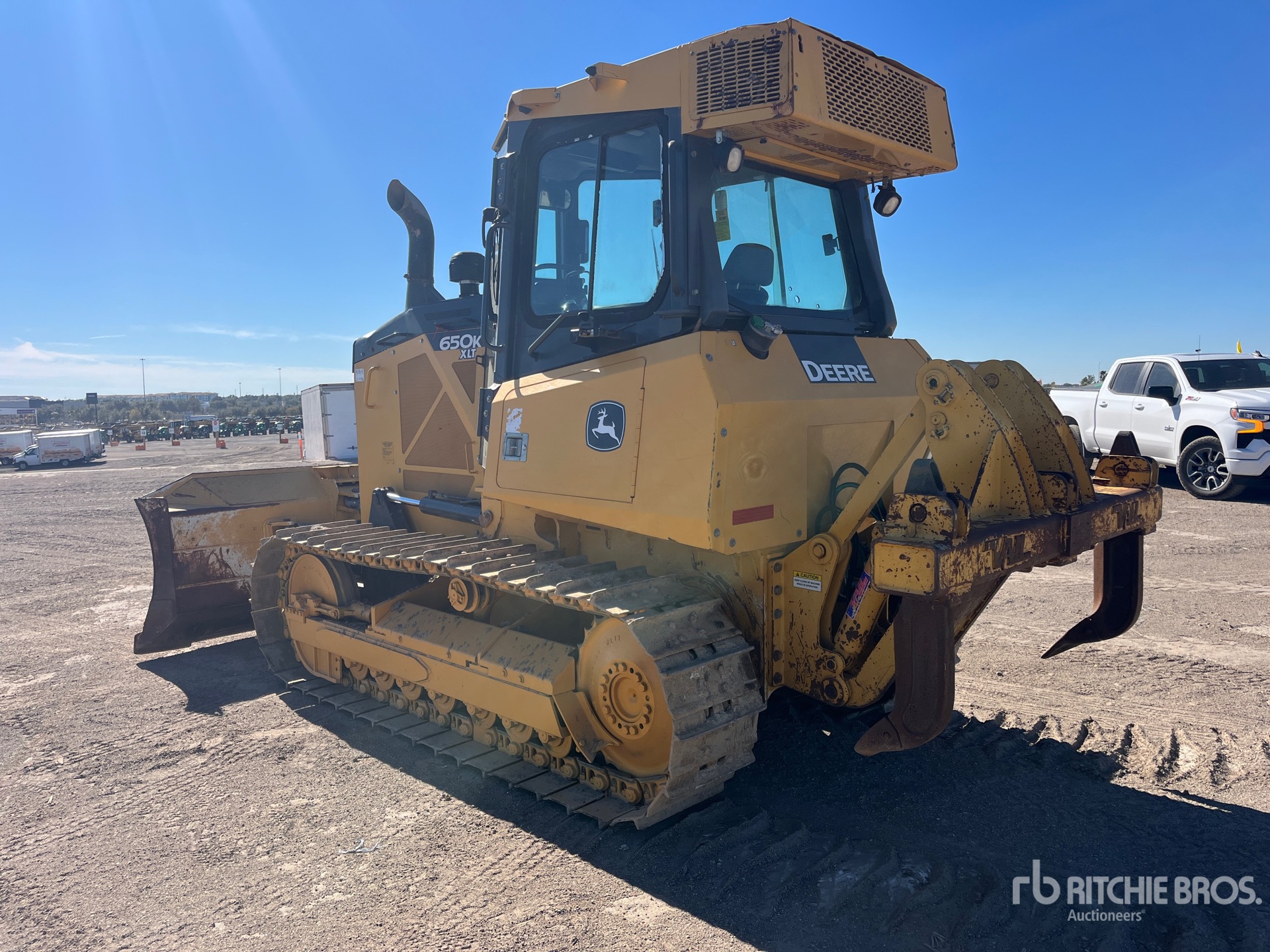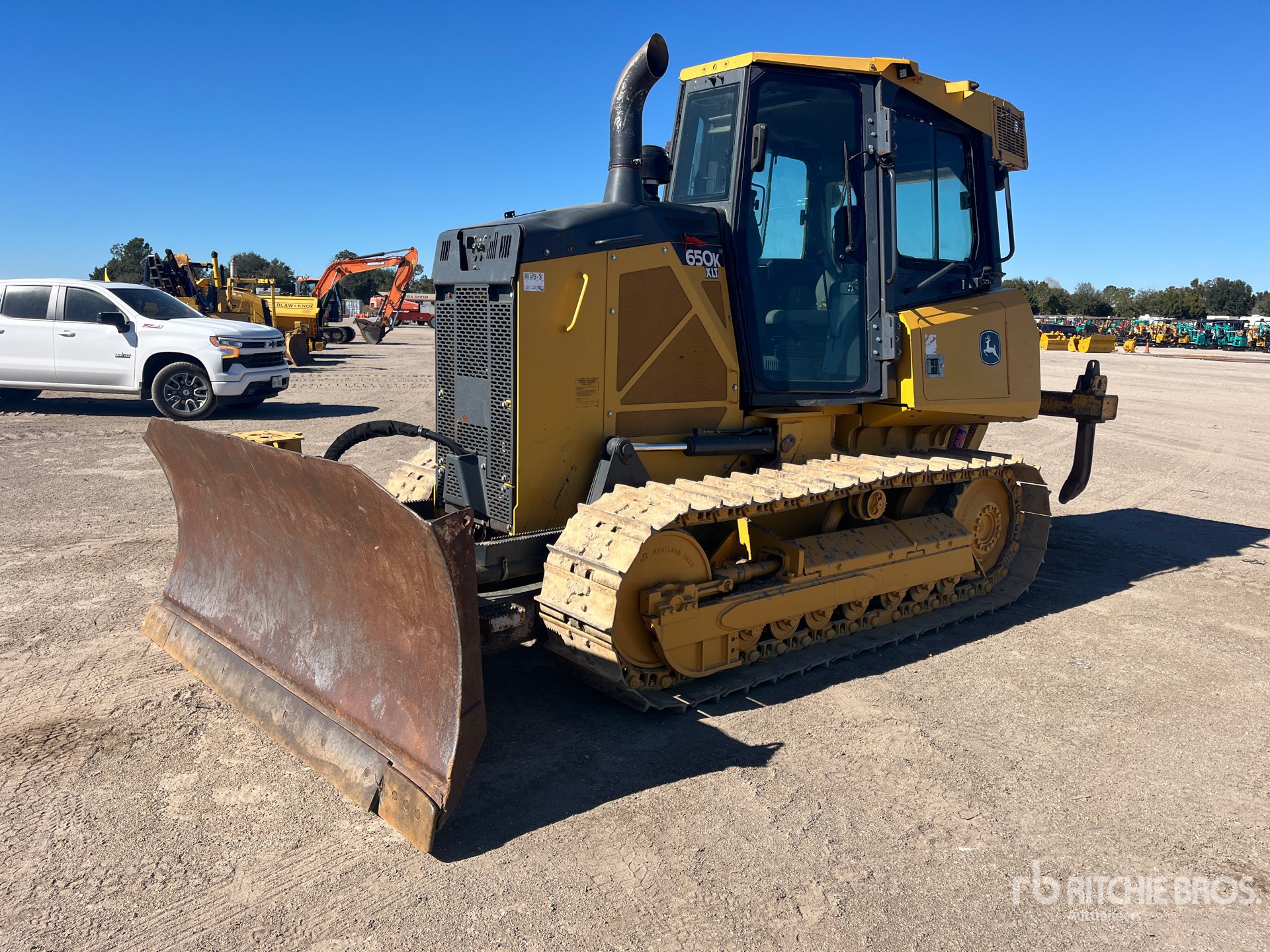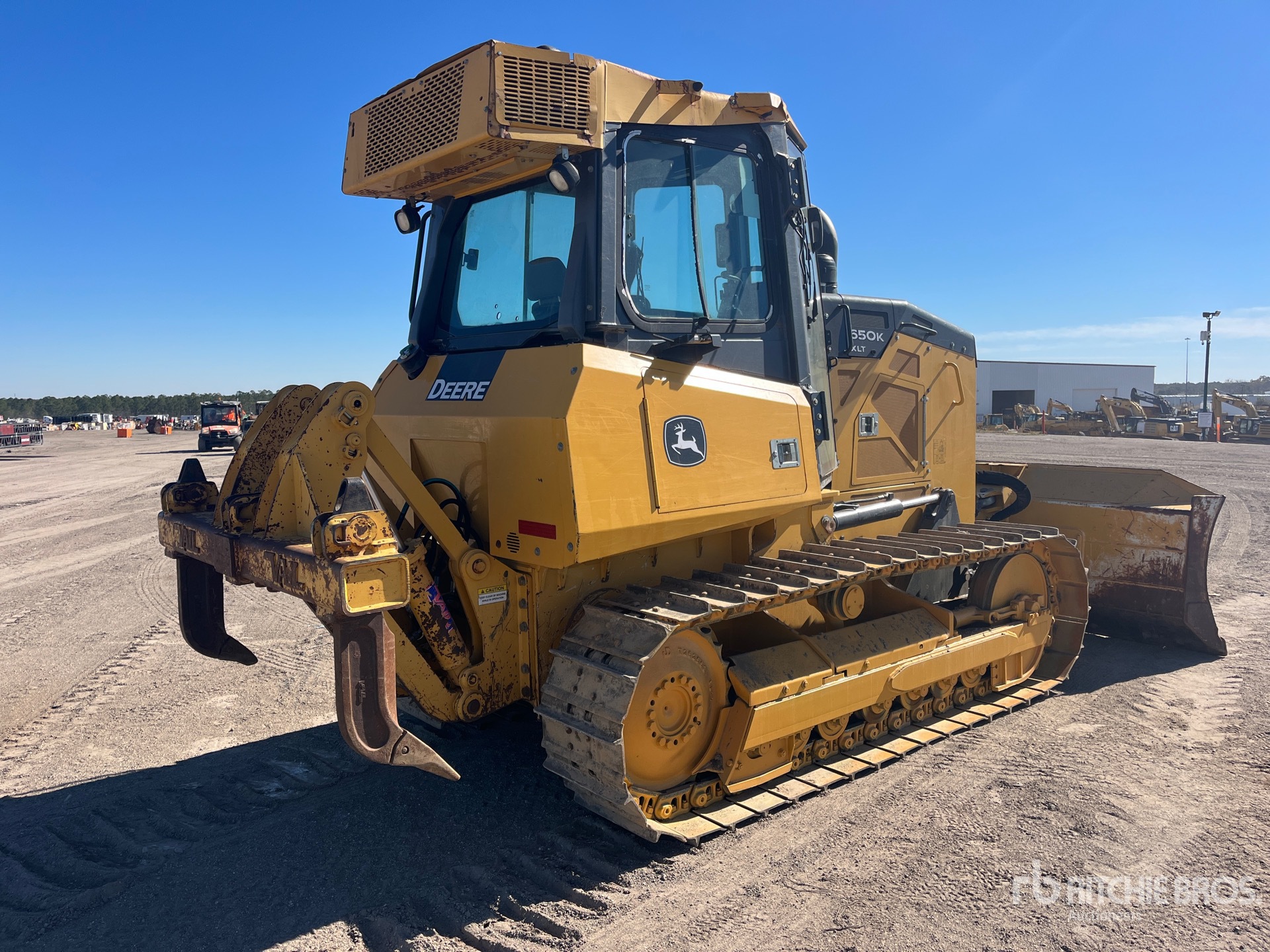 Cabine fermée, climatisation, précâblée pour le contrôle de nivellement, homologué EPA 2017, nécessite un fluide d'échappement diesel, lame PAT de 2,69 m de large, chenilles à crampons simples de 45,7 cm, ripper à dents multiples à 2 cylindres