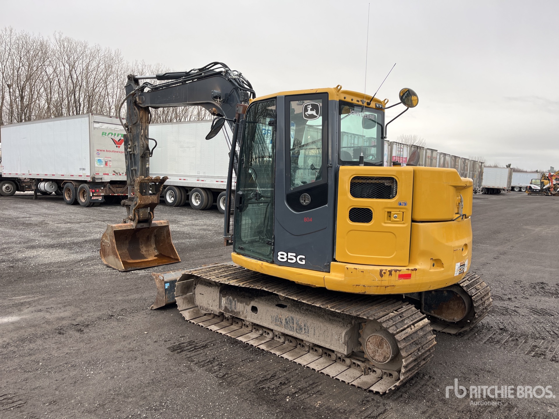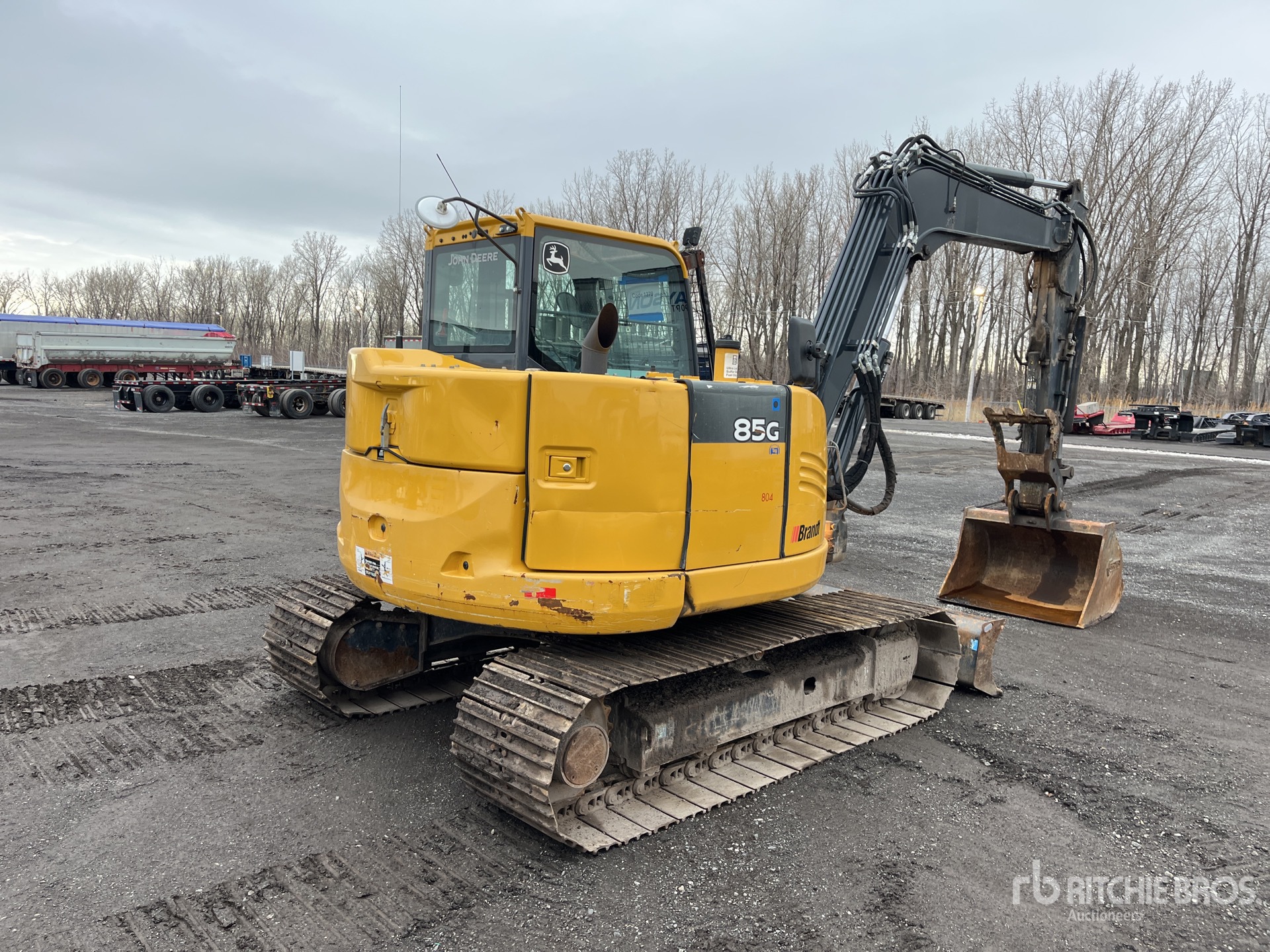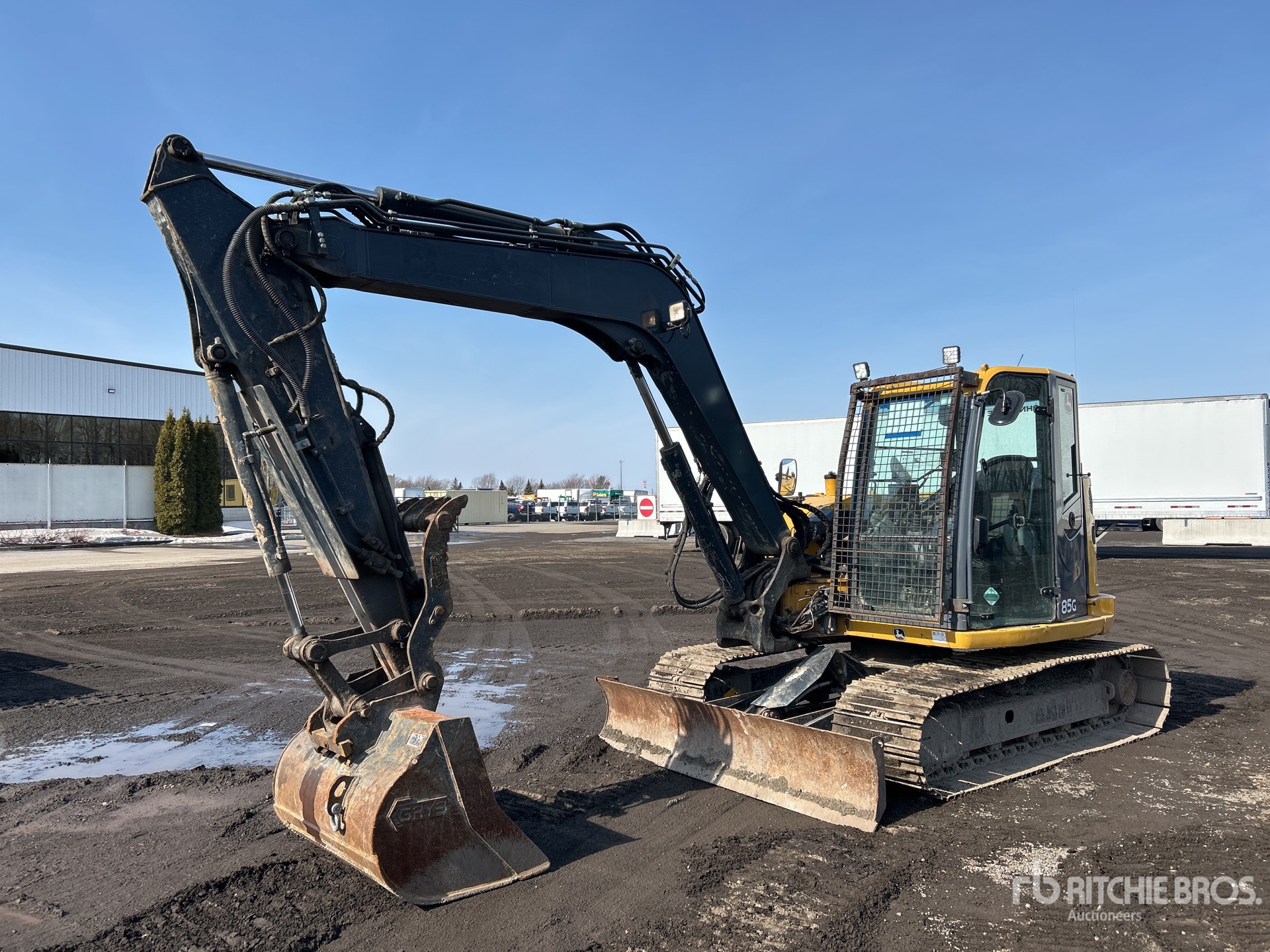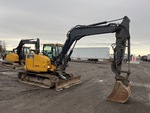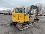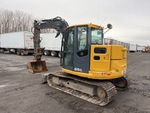 Climatiseur, sélecteur de configuration de commande, écrans de cabine, homologation EPA américaine 2017, flèche pivotante, bras de 7 pi, tuyauterie hydraulique auxiliaire, lame de remblayage, patins à triple crampon de 23,5 po, attache rapide manuelle, godet de nettoyage de 48 po, pouce hydraulique